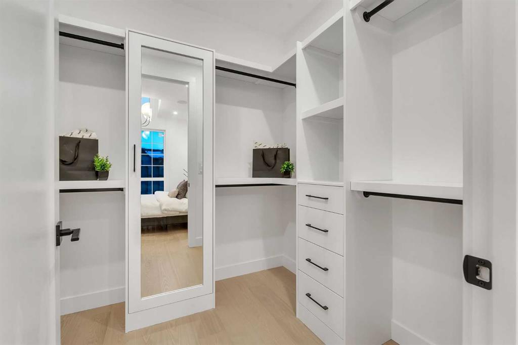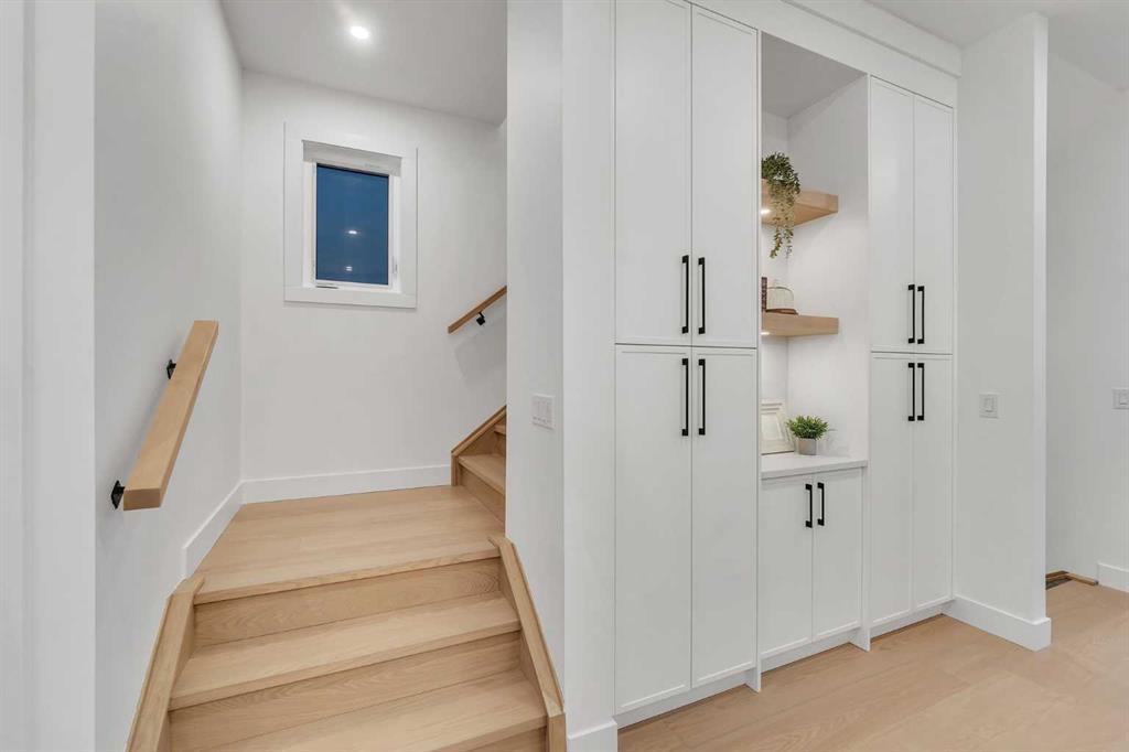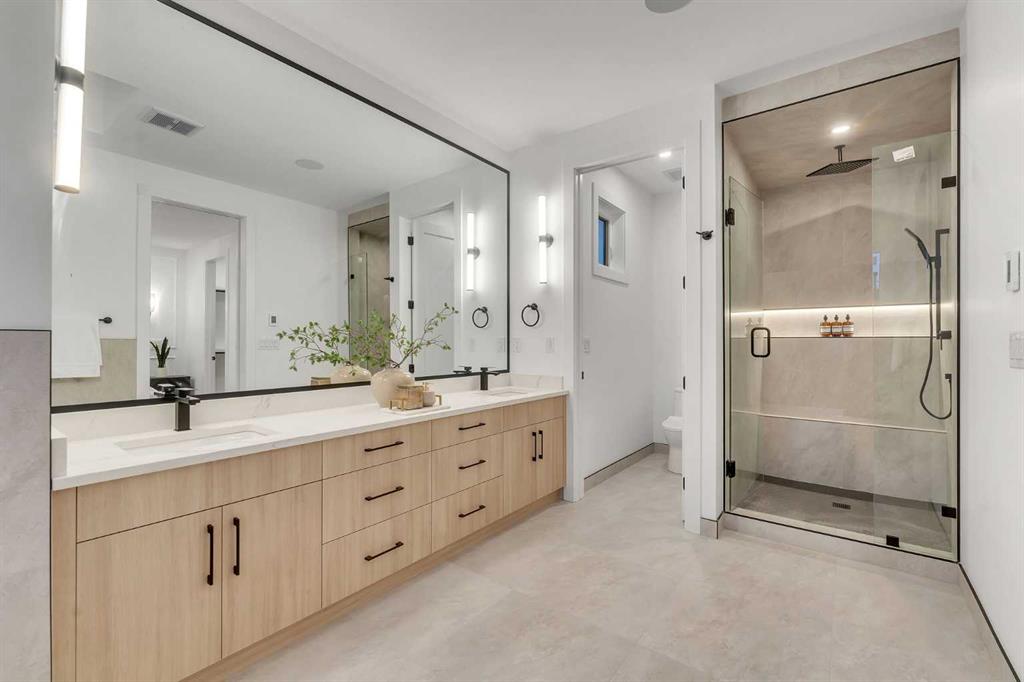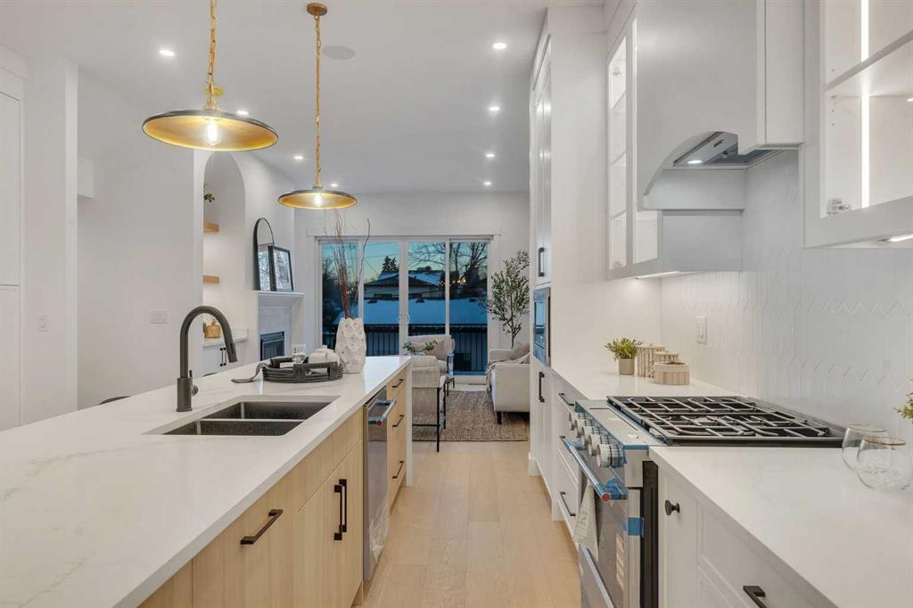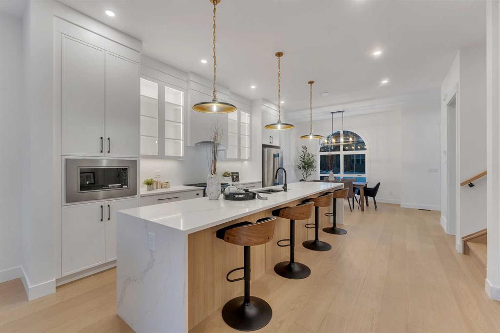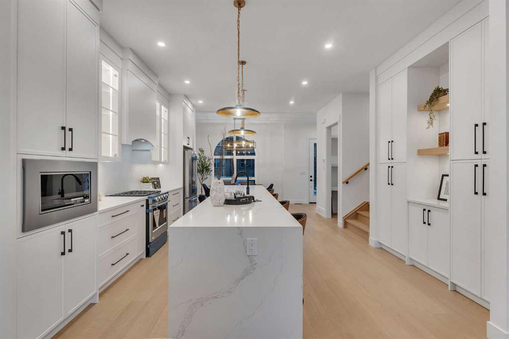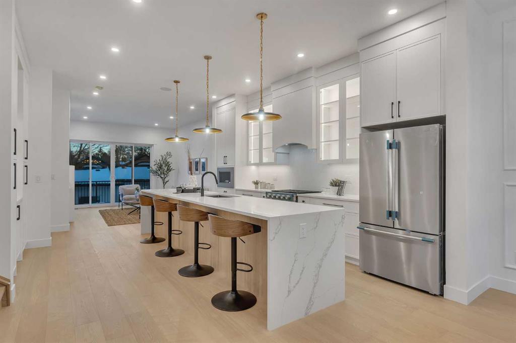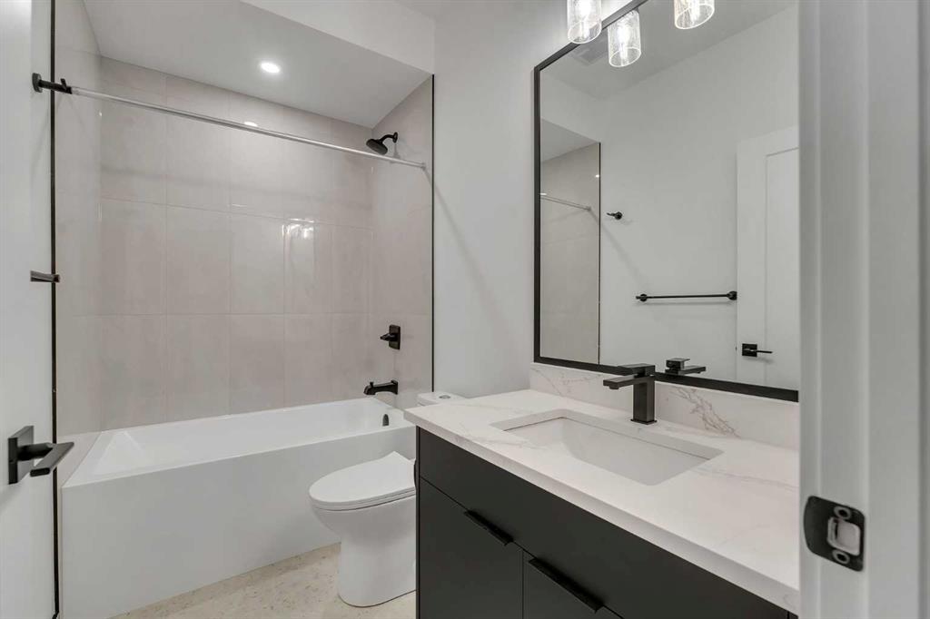 OPEN HOUSE FEB 28 & MAR 1ST 1:30-4PM **FREE A/C INSTALLED IF THE SALE IS FIRM BEFORE MARCH 16TH** IMMEDIATE POSSESSION AVAILABLE | 4 BEDROOMS | 3.5 BATHROOMS | WALK-OUT BASEMENT WITH GYM, REC ROOM & WET BAR | SUNNY SOUTH FACING BACKYARD WITH DOWNTOWN VIEWS | Welcome to this brand-new, move-in ready infill that perfectly blends modern sophistication with smart, functional design and an open concept layout. This home has been thoughtfully curated with high-end finishes, tons of natural light, and a layout that combines luxury with practicality. Stepping inside, you're greeted with soaring 10-foot ceilings and expansive windows bringing in an array of natural light. The open-concept main floor flows seamlessly, starting with a welcoming foyer featuring custom built-in cabinetry and a bench - offering convenience, storage, and a stylish first impression. The dining area, bathed in sunlight, sets the tone for everything from casual family dinners to elegant hosting. Just steps away from the dining area - the gourmet kitchen is a true centrepiece and a chef's dream. The kitchen boasts floor-to-ceiling custom cabinetry, quartz countertops, LED under-cabinet and built-in lighting, and top-tier KitchenAid stainless steel appliances. A striking and expansive waterfall island anchors the space - perfect for prepping meals, morning coffees, evening cocktails, or just to get some work done. Extras like a built-in pantry with custom cabinetry, tiled coffee station, and floating shelves with integrated lighting elevate both form and function. Just off the kitchen, you have your own private home office offering a custom glass door and providing a quiet retreat for remote work or study. The spacious living room features a stunning tiled fireplace and oversized double sliding glass patio doors that extend your living space outdoors to the backyard patio offering downtown views - ideal for summer entertaining, morning coffees, or quiet evenings. A well-designed mudroom with built-in cabinets provides additional storage space and helps keep daily essentials organized. A chic powder room with a quartz vanity, designer fixtures, LED under lighting, and stunning wallpaper adds a refined touch to the main floor. Upstairs, the primary suite is a showstopper. Custom detailing, an expansive walk-in closet, and a spa-inspired ensuite with IN-FLOOR HEATING, a quartz double vanity, LED accent lighting, backlit mirror, free-standing tub, and oversized glass shower make this a true retreat. Two additional bedrooms, each with their own spacious walk-in closets, provide cozy, private spaces and share a beautifully appointed four-piece bathroom. A dedicated laundry room with custom cabinetry, quartz countertops, and a sink finish off this masterful upper level. The fully finished WALK-OUT basement is thoughtfully designed and features an additional bedroom, four-piece bathroom, gym/exercise area, a wet bar, and recreation area perfect for additional living space.