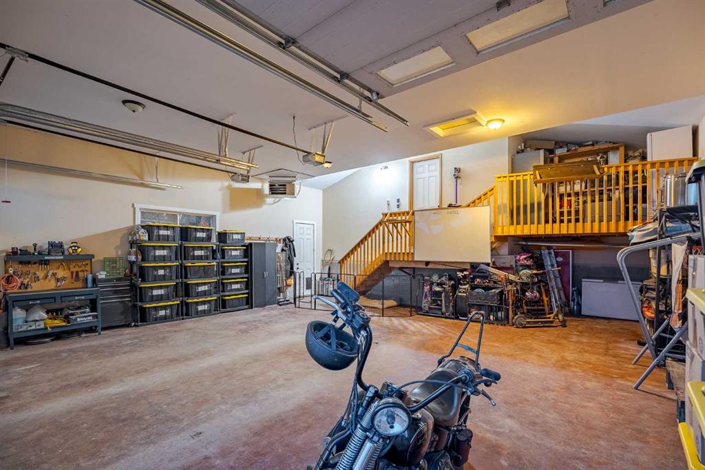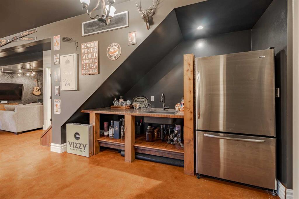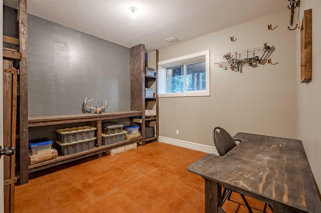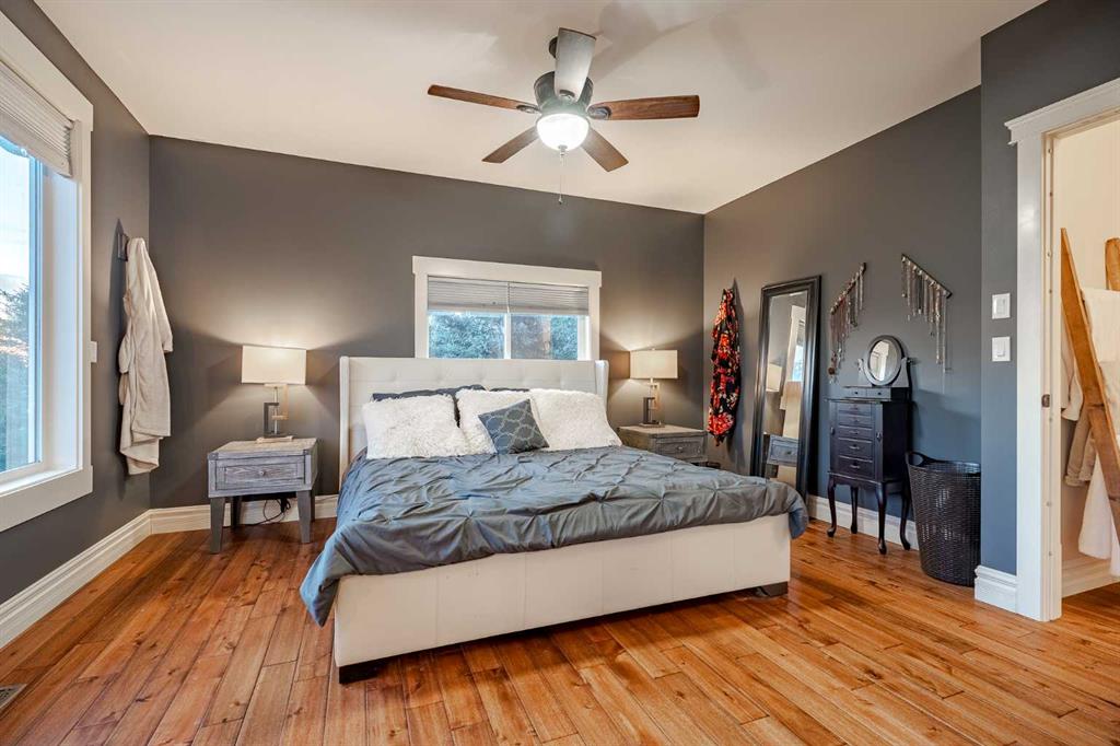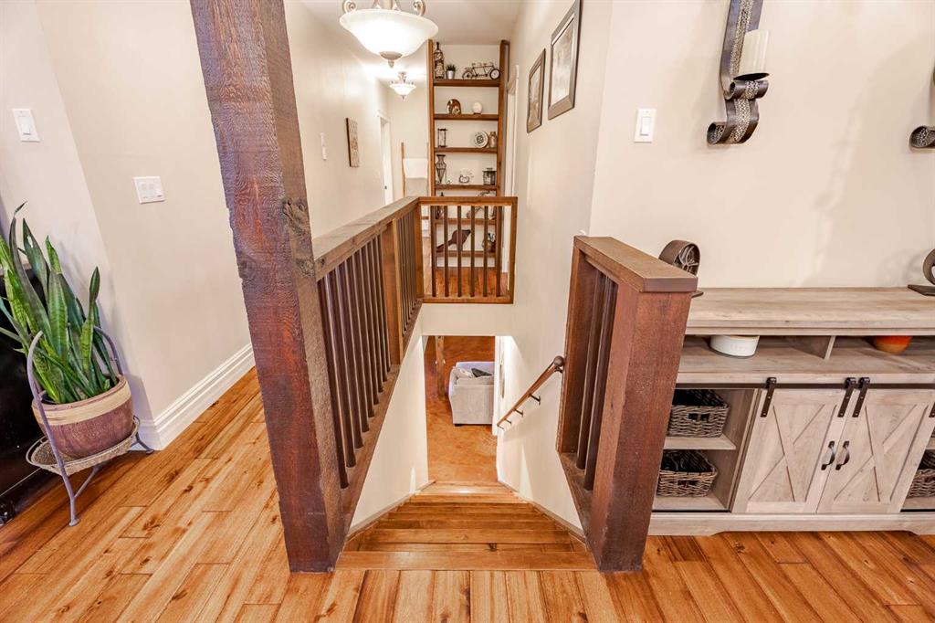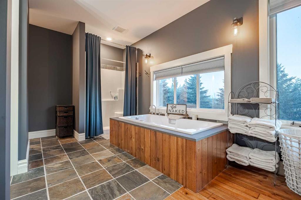 Welcome to this extraordinary walkout bungalow offering over 4,000 sq ft of thoughtfully designed living space with 6 bedrooms, 5 bathrooms, a heated oversized quad garage, a massive 40’ x 60’ insulated shop, and nearly 20 acres of endless possibility just minutes from Calgary. From the moment you arrive, the striking A-frame architecture stretches from the front elevation all the way to the covered back porch, perfectly framing panoramic mountain views. Step into the grand main level, where soaring vaulted ceilings with exposed beams and expansive west-facing windows fill the space with natural light and unforgettable views. The gourmet kitchen features upgraded cabinetry, a large center island, granite countertops, and premium stainless appliances designed for effortless entertaining. The spacious dining area easily accommodates large gatherings, while the open-concept living room is anchored by a cozy gas fireplace.