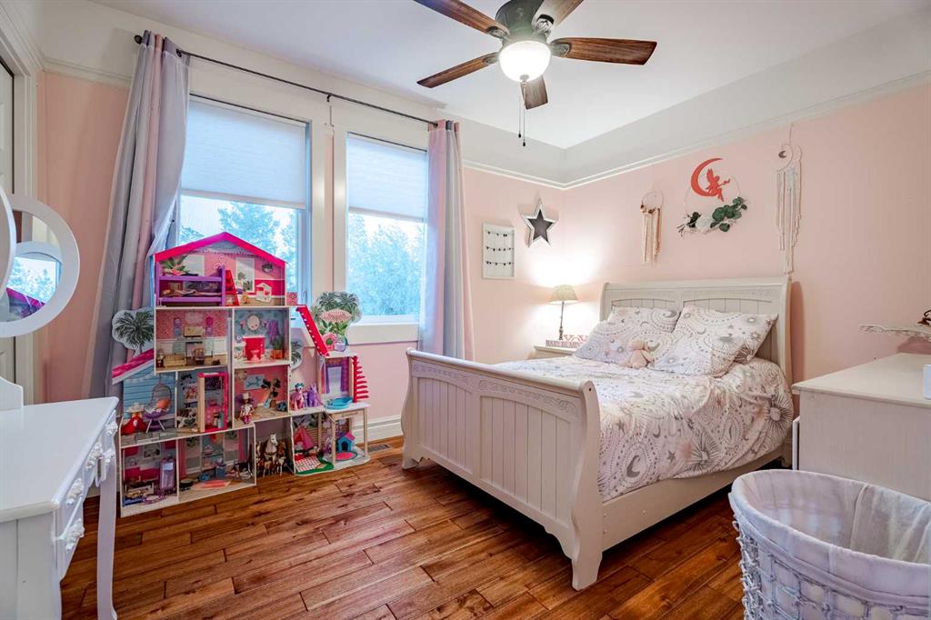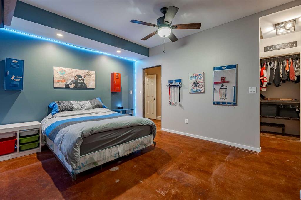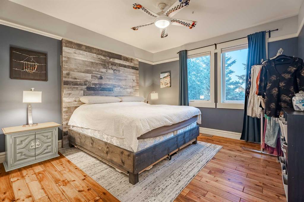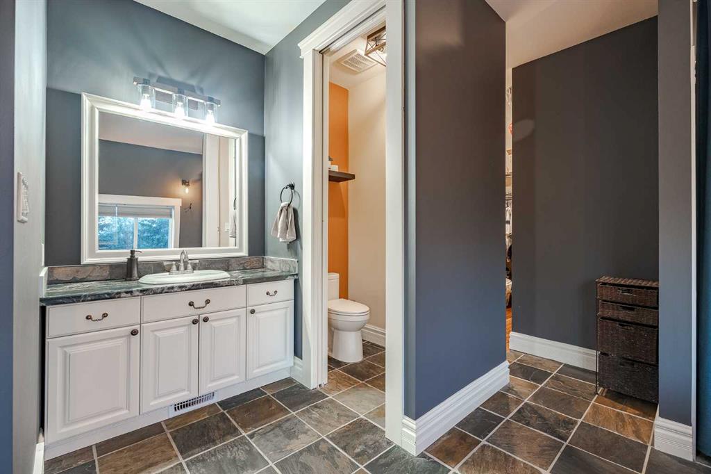 Just down the hall, the generous primary retreat offers an open 4-piece ensuite and a spacious walk-in closet. Two additional bedrooms provide comfortable spaces for family or guests and share access to a well-appointed main bathroom. A versatile office or den is tucked away near the front entry. Downstairs, the walkout basement extends the living space with a massive recreation room, wet bar, three additional bedrooms, and two full bathrooms, including one ensuite – perfect for multi-generational living or hosting guests.