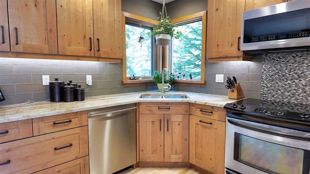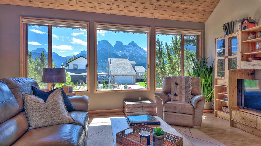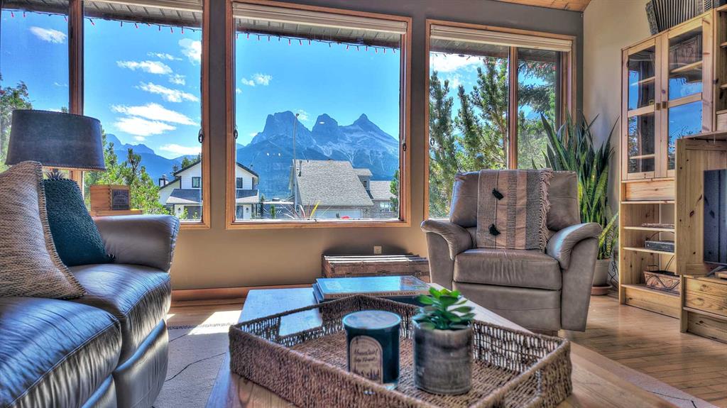 Experience the best of Canmore living in this beautifully maintained 5-bedroom + den home, perfectly positioned for unobstructed views of the iconic Three Sisters peaks. Featuring hardwood floors throughout the main and upper levels, heated bathroom floors, a landscaped backyard includes a movable green house with pond and outdoor firepit, plus a legal 1-bedroom basement suite with large storage room, this property offers comfort, style, and versatility.