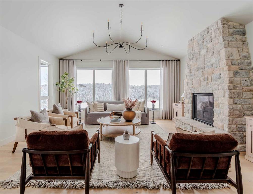 Welcome to 229 Rowmont Drive NW. This Baywest Showhome is now available for possession in time for Christmas, however customers can also build similar custom homes on available view lots. Set on a rare lot backing onto protected greenspace, this brand-new luxury estate by Baywest Homes captures sweeping views of the Bow River Valley and Bearspaw Reservoir. With a premium south-exposed design, this home offers over 4,800 sq. ft. of exquisitely finished living space and sides directly onto Rockland Park’s Osprey playground. Step into a grand foyer with soaring ceilings open to above, setting the tone for the home’s thoughtful design and refined style. The chef-inspired kitchen showcases striking two-tone cabinetry, a premium appliance package, and a walk-through mudroom with access to both a full storage pantry and a dedicated butler’s pantry. A front-facing main-floor office provides the perfect work-from-home retreat, while the bright open-concept great room captures endless valley views. The spacious dining area flows seamlessly to a large, covered deck, designed for year-round entertaining. Upstairs, the south-facing primary suite is a true sanctuary with a spa-like ensuite featuring a freestanding soaker tub and oversized tiled shower, and an expansive walk-in closet. Three additional bedrooms, plus a flexible loft and laundry room complete the upper level. The fully developed basement level offers exceptional versatility, featuring a sunlit recreation area, games room, bathroom, and a fifth bedroom. Wide-plank hardwood, curated tile selections, and warm neutral tones create an atmosphere of relaxed sophistication throughout. The oversized side-drive triple garage provides ample room for vehicles, storage, or a workshop space. Additional highlights include full landscaping, air conditioning, and custom window coverings—all included in the price. Furnishings may also be negotiable. Nestled in Rockland Park, one of northwest Calgary’s most coveted new communities, residents will enjoy future schools, scenic pathways, and exclusive access to a private clubhouse with pool. With unmatched views and meticulous craftsmanship, this home defines estate living on the Bow.