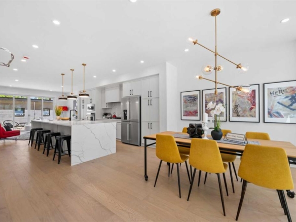 Welcome to 231 Creekview Gardens SW. Camellia by Award-Winning, Baywest Homes. Discover the perfect blend of style, comfort, and functionality in this stunning family home, ideally situated in the vibrant new community of Creekview overlooking Sirocco Golf Course. Thoughtfully designed with open concept living in mind, this home offers ample space for both everyday living and entertaining. Step inside to find a spacious mudroom that seamlessly connects to the walk-through pantry and into a beautifully appointed kitchen. Kitchen upgrades include enhanced 3 cm quartz counters, soft close hinges, gas stove, built-in microwave, 42" upper cabinets, undercabinet lighting, 4 bin waste and recycling bins, tile to ceiling surround for hoodfan, and more. The main floor features a light-filled layout, combining the kitchen, dining area, and living room—complete with a cozy gas fireplace—into one inviting space. A private home office is tucked away for added convenience and quiet. Upstairs, you'll find four generously sized bedrooms and a versatile bonus room, ideal for family movie nights or a kids’ play area. The luxurious primary suite boasts a spa-inspired 5-piece ensuite with a free-standing tub, tiled walk-in shower with curbless base, elongated toilet and direct access to a large walk-in closet that connects to the upper-level laundry room for ultimate ease. Enjoy breathtaking west-facing views from the primary bedroom, living room, and dining room—overlooking the scenic Sirocco Golf Course with a stunning backdrop of the Rocky Mountains. Additional features include an attached triple-car garage with wood tone garage door and aggregate driveway. ** Looking for more space? Ask at the showhome about options for a legal suite or basement development to customize the home to your unique needs. Creekview offers a perfect balance of nature and convenience for those who love life on the greens. For all your shopping needs Township Shopping Centre in nearby Legacy boasts over 50 retailers and services, including popular destinations like Sobeys, Starbucks, Cobs Bread, The Canadian Brewhouse, Winners, and more. Families will appreciate the planned future school site, conveniently located near the community entrance, ensuring a short and safe walk or bike ride for students. Creekview also features numerous parks, playgrounds, and sports fields, offering ample outdoor recreation opportunities for residents of all ages.