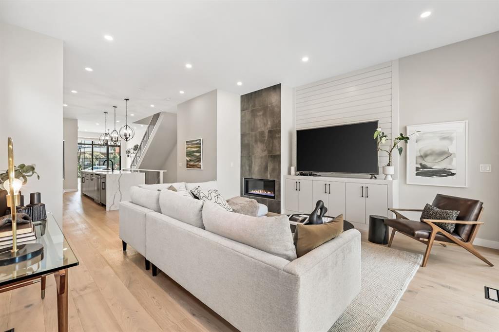 Located in the desirable community of Inglewood, this modern home sits on a quiet extra-wide street with a sunny west-facing backyard and an oversized lot. The main floor features a beautiful open-concept layout with a large kitchen, professional-grade stainless steel appliances, and hard surface counters. Hardwood flooring flows through the main and upper levels, complemented by a spacious family room with soaring 10-foot ceilings.