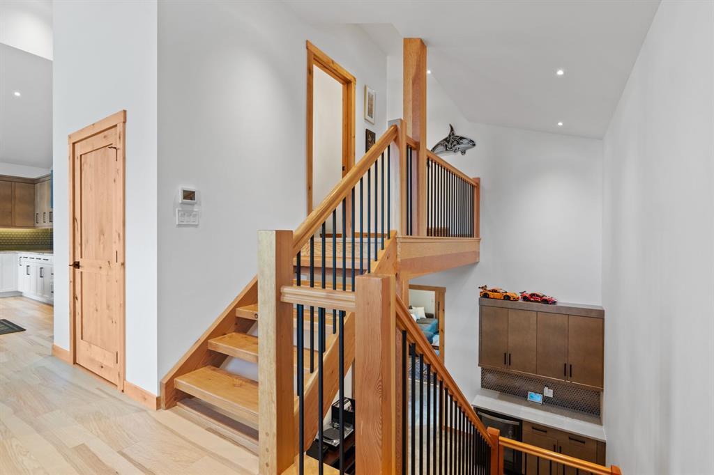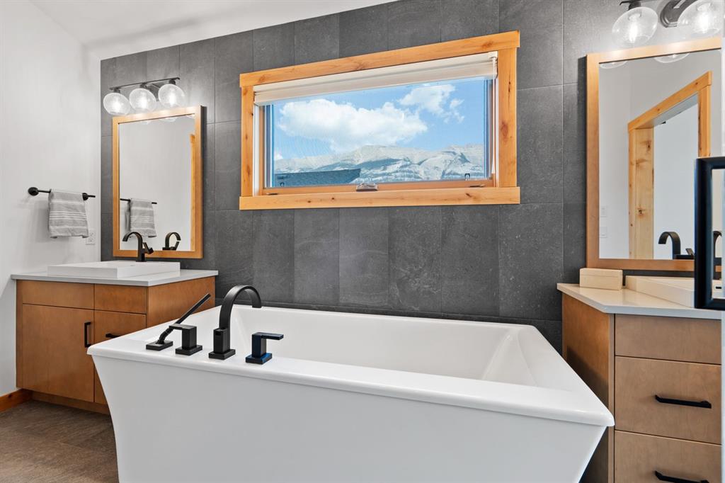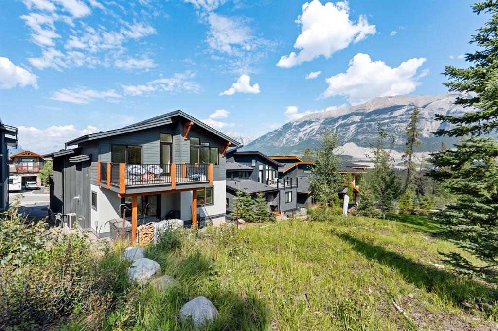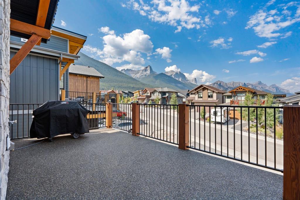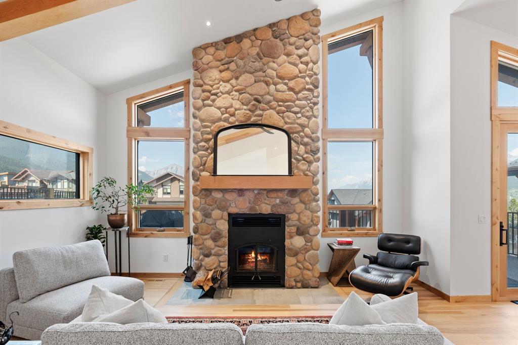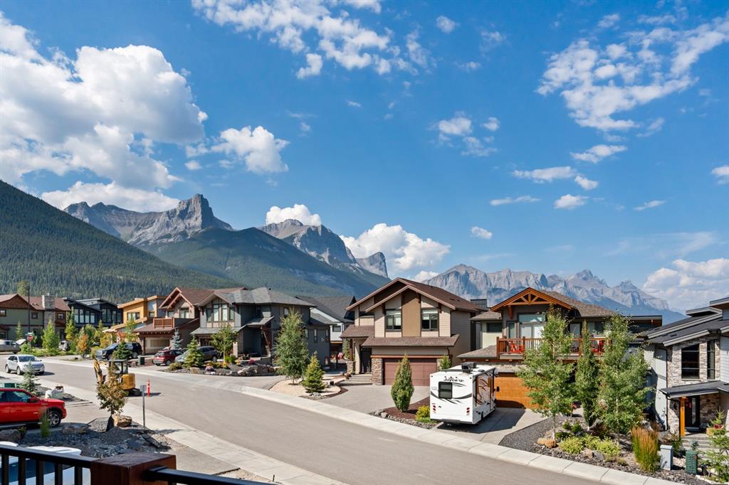 Nestled on a quiet street in Canmore's sought-after Three Sisters community, this stunning single-family residence perfectly captures the essence of mountain living. From the moment you step through the grand entrance, you're welcomed by soaring vaulted ceilings and the elegant open riser staircase that sets the tone for the sophisticated yet rustic design throughout. The heart of the home flows seamlessly with an open concept kitchen, dining, and living space anchored by beautiful engineered hardwood floors. A cozy wood burning fireplace creates an inviting atmosphere while the floor-to-ceiling windows frame the spectacular west-facing views of Cascade Mountain and the Rundle and Fairholme ranges. The gourmet kitchen is a chef's dream featuring granite countertops, a stunning waterfall island with eating bar, water filtration system and premium Miele stainless steel appliances that blend functionality with refined style. Upstairs the primary suite is a true sanctuary flooded with natural light. The spa-like ensuite featuring heated floors indulges with a luxurious soaker tub, dual vanities, and oversized tile work that reflects quality craftsmanship. Step out from the primary onto your own private sun deck and enjoy your morning coffee against the backdrop of east-facing mountain and forest vistas. The second upper level bedroom continues the theme of comfort and connection to nature, boasting its own ensuite, expansive windows and more incredible views. The upper-level laundry room adds convenience to everyday living. The lower walkout level equipped with heated floors expands your living possibilities with two additional spacious bedrooms and a full bathroom, perfect for family or guests. This level opens to its own patio with hot tub and yard area, creating wonderful indoor-outdoor flow. Whether you're entertaining at the wine bar or working from the office/flex space, this level adapts to your lifestyle needs. Practical luxury defines the finishing touches from the spacious mudroom, ample storage throughout, and clean air filtration system, to the heated triple attached garage for all of your mountain toys. Fresh, low-maintenance landscaping out front welcomes you home each day. This quintessential mountain home strikes the perfect balance between modern convenience and rustic mountain charm. Located in the rapidly growing Three Sisters community with exciting amenities planned to serve all your daily needs, 232 Stewart Creek Rise offers not just a home, but a gateway to the mountain lifestyle you've been dreaming of.