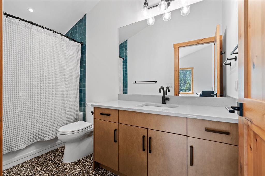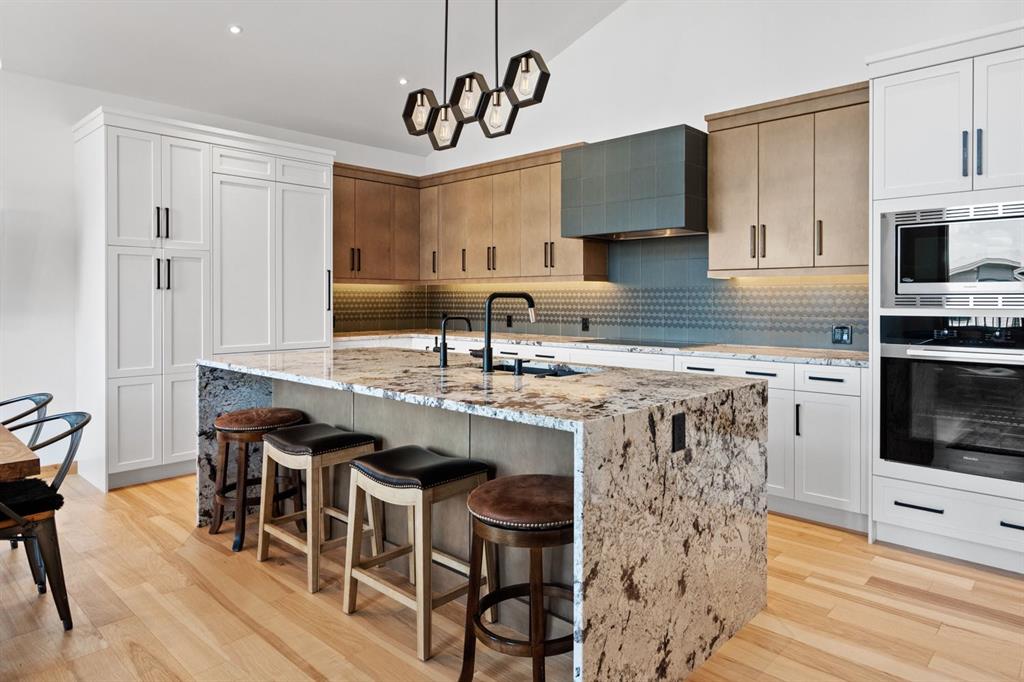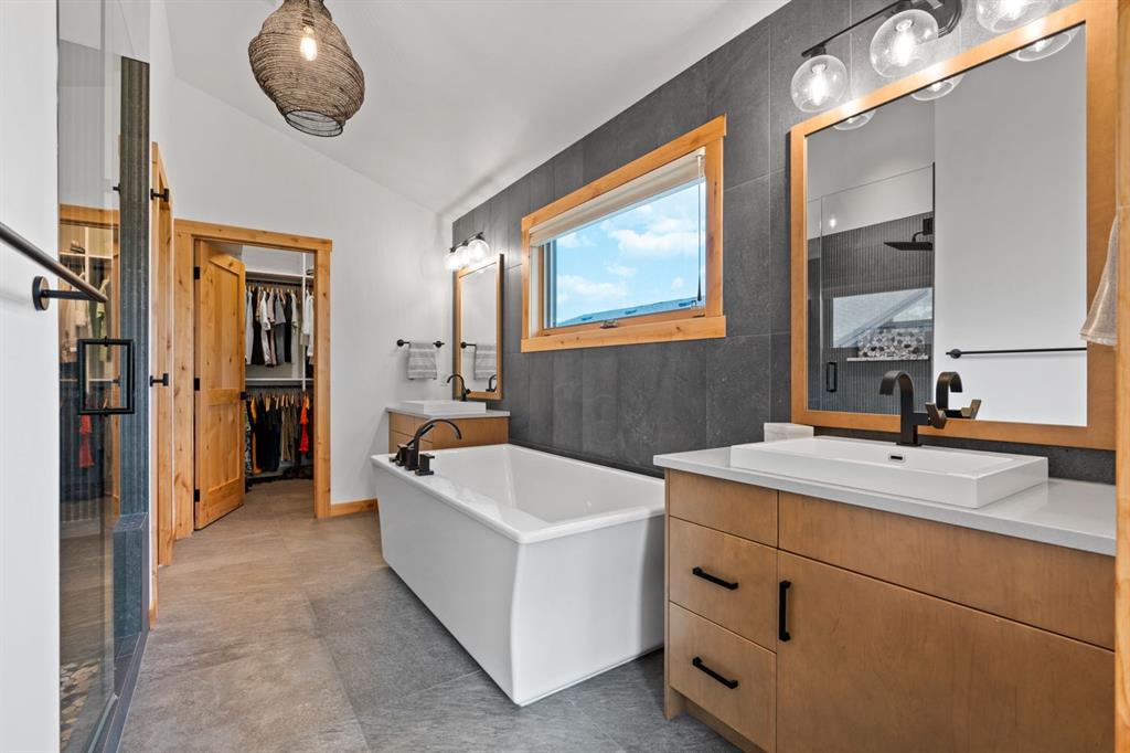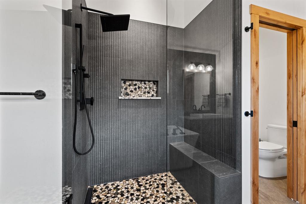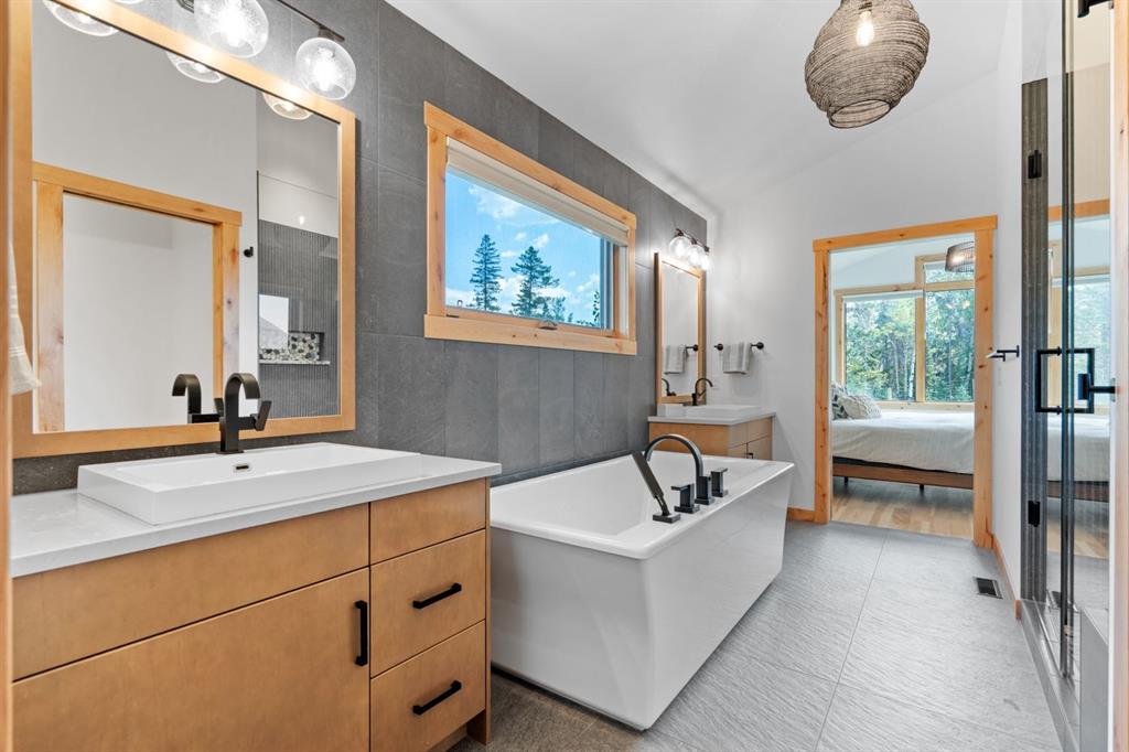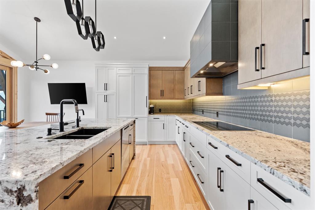 Nestled on a quiet street in Canmore's sought-after Three Sisters community, this stunning single-family residence perfectly captures the essence of mountain living. From the moment you step through the grand entrance, you're welcomed by soaring vaulted ceilings and the elegant open riser staircase that sets the tone for the sophisticated yet rustic design throughout. The heart of the home flows seamlessly with an open concept kitchen, dining, and living space anchored by beautiful engineered hardwood floors. A cozy wood burning fireplace creates an inviting atmosphere while the floor-to-ceiling windows frame the spectacular west-facing views of Cascade Mountain and the Rundle and Fairholme ranges. The gourmet kitchen is a chef's dream featuring granite countertops, a stunning waterfall island with eating bar, water filtration system and premium Miele stainless steel appliances that blend functionality with refined style. Upstairs the primary suite is a true sanctuary flooded with natural light. The spa-like ensuite featuring heated floors indulges with a luxurious soaker tub, dual vanities, and oversized tile work that reflects quality craftsmanship. Step out from the primary onto your own private sun deck and enjoy your morning coffee against the backdrop of east-facing mountain and forest vistas. The second upper level bedroom continues the theme of comfort and connection to nature, boasting its own ensuite, expansive windows and more incredible views. The upper-level laundry room adds convenience to everyday living. The lower walkout level equipped with heated floors expands your living possibilities with two additional spacious bedrooms and a full bathroom, perfect for family or guests. This level opens to its own patio with hot tub and yard area, creating wonderful indoor-outdoor flow. Whether you're entertaining at the wine bar or working from the office/flex space, this level adapts to your lifestyle needs. Practical luxury defines the finishing touches from the spacious mudroom, ample storage throughout, and clean air filtration system, to the heated triple attached garage for all of your mountain toys. Fresh, low-maintenance landscaping out front welcomes you home each day. This quintessential mountain home strikes the perfect balance between modern convenience and rustic mountain charm. Located in the rapidly growing Three Sisters community with exciting amenities planned to serve all your daily needs, 232 Stewart Creek Rise offers not just a home, but a gateway to the mountain lifestyle you've been dreaming of.
