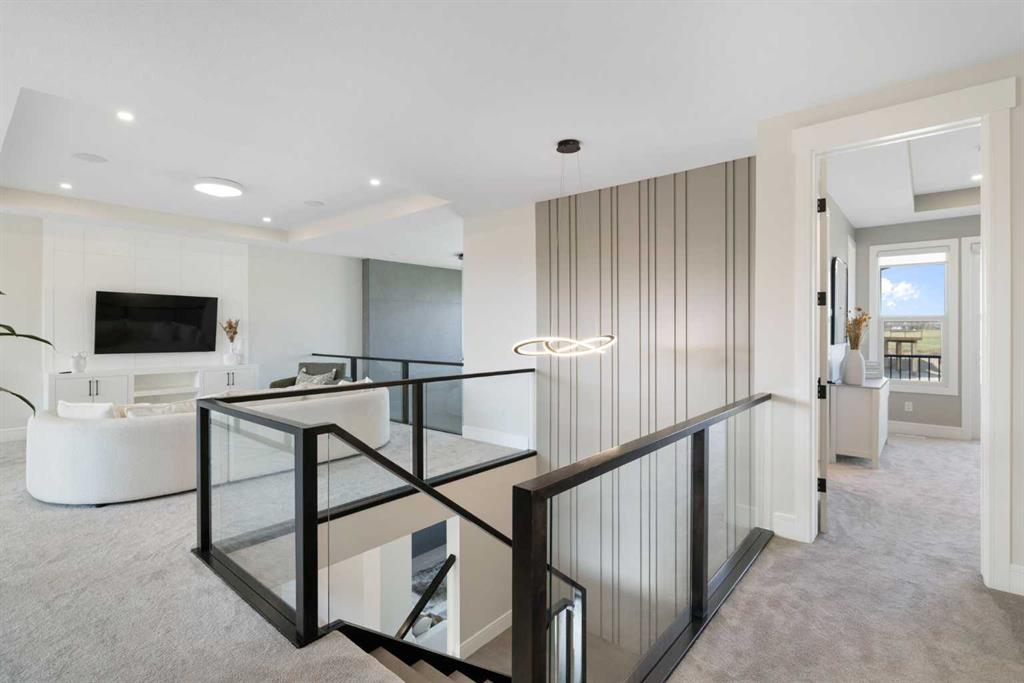 BRAND NEW LUXURY HOME BACKING ONTO THE LAKE!! HUGE 9500+ SQFT LOT!! 10FT MAIN FLOOR CEILINGS!! 9FT UPPER LEVEL AND BASEMENT!! MAIN FLOOR BEDROOM WITH FULL BATH!! 4790 SQFT OF LIVING SPACE!! 7 BEDROOMS + 5 BATHS!! Experience LAKESIDE GRANDEUR in this stunning newly built home designed for modern living and timeless elegance! The main floor welcomes you with a bright LIVING AREA WITH OPEN-TO-BELOW CEILING, a cozy GAS FIREPLACE, and a DINING AREA WITH DECK ACCESS overlooking the lake. The GOURMET KITCHEN features a large island, BUILT-IN APPLIANCES, abundant cabinetry, a SPICE KITCHEN, and a spacious PANTRY—perfect for entertaining and family gatherings. Upstairs offers 4 BEDROOMS + BONUS ROOM, including a PRIMARY SUITE WITH LAKE-VIEW BALCONY, 5PC ENSUITE, and WALK-IN CLOSET. Another bedroom also features a PRIVATE ENSUITE AND WALK-IN CLOSET, while two additional bedrooms share a JACK & JILL 4PC BATH. The FULLY DEVELOPED BASEMENT adds even more living space with 2 BEDROOMS (BOTH WITH WALK-IN CLOSETS), a GYM AREA, and a SPACIOUS LIVING ROOM alongside a 4PC BATH. ATTACHED DOUBLE GARAGE is 42FT deep. Located in the heart of CHESTERMERE, steps from the LAKE, GOLF COURSE, and all nearby AMENITIES, this home perfectly combines LUXURY, FUNCTIONALITY, AND LOCATION—a true dream home on the water!