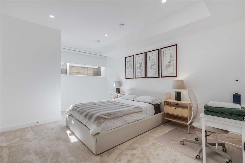 Located in the highly sought-after community of West Hillhurst, this exceptional two-storey home offers over 3,100 square feet of developed living area that blends refined luxury with timeless European-inspired design. Custom-built by Deanmark in 2023, every detail reflects superior craftsmanship and quality materials. With four bedrooms and three and a half bathrooms, this residence delivers both sophistication and functionality for modern family living.The inviting foyer sets the tone with tile flooring and a built-in bench, while wide-plank engineered hardwood extends seamlessly throughout the rest of the main level. Ten-foot ceilings and eight-foot solid core doors enhance the sense of height and elegance, while large windows fill the home with natural light. The open-concept layout connects the kitchen, dining, and living areas, creating an ideal setting for everyday living and entertaining alike. The kitchen is a showpiece, featuring sleek white cabinetry, quartz countertops, a massive waterfall island with seating, and premium Fisher & Paykel stainless steel appliances, including a gas cooktop. Ample storage and workspace make it as functional as it is beautiful. The adjacent dining area easily accommodates family gatherings, while the living room exudes warmth with its linear gas fireplace, tile surround, custom built-in display shelves, and coffered ceiling. A stylish two-piece powder room with a stone pedestal sink finishes the main floor. Upstairs, nine-foot ceilings and thoughtful design create a calm retreat. The primary suite is a luxurious escape, featuring soft carpeting, a spacious walk-in closet with custom shelving, and a spa-like ensuite with heated tile floors, dual sinks, a soaker tub, and an oversized shower. Two additional bedrooms, a four-piece bathroom, and a convenient laundry room round out the upper level. The fully developed basement features 9’4” ceilings, oversized windows, and a bright, open layout. A large recreation room with a sleek wet bar, complete with sink, beverage fridge, and wine display, creates an inviting space for entertaining. A guest bedroom, three-piece bathroom with steam shower, and dedicated storage add functionality. Outside, the backyard offers a concrete patio and grass area leading to a double detached garage with alley access. Hunter Douglas blinds and central air conditioning add year-round comfort. West Hillhurst is one of Calgary’s most desirable inner-city neighbourhoods, known for its blend of family-friendly charm and urban accessibility. You’re within walking distance to the vibrant shops, cafés, and restaurants of Kensington, offering an unmatched lifestyle. Families will appreciate being just a 15-minute walk from both Queen Elizabeth Schools. Nearby parks and the Bow River pathways provide endless opportunities to enjoy the outdoors, while commuting is effortless with easy access to major roadways and transit. Check out the 3D tour for a closer look!