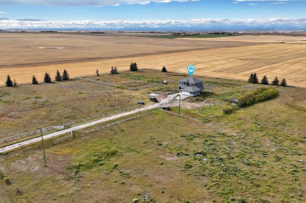 Look here carefull savvy buyers,A fantastic rural parcel,only 25 minutes from Calgary,10-15 minutes from Chestermere with a great 4 bedroom home ,fully finished with a walkout basement..Total of 5 bedrooms,This home was recently renovated,upgraded kitchen,all bath rooms are upgraded.This home lends itself to big families looking for space and comfort.Smashing views of city skyline and Rockyview rolling prarie.land is leased to a local farmer.This is a move in ready home,Quick possession is possible..