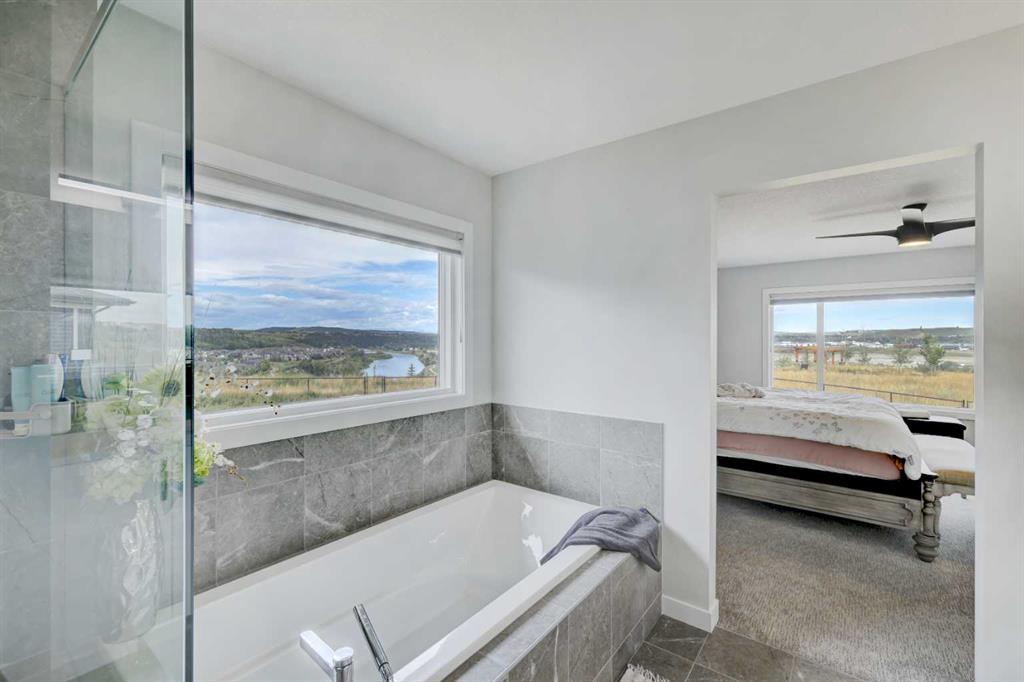 OPEN HOUSEs Saturday & Sunday November 8th and 9th (12-2pm)....This custom-built two-storey Trico home sits on 0.21 acres and features impressive mountain, river, town, and Cochrane Big Hill views. Natural light fills the open kitchen, sitting, and living areas thanks to a wall of windows facing north west. The main level includes a spacious mudroom and pantry, leading to a fully finished heated double garage with workspace. Upstairs offers a large family/bonus room, laundry room, a primary bedroom with views, a five-piece ensuite, walk-in closet, two additional bedrooms, and another five-piece bath. The lower level is ready for your personal touch. Outside is designed to be more than a backyard oasis; it's a space where families gather. Contact us today to schedule a viewing and discover what this home in Precedence has to offer.