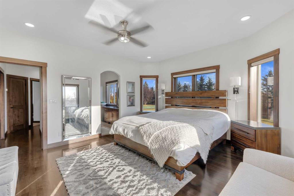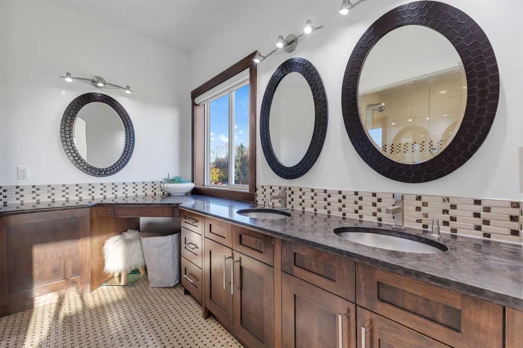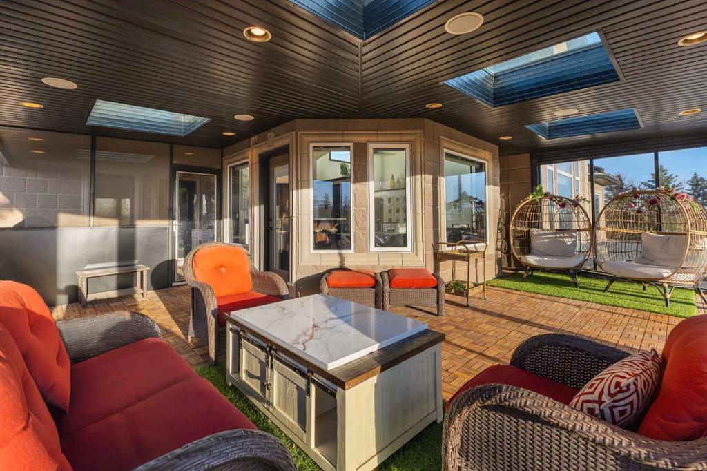 Set on a private GATED, beautifully landscaped property surrounded by open skies and mature trees, this CUSTOM-BUILT ESTATE combines timeless design with thoughtful functionality across 6,000+ sq ft of living space! The long, STAMPED CONCRETE driveway leads to an impressive front entry and a garage large enough to hold everything from collector cars to recreational gear — OVER 2,000 SQ FT OF HEATED SPACE FOR WORK, STORAGE, OR PLAY. Step inside to a grand foyer with soaring ceilings and sunlight spilling through oversized windows. The main floor unfolds in a way that feels both open and intimate, centered around the living room’s striking stone fireplace and two-story windows. The kitchen anchors the space — rich wood cabinetry, granite counters, high-end appliances, and a generous island for gatherings. A connected dining area overlooks the backyard, while the COVERED SUNROOM WITH SKYLIGHTS AND BUILT-IN BBQ extends entertaining outdoors year-round. Down the hall, the main-floor PRIMARY SUITE offers comfort and privacy with a walk-in closet and spa-inspired ensuite. Two additional bedrooms, a full bath, and a convenient powder room make this level perfect for family living. A large mudroom with walk-in closet and a DOG WASH connects directly to the garage — a layout designed for real life. Upstairs, an open riser curved staircase leads to a bright LOFT overlooking the living area below — a relaxed space for lounging, movie nights, or quiet reading by the fireplace. Two generous bedrooms each enjoy their own ENSUITE and walk-in closet, giving this level a boutique-hotel feel that’s ideal for teenagers or guests. Laundry is also tucked neatly upstairs for everyday convenience. The lower level is where the fun begins. A massive REC ROOM with 3-WAY FIREPLACE provides space for games, gym equipment, or movie marathons, while an OPEN OFFICE AREA offers the perfect spot for working from home. There’s also a cozy DEN, TWO MORE BEDROOMS, AND A FULL BATH — plenty of space for extended family or visitors. And then there’s the showstopper: an INDOOR POOL with its own fireplace and lounging area, seamlessly connected to the outdoor yard. It’s a private wellness retreat right at home. Outside, the property feels like a personal resort. Mature trees line the perimeter for privacy, while the open lawn stretches wide with room to play, entertain, or simply breathe. Outbuildings add endless flexibility — storage, workshops, or hobby spaces — and the sports court is ready for friendly competition. Located just minutes from Calgary and Chestermere, this home offers quick access to schools, recreation, and amenities while keeping the peace and quiet of country life. You’re a mere minS away from East Lake School in Chestermere, Safeway and Starbucks, 15 min from East Hills Shopping with Costco, movie theatre, and more, and 15 min to the Foothills Industrial area. It’s a place where every detail feels intentional, every space has purpose, and every sunset reminds you why you live here.