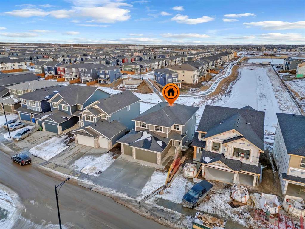 Welcome to 239 Chelsea Park, a truly exceptional family home in the heart of Chestermere. This stunning 4-bedroom, 3.5-bathroom estate offers over 2900 square feet of beautifully crafted living space and is perfect for those seeking both luxury and practicality. The open-concept floor plan is highlighted by soaring ceilings and an impressive floor-to-ceiling fireplace, creating a warm and inviting atmosphere. Natural light floods the home through large windows, illuminating the elegant and custom finishes that flow throughout. The heart of the home lies in the gourmet kitchen, featuring a massive island, sleek countertops, and upgraded high-end appliances, including a separate spice kitchen . Whether you're hosting dinner parties or enjoying family meals, this kitchen offers both style and functionality. On the main level, you’ll also find a spacious office/den, perfect for those who work from home or desire a quiet space for study or reading. This flexible space enhances the home's versatility and adds to the overall convenience of the layout. The home boasts two luxurious ensuites, one in the master suite and another in an additional bedroom, both offering a spa-like retreat with spacious showers and beautiful tile work. Two additional well-sized bedrooms share a beautifully appointed full bathroom, and the home includes 3.5 bathrooms in total, ensuring comfort and convenience for the whole family. Step outside to the expansive deck, where you can enjoy the serene backyard space, ideal for summer BBQs or simply unwinding in privacy. The triple-car garage offers ample space for vehicles, storage, or even a workshop. Situated in the desirable Chelsea Park neighborhood, this home provides easy access to Calgary, excellent proximity to schools, parks, and recreational amenities, and is just moments away from Chestermere’s picturesque lake and outdoor trails. This is an extraordinary opportunity to own a sophisticated, family-friendly home in one of Chestermere’s most coveted communities. Don’t miss your chance—schedule your private viewing today!