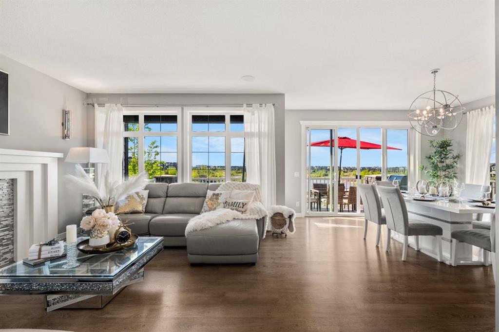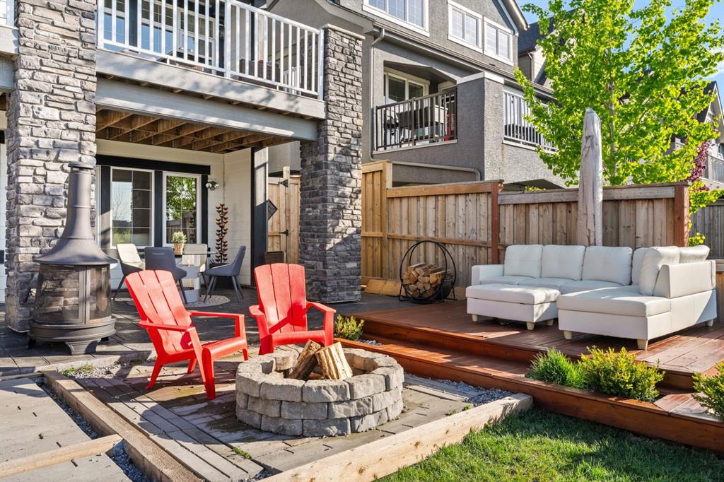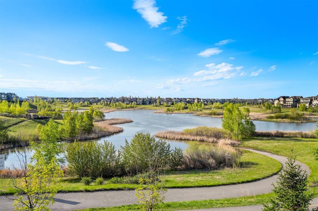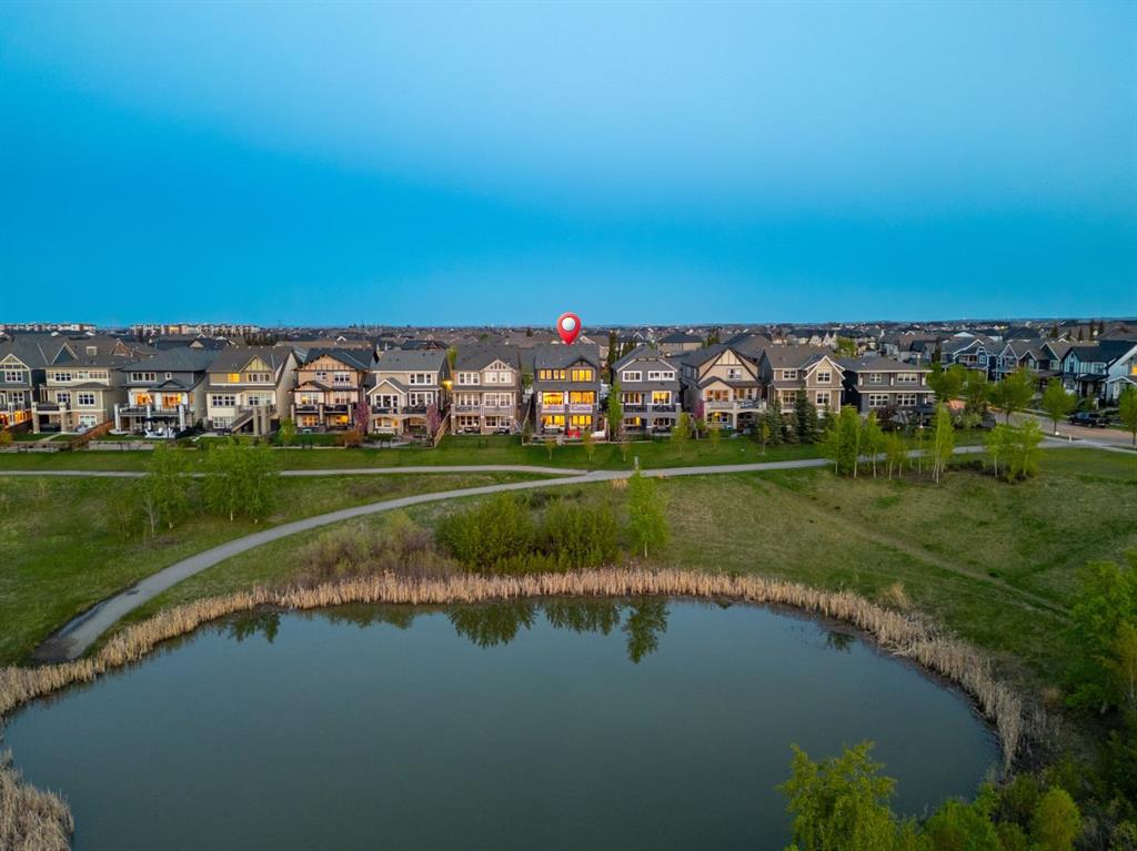 The fully developed walkout basement is designed for entertaining and extended family living, with a spacious rec room, electric fireplace, wet bar, fifth bedroom, and a full 3-piece bath. Outside, the beautifully landscaped backyard connects directly to the tranquil pathways and pond, immersing you in the natural beauty that defines Mahogany.