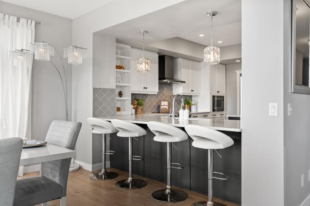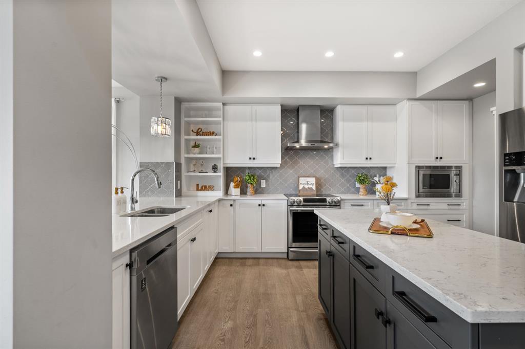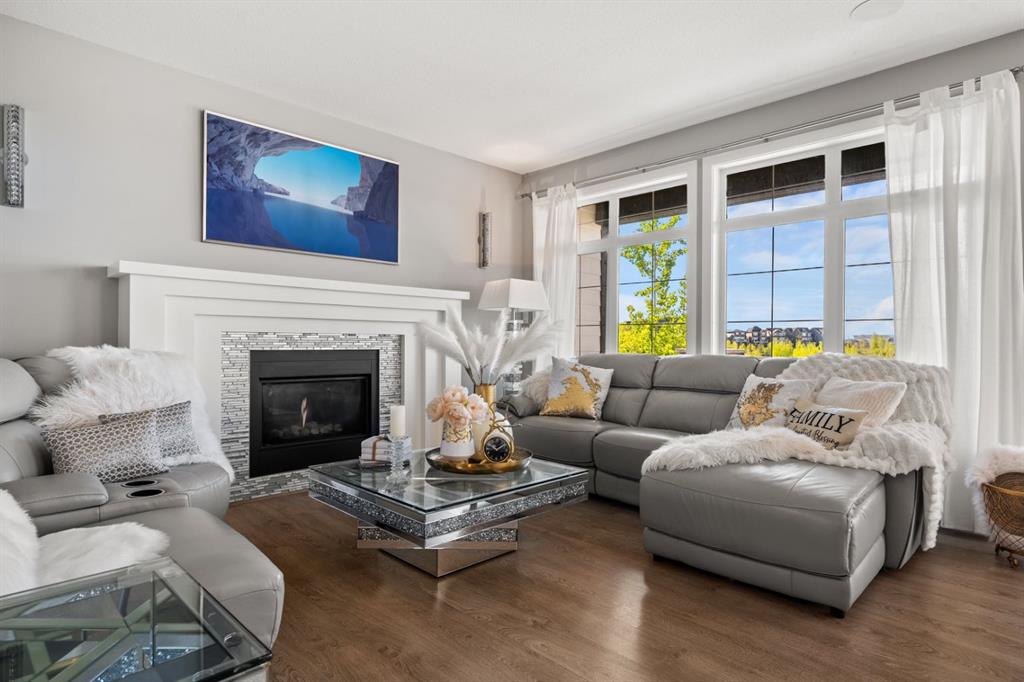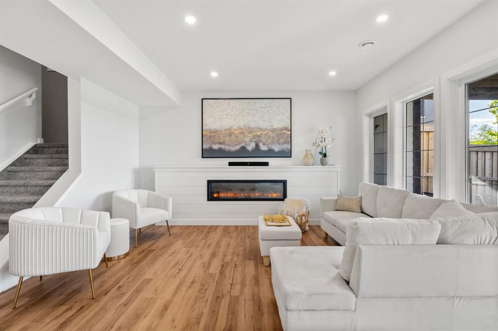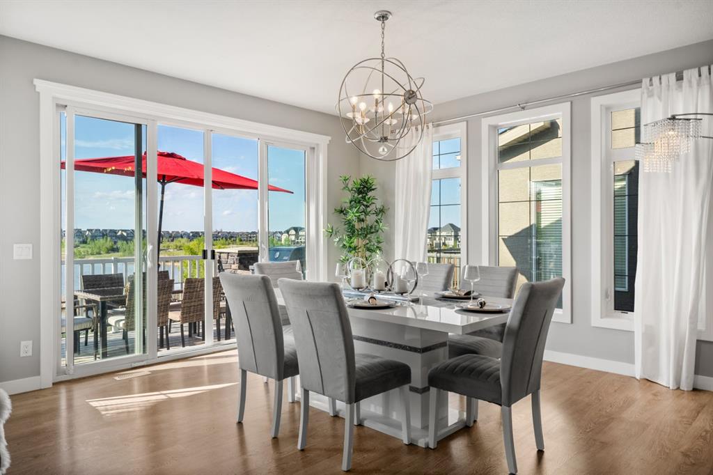 The fully developed walkout basement is designed for entertaining and extended family living, with a spacious rec room, electric fireplace, wet bar, fifth bedroom, and a full 3-piece bath. Outside, the beautifully landscaped backyard connects directly to the tranquil pathways and pond, immersing you in the natural beauty that defines Mahogany.