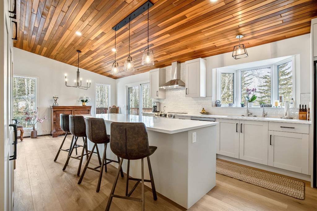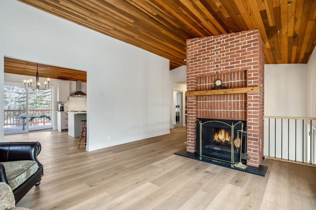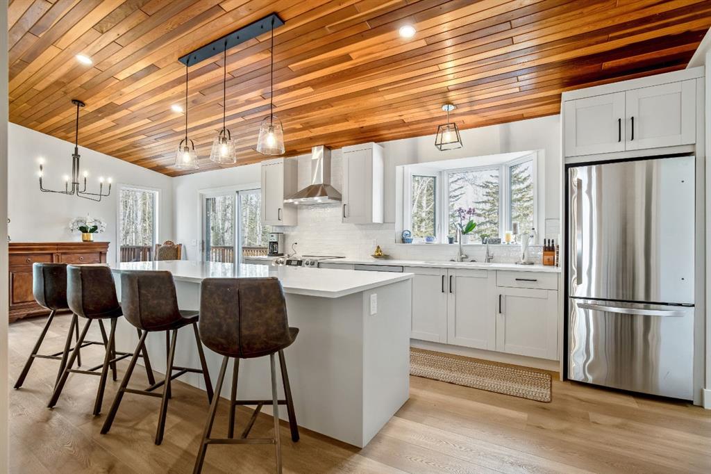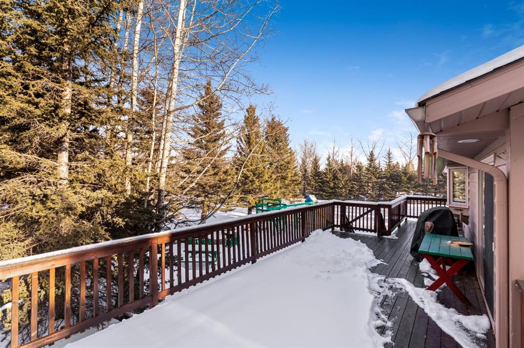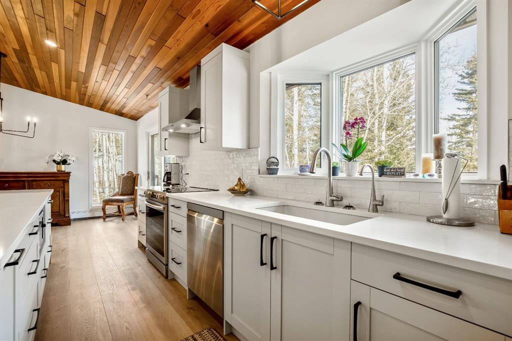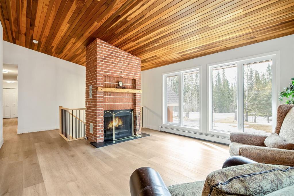 Bright and sunny professionally renovated home in West Bragg Creek located mid way between the Hamlet and the Bragg Creek trail system. All you need to do is unpack your furniture and start enjoying country life. Major renovations include a stunning Legacy kitchen with shiny quartz counters, electric slide in range featuring convection bake, no preheat, steam bake and Air Fry to make cooking a breeze. New flooring throughout, upstairs windows are triple glazed and upstairs bathrooms refinished. Three bedrooms upstairs, brick fireplace in living room, family room with large windows on lower level. Hot water heating with 5 zones ensures each room meets your living temperature ideals. Underdrive garage is heated. Park like yard is perfect for kids and dogs. Children's slide and swings, gas BBQ on deck, fire pit with seating and a large dog run. Everything you need to start your rural life - all yard furniture and even the ride on lawn tractor to help maintain your yard. No water or septic concerns here! Mountain View Park has its own water and sewer system.