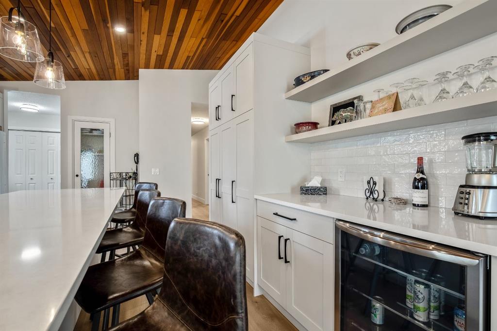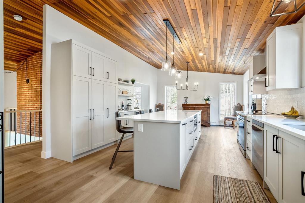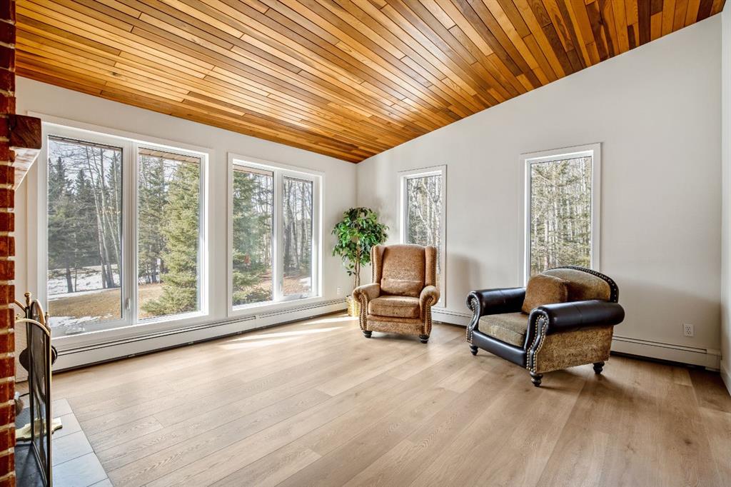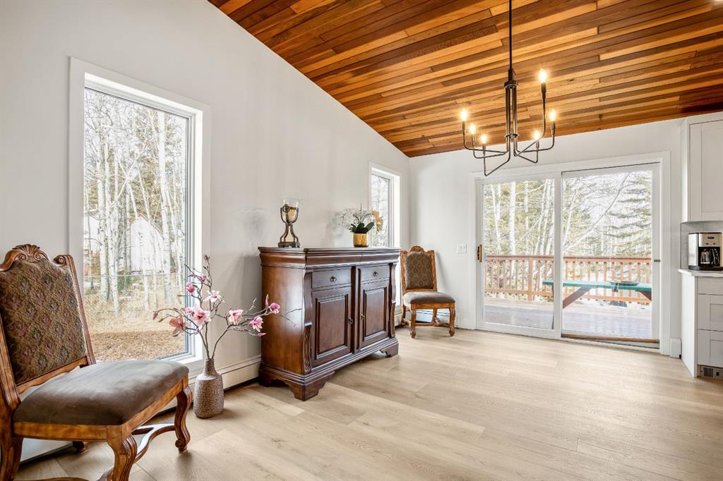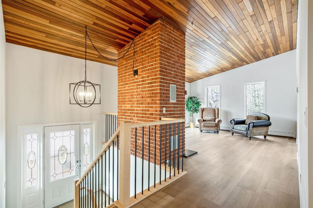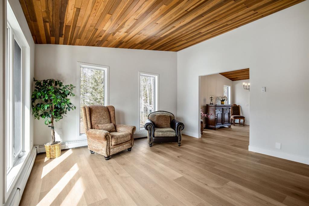Bright and sunny professionally renovated home in West Bragg Creek located mid way between the Hamlet and the Bragg Creek trail system. All you need to do is unpack your furniture and start enjoying country life. Major renovations include a stunning Legacy kitchen with shiny quartz counters, electric slide in range featuring convection bake, no preheat, steam bake and Air Fry to make cooking a breeze. New flooring throughout, upstairs windows are triple glazed and upstairs bathrooms refinished. Three bedrooms upstairs, brick fireplace in living room, family room with large windows on lower level. Hot water heating with 5 zones ensures each room meets your living temperature ideals. Underdrive garage is heated. Park like yard is perfect for kids and dogs. Children's slide and swings, gas BBQ on deck, fire pit with seating and a large dog run. Everything you need to start your rural life - all yard furniture and even the ride on lawn tractor to help maintain your yard. No water or septic concerns here! Mountain View Park has its own water and sewer system.
