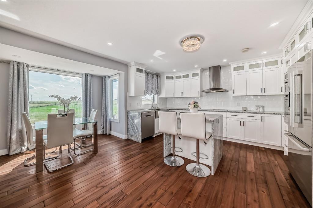 Welcome to this beautiful home in Paradise! Conveniently located only few minutes away from Calgary and all amenities of Chestermere. This home is situated on 4 acres of land and has been substantially renovated in last 5 years. New kitchen, appliances, bathrooms, hardwood and custom stone tiled floors on the inside and windows, doors, new roof, Hardie board and stone siding, new septic tank on the outside. Home features 4 bedroom, 2 offices and open concept kitchen, large living room with tons of natural light thouout the house. Downstairs is 2 bedroom illegal suite with large eat in kitchen and separate entrance. Oversized double attached garage has been remodelled and space for workshop or small business shop created. There is lots of parking space including RV parking and lots of space for gardening, a storage shed is included. Call your realtor to book a viewing. The city of Chestermere allowed a subdivision of this type of lots recently.