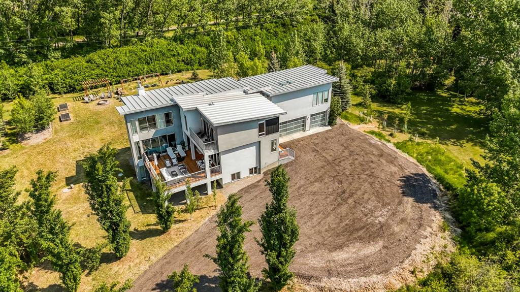 Welcome to a remarkable fusion of modern elegance and acreage tranquility—an extraordinary custom-built estate nestled on a beautifully manicured 2-acre parcel, including a high-earning legal suite, just a short drive from the vibrant heart of Calgary. This exceptional 8-bedroom, 4.5-bathroom residence offers 4,941 square feet of exquisitely designed living space, crafted with a seamless blend of architectural sophistication and everyday comfort. From the moment you arrive, you're greeted by the striking contemporary design—featuring clean lines, a sleek metal roof, and purposeful elements that make this home as stylish as it is functional. Expansive floor-to-ceiling windows invite an abundance of natural light throughout, illuminating polished concrete floors and emphasizing the spacious, open-concept layout. The main dining area flows effortlessly from the state-of-the-art kitchen—complete with high-end appliances, extensive quartz countertops, custom cabinetry, and a large center island—into a generous living room with a real wood-burning fireplace, perfect for cozy gatherings and enjoying panoramic views. A dedicated den offers a quiet space for a home office or study. Each of the six well-proportioned bedrooms provides a private sanctuary, with the luxurious primary suite featuring a spa-inspired ensuite with dual vanities, a walk-in shower, makeup vanity, and open-concept closet. The remaining bathrooms are outfitted with sleek, contemporary fixtures that reflect the home's modern character. Downstairs, the fully developed walk-out basement opens up a world of possibility, with a home theater, gym, and recreation room ready to suit any lifestyle. Adding incredible value is the thoughtfully designed 2-bedroom legal suite above the triple-attached garage, with a private entrance and full kitchen—currently generating $2,100 per month in consistent rental income, making it ideal for investors, multigenerational living, or offsetting mortgage costs. The expansive lot includes mature landscaping, a 3,500-gallon cistern, a large deck for entertaining, and wide open spaces perfect for gardening or play—all set against sweeping prairie views. Lovingly maintained by the original owner and built with premium materials throughout, this home combines modern luxury with practical functionality. Despite its peaceful rural setting, the property is just minutes from Calgary’s city limits, the South Health Campus, top-rated schools, shopping, restaurants, and all essential services. Whether you're searching for a luxurious family retreat, a flexible multigenerational setup, or a savvy investment opportunity, this extraordinary estate offers unmatched versatility and timeless appeal. This property is a must see in person to truly take it all in. Ask your favorite realtor and come on Buy!