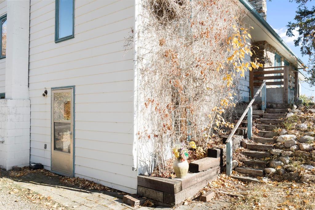 Exceptional opportunity to own 5 acres of rolling prairie just 1-minute from Calgary’s city limits. This 1970s-built home offers 4 bedrooms, 2 bathrooms, 2 wood-burning fireplaces, and a double attached garage; a true handyman's special. Several outbuildings remain on the property in varying condition, offering space for future redevelopment or replacement. Mature trees have been strategically placed to provide privacy and shade around the home and former animal/workshop outbuildings, adding to the natural charm of the land. The property carries a sense of history and tranquility, surrounded by open skies and potential. With its prime location, easy city access, and peaceful country setting, the true value lies in the land and the opportunity it presents—for investors, builders, or those looking to create a custom estate just outside Calgary.