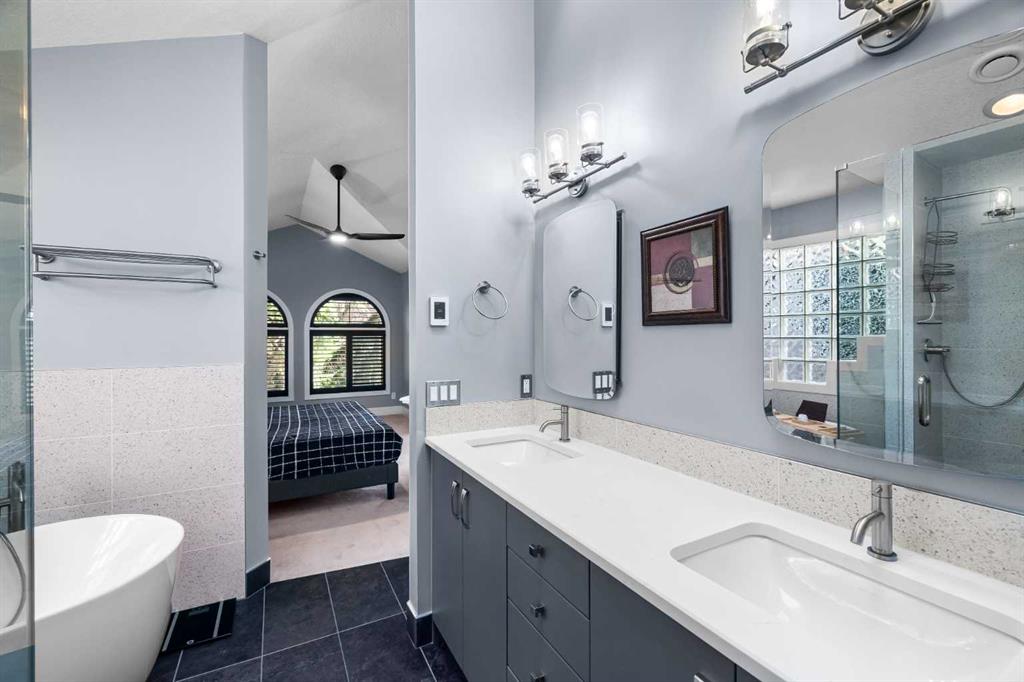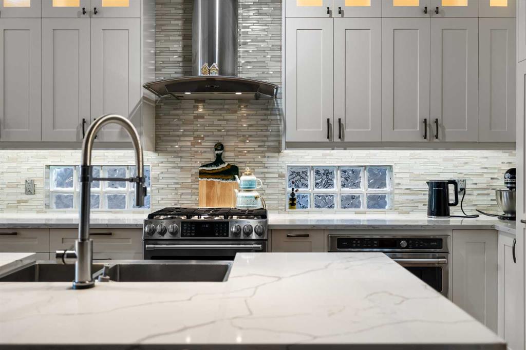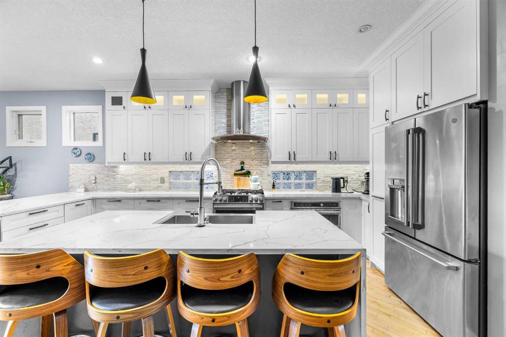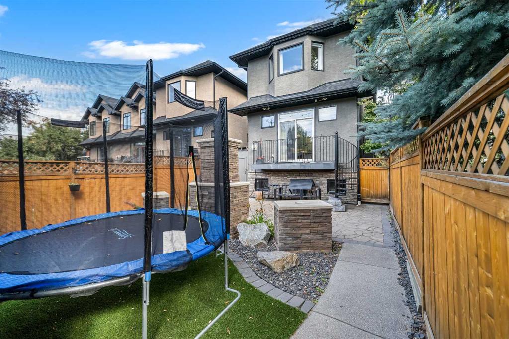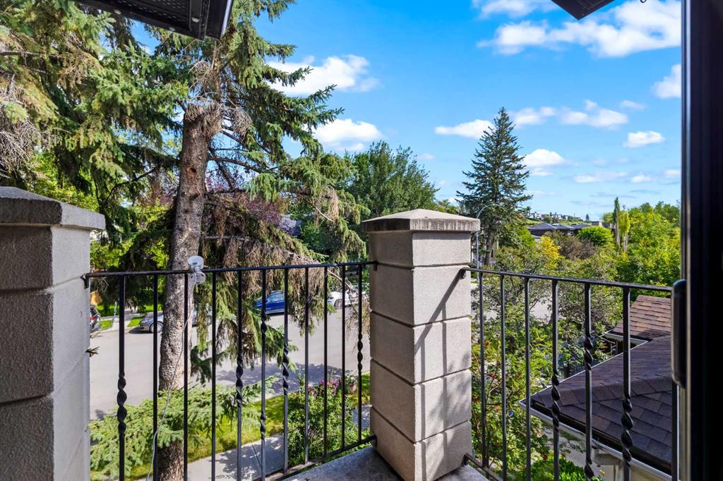 Tucked away on a quiet cul-de-sac in the heart of West Hillhurst, this beautifully updated 4-bedroom, 4-bathroom home combines thoughtful design with timeless style in one of Calgary’s most desirable inner city communities. From the moment you step inside, you’re greeted with 9’ ceilings, elegant crown moulding, and a bright, inviting layout that flows seamlessly from room to room. The front living and dining area offers a warm welcome, anchored by the striking curved staircase. At the heart of the home is the chef’s kitchen, showcasing custom cabinetry, quartz countertops, a dramatic waterfall island, beverage chiller, and high end appliances. Designed for both family living and entertaining, it opens into a cozy living room with gas fireplace and patio doors leading to the sun-drenched south-facing backyard. Upstairs, soaring vaulted ceilings and two skylights fill the home with natural light. The primary retreat is a true sanctuary, complete with a private balcony overlooking mature trees, a gas fireplace, walk-in closet with builtins, and a spa inspired 5 piece ensuite with heated floors. Relax in the soaker tub or enjoy the oversized glass shower featuring dual rain heads, and body spray jets. Two additional bedrooms, a 4-piece bath, and convenient upstairs laundry complete the upper level. The fully finished basement extends the living space with a versatile office or workout area, including a builtin Murphy bed for overnight guests. A stylish wet bar with slate flooring and a beverage fridge sets the stage for entertaining, while the spacious rec room with gas fireplace and automated blinds is perfect for movie nights. A 3-piece bathroom completes this level. Outdoors, both the front and back yards have been designed for low-maintenance living with synthetic grass, professional landscaping, and perennial plantings. The backyard features a stone patio and a stunning built-in fireplace, creating a private oasis ideal for gatherings or quiet evenings at home. This home is perfectly situated just steps from off-leash parks, playgrounds, and the river pathways. You’ll enjoy quick access to SAIT, the University of Calgary, Foothills Hospital, McMahon Stadium, Kensington Village, and downtown Calgary. With its blend of elegant finishes, modern updates, and an unbeatable location, this home offers the best of inner city living style, comfort, and convenience in equal measure.