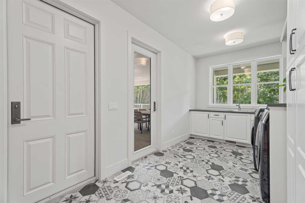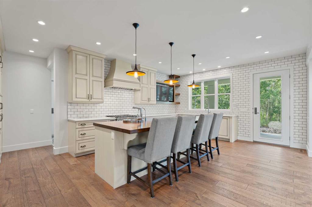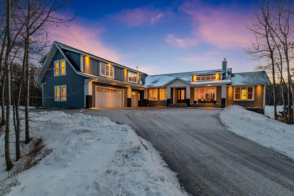 Car enthusiasts!! Set on 5.14 acres of stunning treed and open landscape, just minutes from Calgary and Okotoks, this exceptional custom-built modern farmhouse offers a rare balance of architectural refinement, privacy, and natural beauty. Designed for those who appreciate craftsmanship and quiet luxury, the home presents as a private estate—serene, elegant, and timeless. A paved, curved driveway leads to a gated entrance, introducing a picturesque setting of green space and mature trees. Inside, 17-foot vaulted ceilings and expansive windows fill the main living spaces with natural light, creating an immediate sense of openness and calm. The living room is anchored by a refined gas fireplace and custom built-ins, offering a warm and inviting atmosphere for both everyday living and intimate gatherings.
