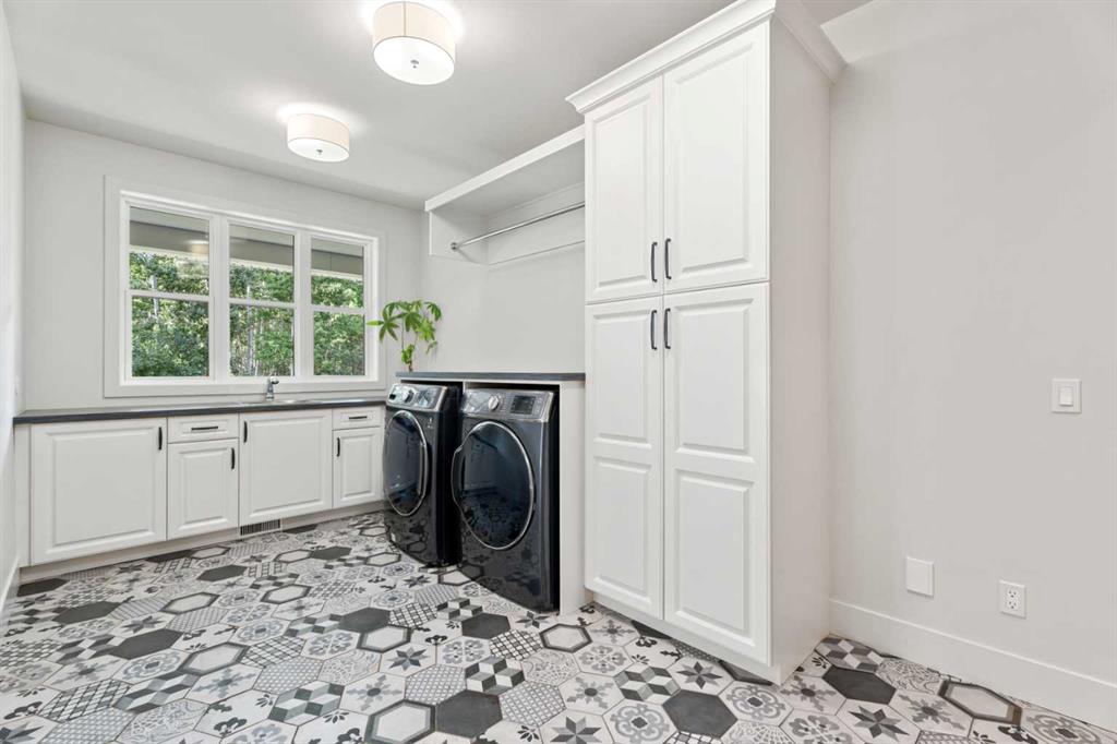 The HEATED 5-CAR GARAGE has 3 garage doors has dog wash and a work bench. With an RV hook-up, and private walking paths throughout the fully fenced property, this estate delivers elevated acreage living just moments from some of Heritage Pointe, Carmoney and Cottonwood Golf Courses plus city convenience. Contact your favourite realtor today to arrange a private showing. Directions: East on Dunbow Road from Macleod or Deerfoot Trail. Turn South (right) onto 27 St. E into the cul-de-sac to the gated entrance.