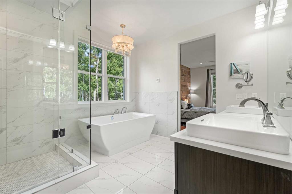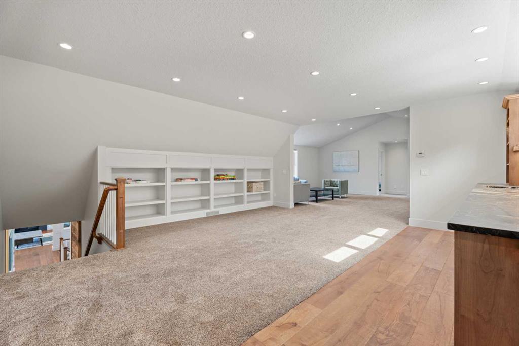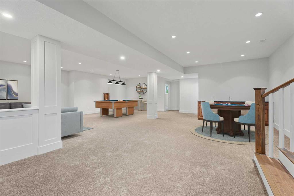 The main-floor primary retreat is a sanctuary of comfort, with vaulted ceilings, a barn wood feature wall, and a spa-inspired ensuite complete with in-floor heating, freestanding soaking tub, walk-in glass shower, and a custom-fitted walk-in closet. A dedicated office, laundry room, and mudroom complete the main level with thoughtful functionality. Upstairs, above the garage, is a versatile bonus room with built-in bar and games area provides an inviting space for relaxation or entertaining, while two additional bedrooms with window seats share a beautifully appointed bathroom. The fully developed lower level offers a billiards area, full bar, spacious recreation room, and two more bedrooms—ideal for hosting guests.
