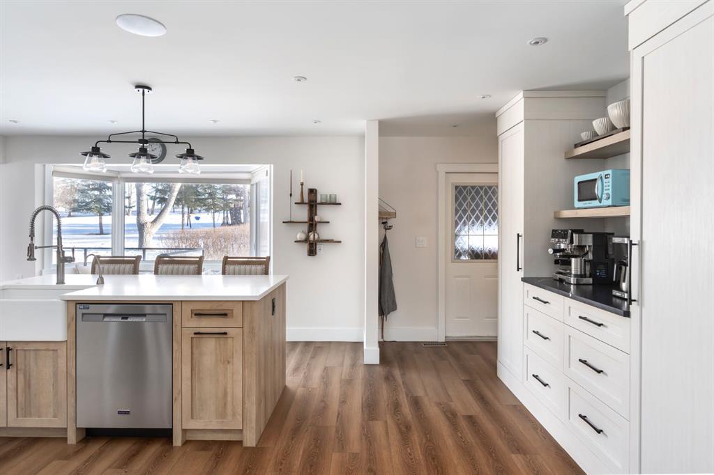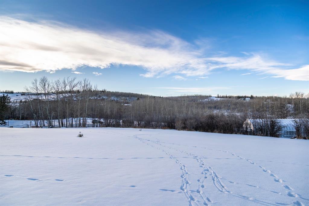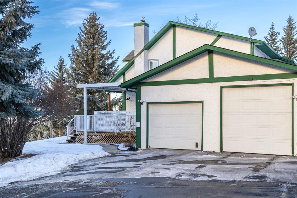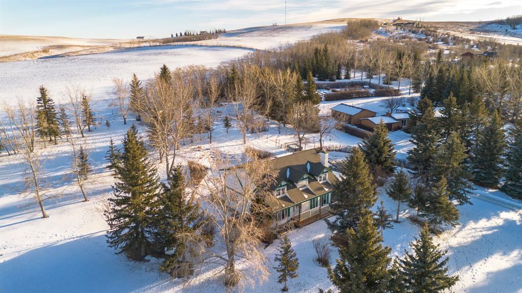 Welcome Home to this beautifully upgraded and meticulously maintained two-storey home situated on a picturesque 2.18 acre lot in the highly sought after community of White Post Lane Estates, only 15 minutes from Calgary. Surrounded by mature trees and lush landscaping, this serene retreat offers exceptional privacy and breathtaking views. This home seamlessly blends timeless country charm with modern luxury with 3,635 square feet of thoughtfully updated living space. Upon entering the home, the foyer welcomes you with soaring vaulted ceilings and abundant natural light through triple-pane windows. At the heart of the home is the stunning modern farmhouse kitchen, complete with a large island and apron-front sink, newer appliances, pot filler, coffee station, as well as an expansive pantry. A cozy built-in bay window bench provides the perfect place to enjoy your morning coffee while taking in natures surroundings. The main floor also offers a front living room, a formal dining room with French doors opening to a low-maintenance composite deck, and a cozy family room highlighted by a gas fireplace with a striking stone surround with custom built-ins. A 4 piece bathroom and a thoughtfully designed farmhouse-style mudroom/laundry room featuring a sink and vintage refrigerator, complete the main floor. Convenient side access to the wraparound west-facing deck, is the perfect spot for soaking in the breathtaking views and evening sunsets. Upstairs, the primary retreat overlooks the peaceful backyard and includes a large walk-in closet and private 3-piece ensuite. Two additional generously sized bedrooms complete the upper level, one of which features a renovated ensuite 4-piece bathroom. The open-concept basement offers excellent flexibility for recreation, a home gym, or future development with the potential to add a fourth bedroom and bathroom, with rough-ins already in place. The oversized heated double garage includes an EV charger and a dedicated workshop area. Outside is truly where the dream begins, featuring an expansive private backyard featuring a fenced vegetable garden, chicken coop, mature trees and shrubs, as well as a tasteful rock water feature. Additional upgrades include a reverse osmosis system, newer high-efficiency furnace, newer hot water tank, upgraded attic insulation, radon mitigation system, newer windows, built-in speakers and phantom screens. Enjoy the best of Country Living with nearby conveniences, including Granary Road Farmers Market, just two minutes down the road, as well as top-rated schools such as Red Deer Lake School and Tanbridge Academy (Private K–9) only 12 minutes away. An extraordinary acreage opportunity to enjoy refined, low maintenance country living with unmatched proximity to Calgary!