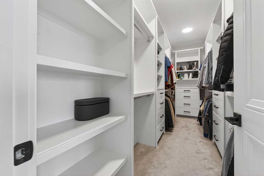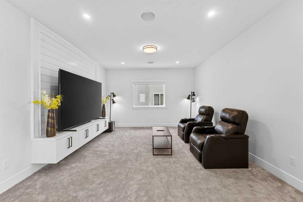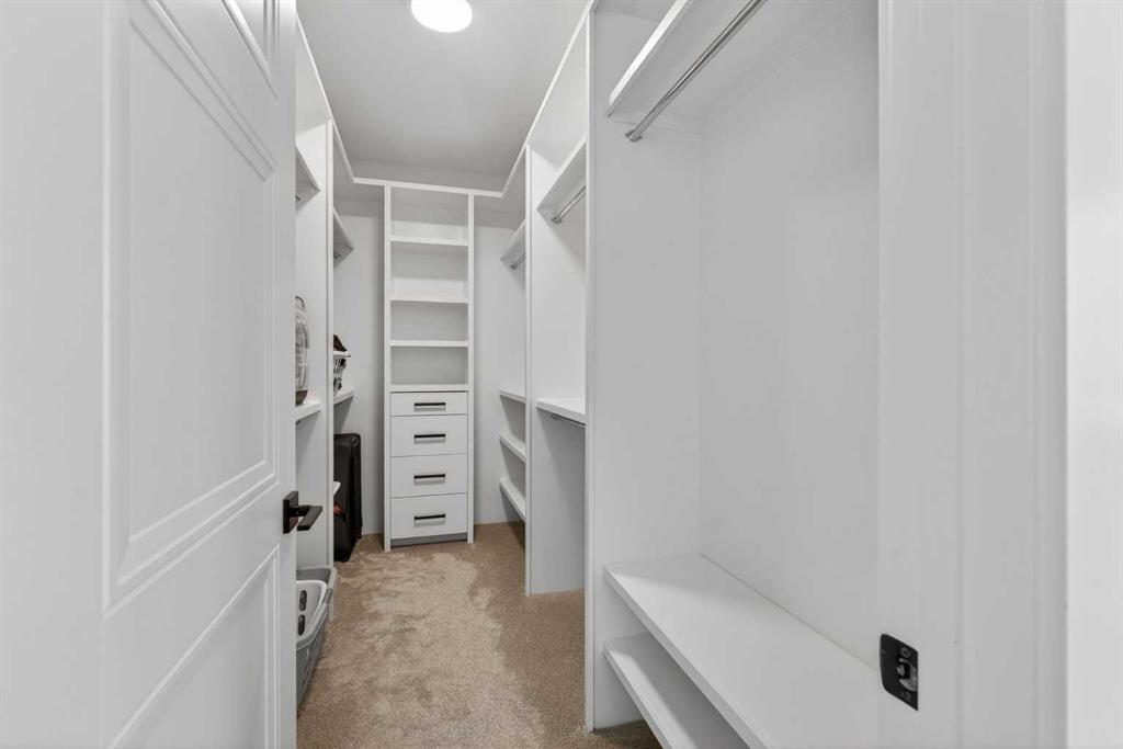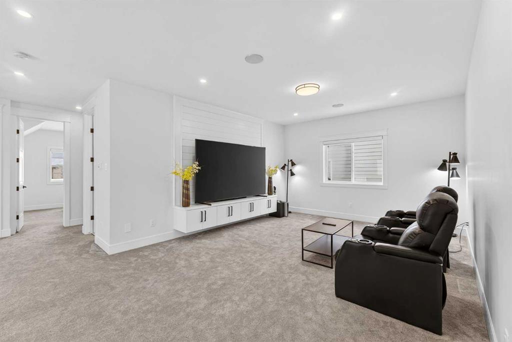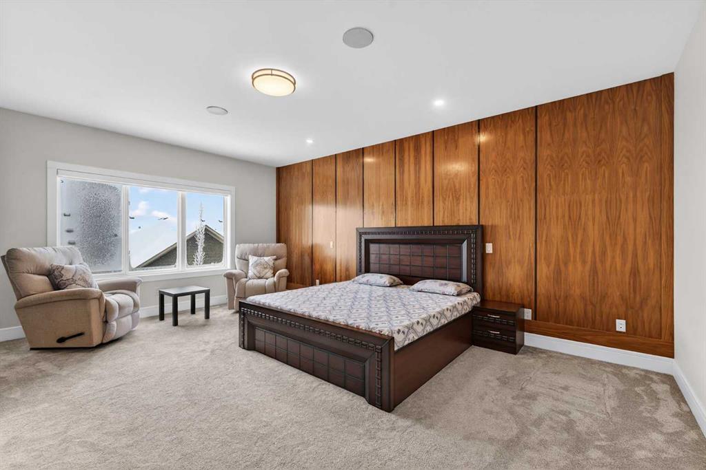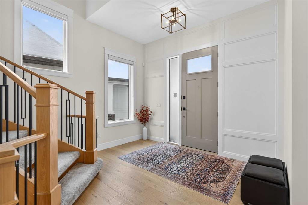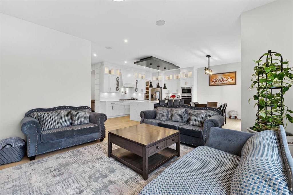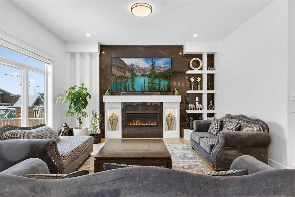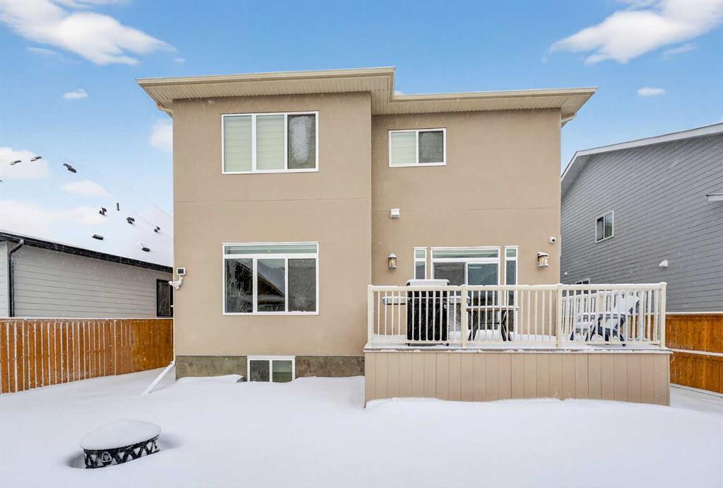 Welcome to this exceptional custom-built luxury residence situated in the prestigious community of Coopers Crossing , this refined two-storey home offers nearly 4,000 sq.ft. of meticulously designed living space, blending elegance, comfort, and timeless craftsmanship. With 4 generously sized bedrooms and 3.5 beautifully appointed bathrooms, this home delivers a grand first impression from the moment you step inside the impressive front foyer, featuring soaring double-height ceilings, a bespoke staircase with wrought iron railing, and a striking designer chandelier. The main level showcases elevated finishes and exceptional attention to detail, highlighted by rich custom millwork, expansive ceilings, a private office, and a versatile flex space suited for modern luxury living. The gourmet kitchen serves as the centerpiece of the home, complete with premium built-in appliances, a sleek gas range, thoughtfully designed cabinetry, and sophisticated finishes throughout. The adjoining dining area comfortably accommodates a 10-person table, ideal for hosting elegant gatherings, while the oversized island provides additional seating and functionality. The living room is both refined and inviting, offering custom built-ins and a dramatic fireplace framed by bold black tile, creating a modern yet timeless focal point. Upstairs, the custom staircase leads to an oversized bonus room with built-in entertainment cabinetry, perfect for relaxation or entertaining. The primary retreat is truly impressive, featuring double-door entry, designer wall detailing, integrated speakers, and a stunning fireplace. The spa-inspired ensuite is equipped with a double vanity, deep soaker tub, and an expansive steam shower, delivering a true resort-like experience. Two additional spacious bedrooms complete the upper level, each offering its own walk-in closet. The fully developed basement continues the luxury theme, designed as an entertainer’s retreat with custom built-ins and a generous wet bar ideal for showcasing fine spirits. A fourth bedroom and full bathroom complete the lower level, providing exceptional comfort for guests or extended family. Additional premium features include central air conditioning, central vacuum system, and a heated garage designed for year-round convenience. The garage is further enhanced with a fully equipped kitchen setup, ideal for cooking spicy or aromatic foods, offering both practicality and thoughtful design. This remarkable home offers sophisticated living in one of Airdrie’s most sought-after communities. Book your private showing today and experience this stunning property firsthand.