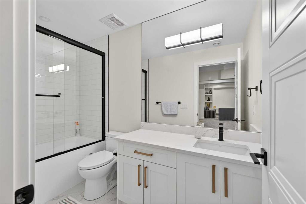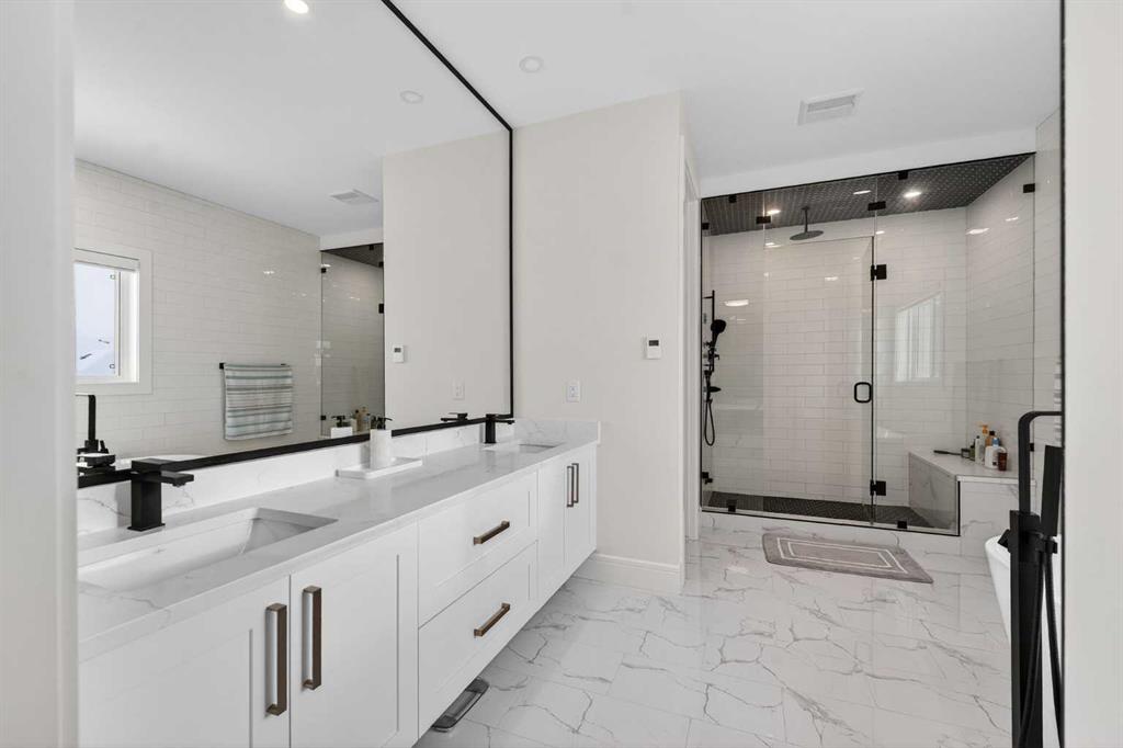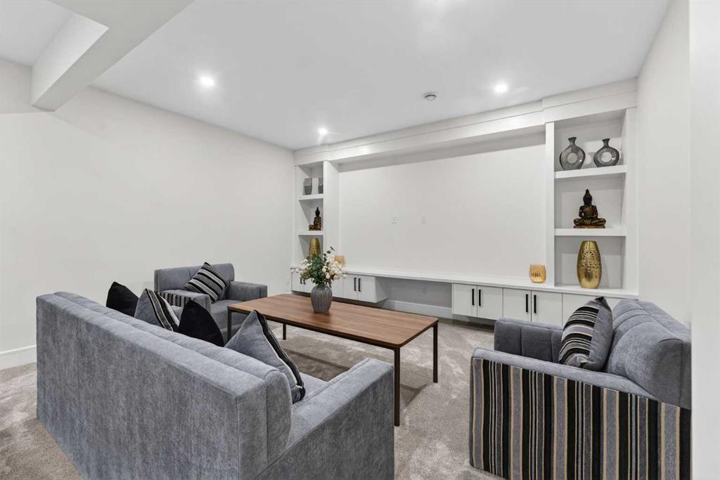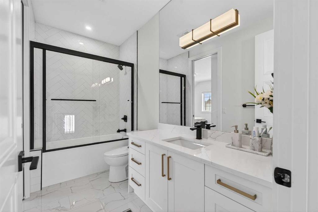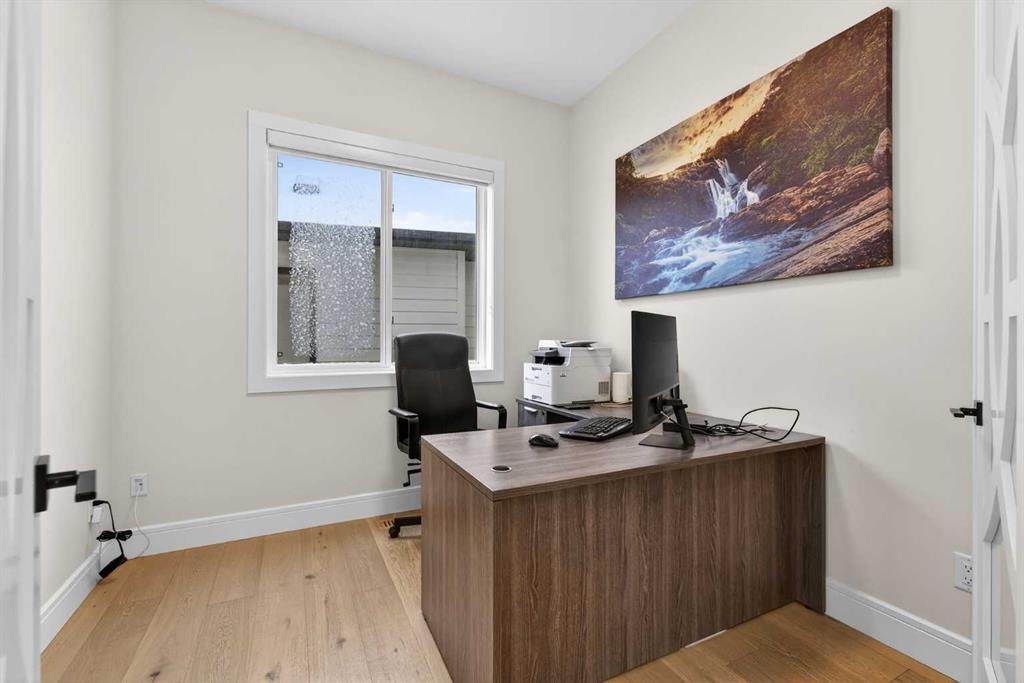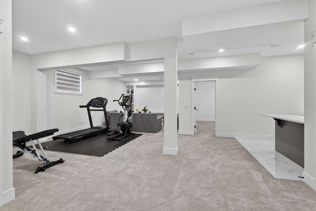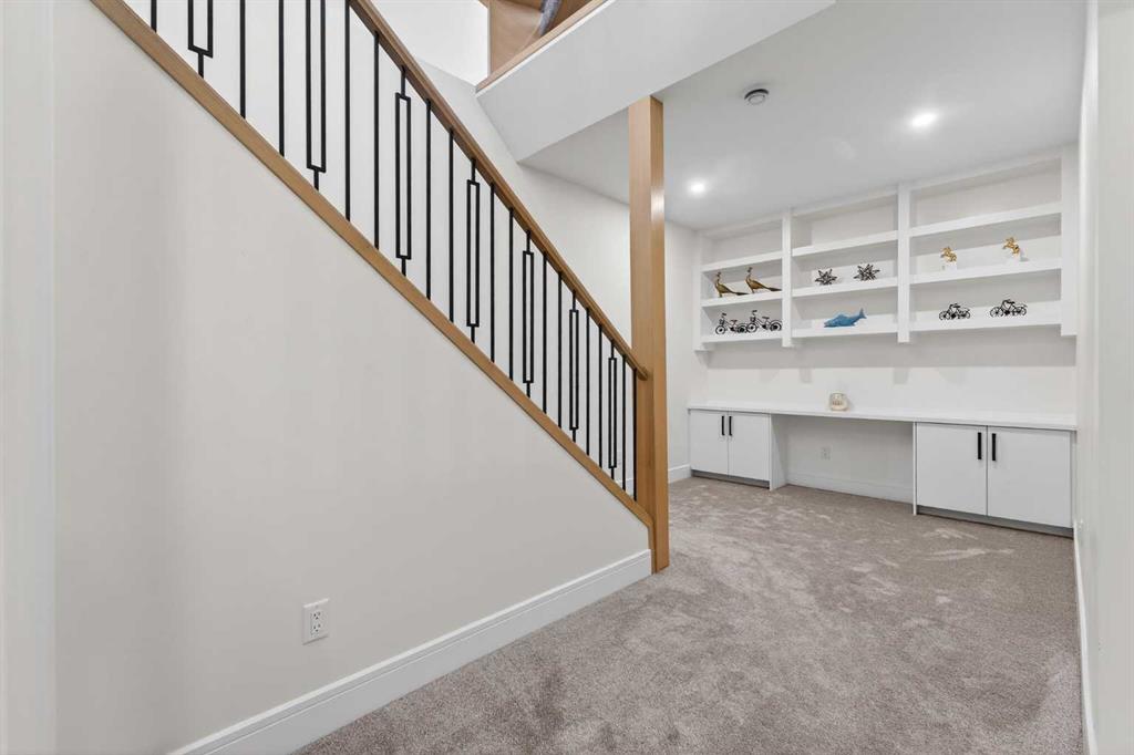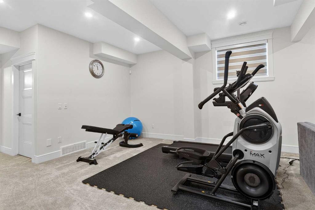 Welcome to this exceptional custom-built luxury residence situated in the prestigious community of Coopers Crossing , this refined two-storey home offers nearly 4,000 sq.ft. of meticulously designed living space, blending elegance, comfort, and timeless craftsmanship. With 4 generously sized bedrooms and 3.5 beautifully appointed bathrooms, this home delivers a grand first impression from the moment you step inside the impressive front foyer, featuring soaring double-height ceilings, a bespoke staircase with wrought iron railing, and a striking designer chandelier. The main level showcases elevated finishes and exceptional attention to detail, highlighted by rich custom millwork, expansive ceilings, a private office, and a versatile flex space suited for modern luxury living. The gourmet kitchen serves as the centerpiece of the home, complete with premium built-in appliances, a sleek gas range, thoughtfully designed cabinetry, and sophisticated finishes throughout. The adjoining dining area comfortably accommodates a 10-person table, ideal for hosting elegant gatherings, while the oversized island provides additional seating and functionality. The living room is both refined and inviting, offering custom built-ins and a dramatic fireplace framed by bold black tile, creating a modern yet timeless focal point. Upstairs, the custom staircase leads to an oversized bonus room with built-in entertainment cabinetry, perfect for relaxation or entertaining. The primary retreat is truly impressive, featuring double-door entry, designer wall detailing, integrated speakers, and a stunning fireplace. The spa-inspired ensuite is equipped with a double vanity, deep soaker tub, and an expansive steam shower, delivering a true resort-like experience. Two additional spacious bedrooms complete the upper level, each offering its own walk-in closet. The fully developed basement continues the luxury theme, designed as an entertainer’s retreat with custom built-ins and a generous wet bar ideal for showcasing fine spirits. A fourth bedroom and full bathroom complete the lower level, providing exceptional comfort for guests or extended family. Additional premium features include central air conditioning, central vacuum system, and a heated garage designed for year-round convenience. The garage is further enhanced with a fully equipped kitchen setup, ideal for cooking spicy or aromatic foods, offering both practicality and thoughtful design. This remarkable home offers sophisticated living in one of Airdrie’s most sought-after communities. Book your private showing today and experience this stunning property firsthand.