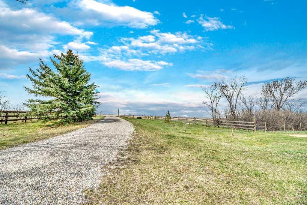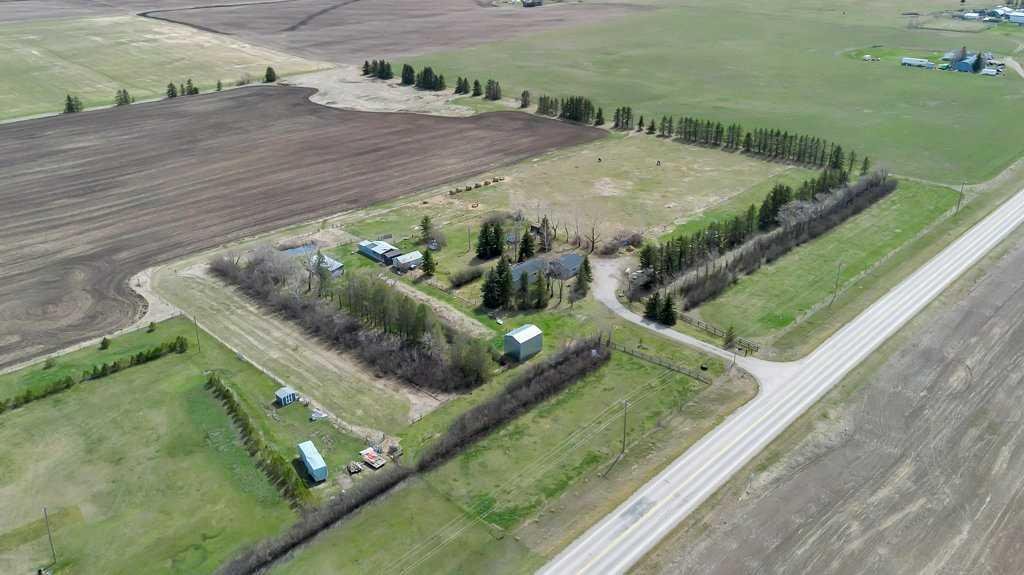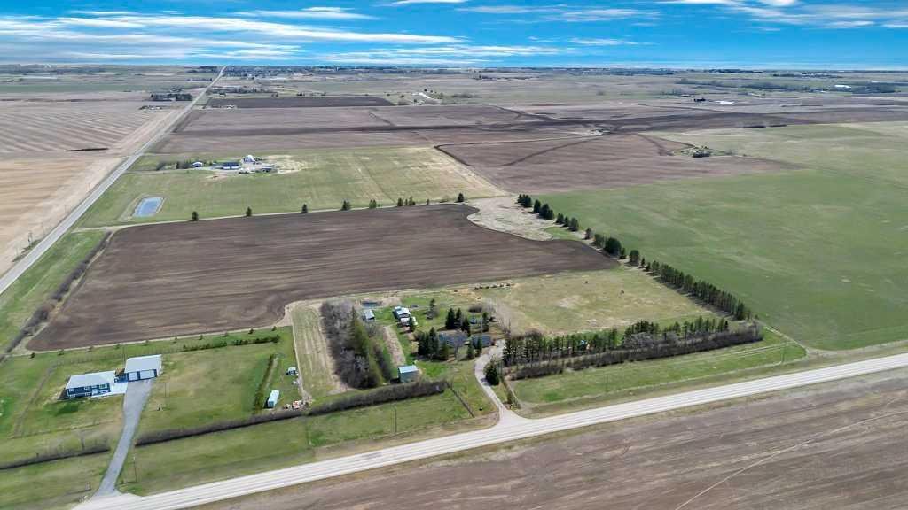 Opportunity on this beautifully treed and private 34.5-acre parcel—just the lifestyle and investment you've been looking for minutes from Strathmore. Whether you're dreaming of quiet country living, starting your hobby farm, or exploring future subdivision potential, this one has it all. The heart of the property is a fully renovated bungalow offering over 2000 square feet of developed living space, with a warm modern farmhouse style throughout. Featuring 2 bedrooms on the main level plus a spacious 3rd bedroom downstairs, this home is perfect for small families. You'll love the bright open layout, two full bathrooms-2nd bathroom almost completed, and a 90% finished walk-up basement that adds functionality and natural light. Extensive recent updates mean all the work is done for you—windows, siding, roof, flooring, kitchen, bathrooms, and more—all with timeless finishes and attention to detail. Step outside and take in the mature trees that offer incredible privacy and a serene setting. Equestrian-ready and hobby farm friendly, the property includes a 10GPM well, new septic system, perimeter fencing, auto waterer, hay shed, numerous utility sheds. Approximately 20 acres are cultivatable with productive soil, offering potential for hay, crops, or income-generating leases. Zoned agricultural and loaded with value, this property offers long-term potential in an area known for its peaceful rural lifestyle—just a short drive to town amenities. Here’s your chance to own a versatile acreage where you can build your future while enjoying the best of country living.