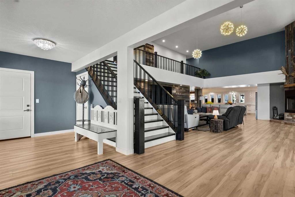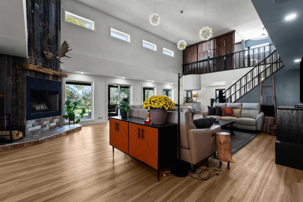 ****OPEN HOUSE ***** SATURDAY, NOVEMBER 22ND; 10 A.M TO 4 P.M. ***** YOUR DREAM ESTATE AWAITS!! Nestled on 13+- acres of picturesque Alberta landscape, this extraordinary property blends seamlessly offering luxury living & unparalleled commercial potential with Rural Business Zoning. Voted TOP 10 FOR OUTDOOR WEDDING VENUES IN AVENUE MAGAZINE IN 2025. The PRIMARY RESIDENCE offers over 4400 sq ft of luxury custom designed living and a SECOND RESIDENCE is a completely renovated 3 bed/2 bath mobile. Soaring ceilings showcase the expansive use of windows and the stunning open to above floor plan. A family centric Great Room boasts an open ended design to capture and maximize your preferred seating arrangements. Masterfully created is a showstopping kitchen and dining area with gleaming full height cabinetry overlaid with marbled quartz and a massive island that features a waterfall design beckoning the finest culinary experts and delivers several areas for preparation and display. For the connoisseur there is a separate coffee station equipped with a sink & dishwasher & full sized pop/water cooler. Bosch appliances include a gas stove, built in microwave and oven, water/ice refrigerator, hood fan and a 2nd dishwasher. A private media room, gym & two pc bath complete the main floor. Ascending to the upper floor your eyes scan and appreciate the vastness of the size of this home and stunning open to below views. Elegantly appointed the primary retreat features a spa ensuite bath with a fully tiled walk in shower, deep jetted tub, double sinks in the quartz topped vanity and a private water closet. The walk in closet includes it's own laundry mates. A massive outdoor upper deck offers panoramic views. Two oversized secondary bedrooms include private access to a five pc bath and separate laundry room. Completing the upper floor is a comfy bonus room and an office. The main house can double as a private retreat or an extension of the attached event venue. The second dwelling is ideal for guest accommodations, bed and breakfast, a manager's quarters or rental income through a yearly lease or Airbnb opportunities. Combining luxury and privacy coupled with a premier location, this package delivers extraordinary business potential. Boasting a 76'10" x 25'8" WSP constructed wedding and event building with modern lighting, polished floors to dance the night away, and stylish decor, 3 washrooms, fully licensed bar area, COMMERCIAL KITCHEN, space that allows for events to accommodate 250 guests. Romantic and beautifully orchestrated outdoor areas provide natural spaces for intimate gatherings or larger events including corporate events, reunions, retreats and weddings. Whether you are an entrepreneur, investor, or are looking for your new forever home, this fabulous TURNKEY ESTATE & EVENT VENUE will meet your highest expectations & deliver a thriving business opportunity too. ADDITIONAL 74 ACRES FOR SALE ZONED RB A2261248. ON PAVEMENT 5 MINUTES TO STRATHMORE.