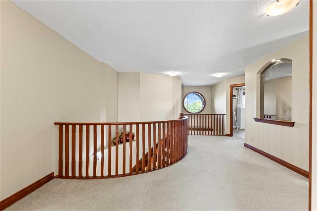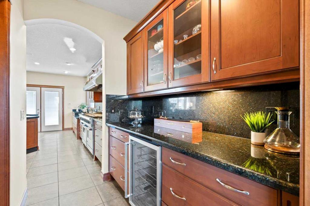 At the heart of the home is a true CHEF'S KITCHEN featuring two VIKING RANGES — one dual-fuel oven and stove and one gas oven and stove, an upgraded 600 CFM HOOD FAN with interlocking and make-up air, STAINLESS STEEL APPLIANCES, GRANITE COUNTERTOPS, an oversized island, abundant REFRESHED CHERRY WOOD CABINETRY, BUTLERS KITCHEN with beverage fridge, and a LARGE WALK-IN PANTRY with a deep freezer. The enormous FORMAL DINING ROOM offers the perfect setting for holiday gatherings and celebrations, while refined architectural details, including SWEEPING CURVED STAIRCASES throughout the main level. The main floor is finished in hardwood and tile, GUEST BEDROOM WITH ENSUITE, and a huge mudroom with a tiled DOG WASH STATION keeps life organized and effortless. UPSTAIRS are 4 SPACIOUS BEDROOMS and convenient laundry room with sink. The PRIMARY BEDROOM features two walk-in closets, 5 piece ensuite and it's own PRIVATE BALCONY.