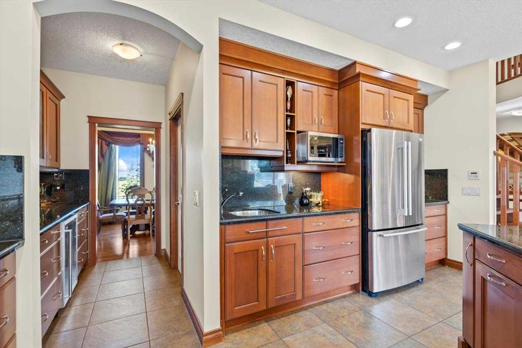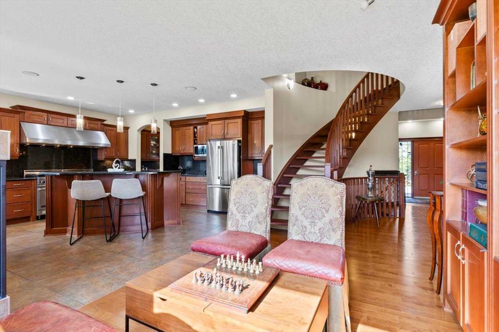 DON'T MISS THIS CUSTOM 6 BEDROOM, 5 BATHROOM ESTATE HOME SITUATED on a 1.98 ACRE LOT. This EXCEPTIONAL PROPERTY LOCATED IN SPRINGBANK offers generous separation from neighboring homes, blending country-scale space with city convenience. The home is thoughtfully appointed with premium conveniences including a water softener, two dishwashers (kitchen and bar), two refrigerators (kitchen and bar), deep freezer in the pantry, and a Weber Genesis natural gas BBQ, perfectly suited for entertaining and extended family living. At the heart of the home is a true CHEF'S KITCHEN featuring two VIKING RANGES — one dual-fuel oven and stove and one gas oven and stove plus STAINLESS STEEL APPLIANCES, an upgraded 600 CFM HOOD FAN with interlocking and make-up air, GRANITE COUNTERTOPS, an oversized island, abundant cabinetry, and a LARGE WALK-IN PANTRY with a deep freezer. The enormous FORMAL DINING ROOM offers the perfect setting for holiday gatherings and celebrations, while refined architectural details, including SWEEPING CURVED STAIRCASES add elegance to the home. The main floor is finished in hardwood and tile, GUEST BEDROOM WITH ENSUITE, and a HUGE MUDROOM with a tiled DOG WASH STATION keeps life organized and effortless. UPSTAIRS are 4 SPACIOUS BEDROOMS and convenient laundry room with sink. The PRIMARY BEDROOM features a huge walk-in closet, 5 piece ensuite and it's own PRIVATE BALCONY. Recent high-end mechanical upgrades include two Goodman GRVT 97.5% high-efficiency, two-stage variable-speed furnaces, two Legacy TJ-560 WiFi smart thermostats, and two General GF3200 flow-through humidifiers (approx. $16,000 investment), delivering superior comfort and energy efficiency. A new hot water tank adds further confidence. Step outside to a LARGE UPPER DECK and a COVERED LOWER PATIO that open to your private, park-like yard, enhancing indoor-outdoor living and entertaining throughout the seasons. The FULLY DEVELOPED WALKOUT level is an entertainer’s dream, featuring an EXPANSIVE RECREATION ROOM and a FULL BAR complete with a draft beer fridge and tap, plus a second dishwasher and refrigerator. A generous office or flex room, a SIXTH BEDROOM, and an impressive SIX PIECE BATHROOM complete this level, ensuring plenty of space for work, guests, and family. The IRRIGATED GROUNDS are designed for elevated outdoor living, featuring a TENNIS / BASKETBALL COURT, dedicated PLAYGROUND, cedar play structure with slide, swings, tower and monkey bars, trampoline, and a large storage shed—ideal for both recreation and functionality. NEARBY SCHOOL BUS STOP serving all three area schools. An EXCEPTIONAL PROPERTY offering privacy, scale, and premium upgrades rarely found together. BOOK YOUR SHOWING TODAY.