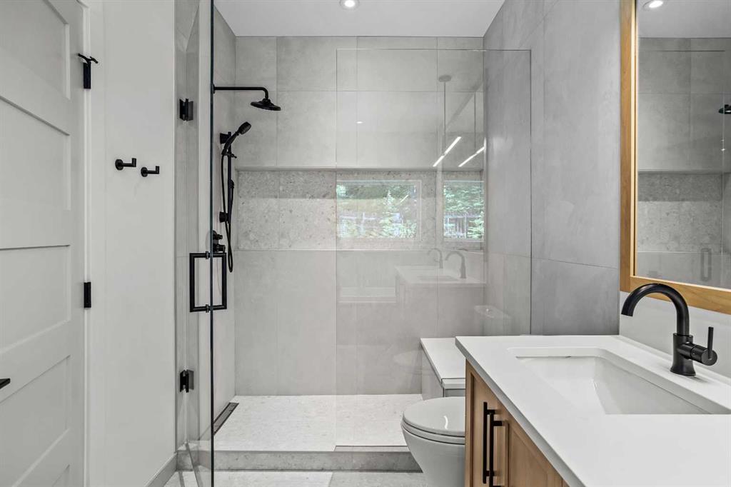 Brand New Luxury Half Duplex – Over 2,800 Sq Ft | Backing Onto Greenspace | Steps to Nordic Centre. This stunning new half duplex offers over 2,800 square feet of refined mountain living, perfectly positioned on a quiet street just a 5-minute walk to downtown Canmore and steps from the world-renowned Nordic Centre. Designed with attention to detail throughout, the main level features vaulted wood ceilings, an open-concept living area, and a spacious primary suite with a spa-like 5-piece en-suite. Two large decks provide breathtaking mountain views, ideal for relaxing or entertaining. The walk-out lower level is built for gathering, with a generous family room, gas fireplace, and custom wet bar, opening to a private covered patio that backs directly onto peaceful greenspace. Upstairs, you’ll find two more spacious bedrooms, each with their own en-suites featuring oversized tiled showers. This home delivers high-end comfort in a serene, adventure-ready location with direct access to hiking, biking, and cross-country ski trails right out your door.