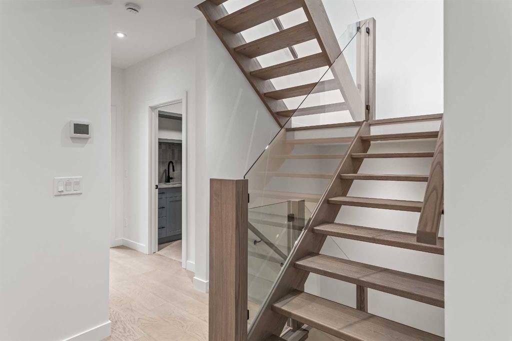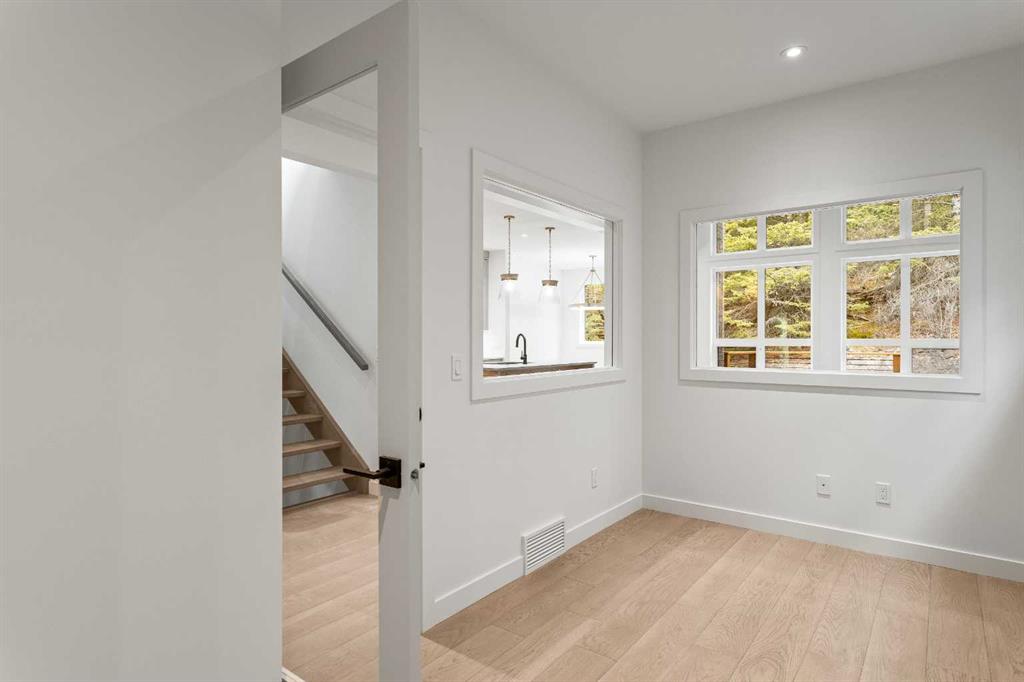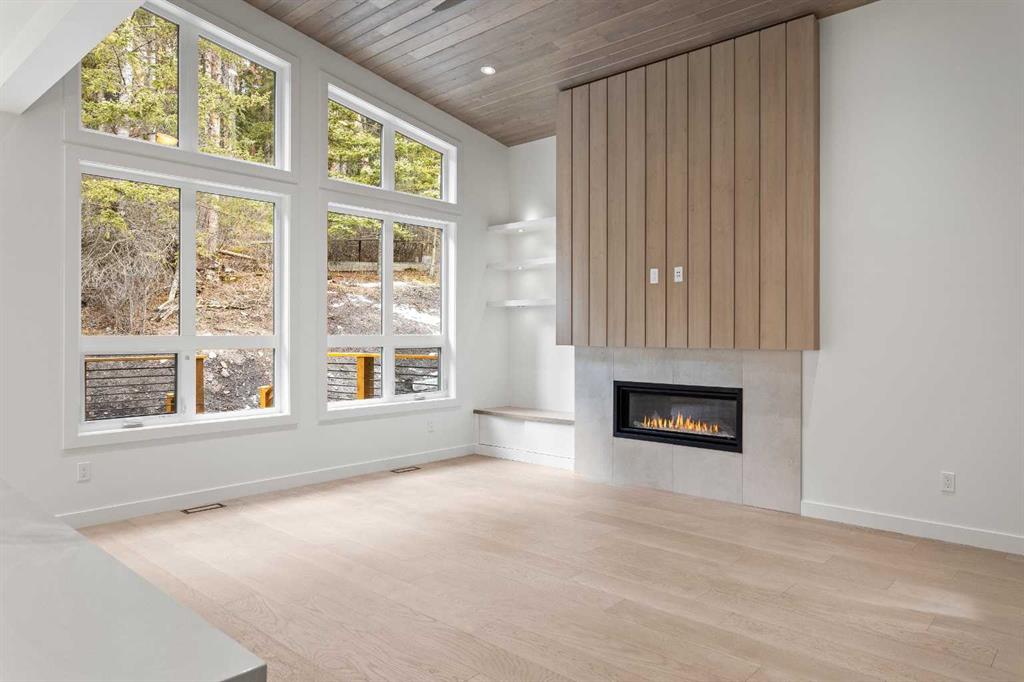 This BRAND NEW, 2700sf 4 bedroom PLUS A DEN duplex effortlessly combines elegance, practicality, and the beauty of nature! The gourmet kitchen, with custom cabinetry, Fulgor Milano appliances, and sprawling quartz countertops is a dream for any chef. While the lower-level rec room & built-in storage solutions ensure entertaining & everyday living are stylish & convenient. Gorgeous hardwood floors & a vaulted wood ceiling add warmth & charm, framing the serene privacy in the treed backyard with no neighbors. PLUS enjoy 3 additional outdoor living spaces included a covered rear porch, 3rd floor view deck, and private balcony off the primary bedroom. Situated on a quiet street just minutes from downtown Canmore, this home offers unparalleled access to outdoor adventures like the Canmore Nordic Center and Bow River trails, all while providing a serene space to unwind and enjoy the surrounding tranquility. Don’t miss the chance to make this extraordinary lifestyle your own!