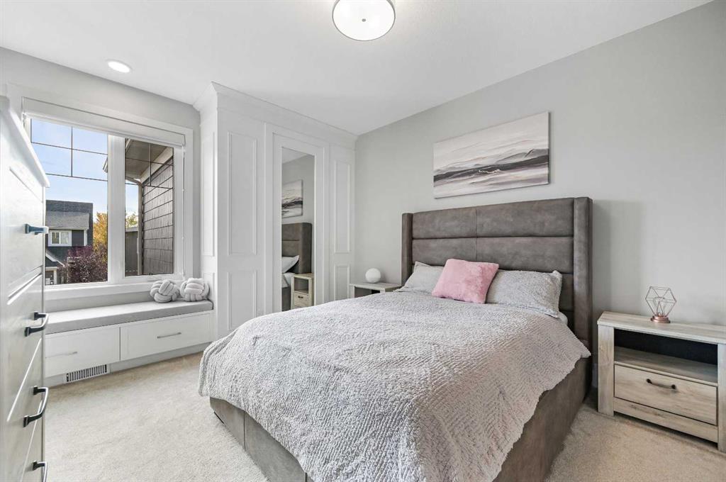 Welcome to this exceptional estate home crafted by Lupi Homes, ideally located in the highly sought-after community of Rock Lake Estates. Enveloped by mature trees, this residence offers over 4,000 sq ft of refined living space, where timeless design meets peaceful, nature-filled views and the quiet charm of the nearby lake. Step inside to soaring 9-foot ceilings, expansive windows, and timeless finishes. The main floor unfolds with a bright living room, framed by large picture windows that showcase serene views of the surrounding trees and glimpses of the lake beyond, flowing seamlessly into a spacious dining area ideal for entertaining. The chef’s kitchen impresses granite countertops, a massive central island, and premium appliances—including a built-in KitchenAid induction cooktop, built-in stainless steel hood fan, double wall ovens and microwave, Samsung smart refrigerator and a Frigidaire Gallery upright freezer. Thoughtful storage includes a walk-in and prep pantry, both with custom shelving and a built-in spice rack. Completing the main level are a private office, a 2-piece bath, and a well-designed mudroom with built-in bench and cabinetry. Upstairs, a welcoming family room and bonus area provide space to unwind. The primary suite offers a luxurious retreat with a spa-inspired 5-piece ensuite featuring heated floors, quartz counters, and a curbless tiled shower. Two additional bedrooms each include built-in benches and share access to a charming “secret room” hidden between them— perfect for play, additional bedroom, or nanny space. Both bedrooms have their own ensuite, with one offering dual access from the bedroom and main living area for added convenience. The fully developed lower level continues the elegant feel, offering a spacious recreation area with built-in wet bar and Marvel bar fridge, an exercise room, a fourth bedroom, a 3-piece bath, and abundant storage. A separate entrance leads to the private covered patio and west-facing backyard—an ideal setting for relaxing evenings surrounded by mature trees and natural scenery. Throughout the home, custom built-ins add both beauty and practicality—from vanities and closets to shelving and pantry organization. The garage is roughed for heat and plumbing for a future dog wash, with epoxy flooring for a polished finish. Additional highlights include two furnaces (one with a new motor), Ecobee smart thermostats, a roughed-in speaker and central vacuum system, and a modern security setup. Nestled within Rock Lake Estates in Rocky Ridge, this home offers a perfect balance of natural beauty and urban convenience. Everyday essentials, cafés, and restaurants are just five minutes away at Royal Oak Centre. Families will value the proximity to highly rated schools, including William D. Pratt and Royal Oak School, both under ten minutes from the home. For recreation, the YMCA is only a short drive, featuring a full aquatic centre, fitness facilities, and year-round programs.