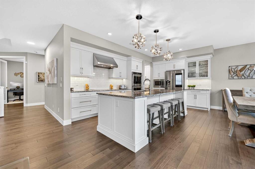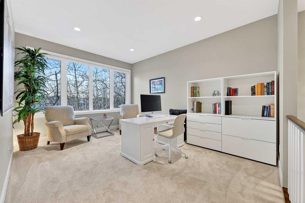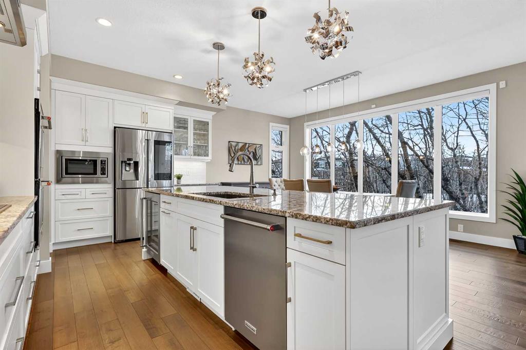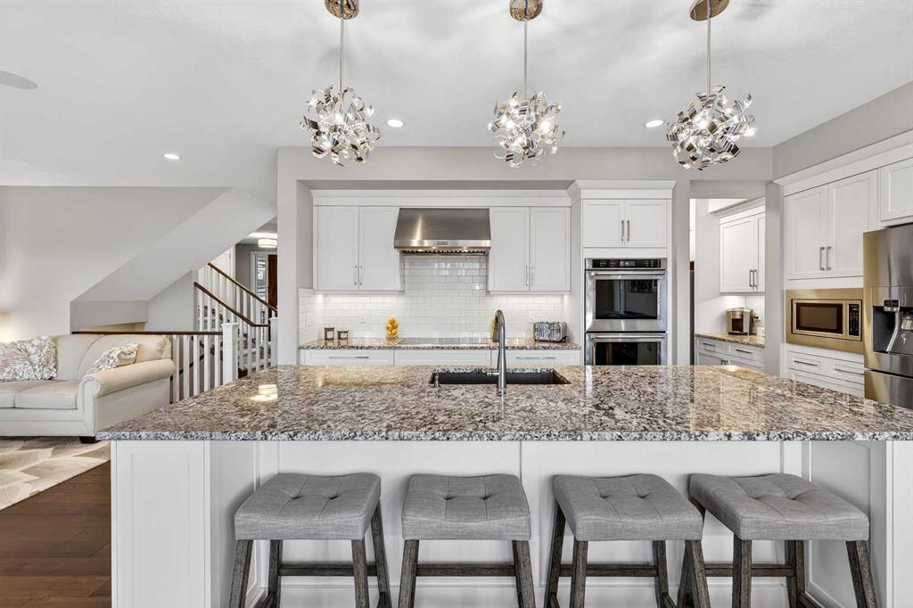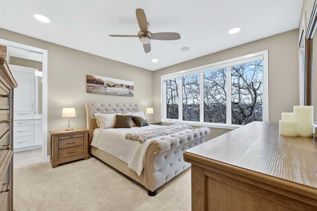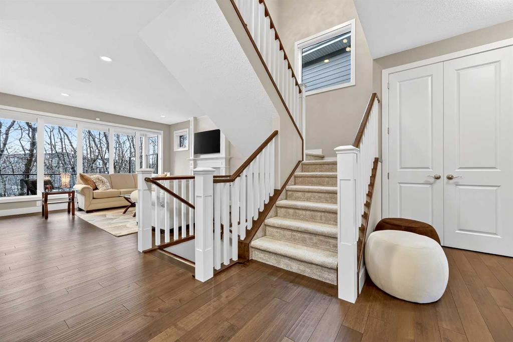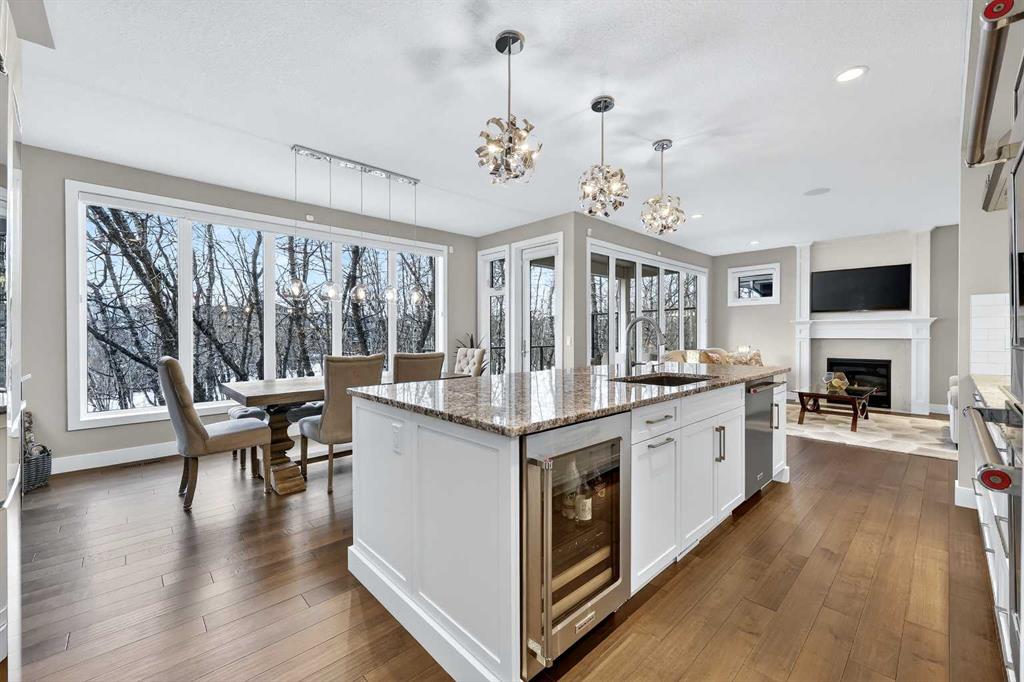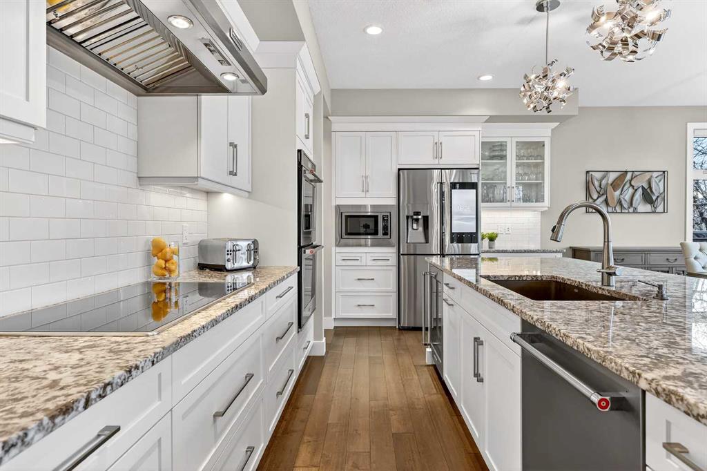 Welcome to this exceptional estate home crafted by Lupi Homes, ideally located in the highly sought-after community of Rock Lake Estates. Enveloped by mature trees, this residence offers over 4,000 sq ft of refined living space, where timeless design meets peaceful, nature-filled views and the quiet charm of the nearby lake. Step inside to soaring 9-foot ceilings, expansive windows, and timeless finishes. The main floor unfolds with a bright living room, framed by large picture windows that showcase serene views of the surrounding trees and glimpses of the lake beyond, flowing seamlessly into a spacious dining area ideal for entertaining. The chef’s kitchen impresses granite countertops, a massive central island, and premium appliances—including a built-in KitchenAid induction cooktop, built-in stainless steel hood fan, double wall ovens and microwave, Samsung smart refrigerator and a Frigidaire Gallery upright freezer. Thoughtful storage includes a walk-in and prep pantry, both with custom shelving and a built-in spice rack. Completing the main level are a private office, a 2-piece bath, and a well-designed mudroom with built-in bench and cabinetry. Upstairs, a welcoming family room and bonus area provide space to unwind. The primary suite offers a luxurious retreat with a spa-inspired 5-piece ensuite featuring heated floors, quartz counters, and a curbless tiled shower. Two additional bedrooms each include built-in benches and share access to a charming “secret room” hidden between them— perfect for play, additional bedroom, or nanny space. Both bedrooms have their own ensuite, with one offering dual access from the bedroom and main living area for added convenience. The fully developed lower level continues the elegant feel, offering a spacious recreation area with built-in wet bar and Marvel bar fridge, an exercise room, a fourth bedroom, a 3-piece bath, and abundant storage. A separate entrance leads to the private covered patio and west-facing backyard—an ideal setting for relaxing evenings surrounded by mature trees and natural scenery. Throughout the home, custom built-ins add both beauty and practicality—from vanities and closets to shelving and pantry organization. The garage is roughed for heat and plumbing for a future dog wash, with epoxy flooring for a polished finish. Additional highlights include two furnaces (one with a new motor), Ecobee smart thermostats, a roughed-in speaker and central vacuum system, and a modern security setup. Nestled within Rock Lake Estates in Rocky Ridge, this home offers a perfect balance of natural beauty and urban convenience. Everyday essentials, cafés, and restaurants are just five minutes away at Royal Oak Centre. Families will value the proximity to highly rated schools, including William D. Pratt and Royal Oak School, both under ten minutes from the home. For recreation, the YMCA is only a short drive, featuring a full aquatic centre, fitness facilities, and year-round programs.