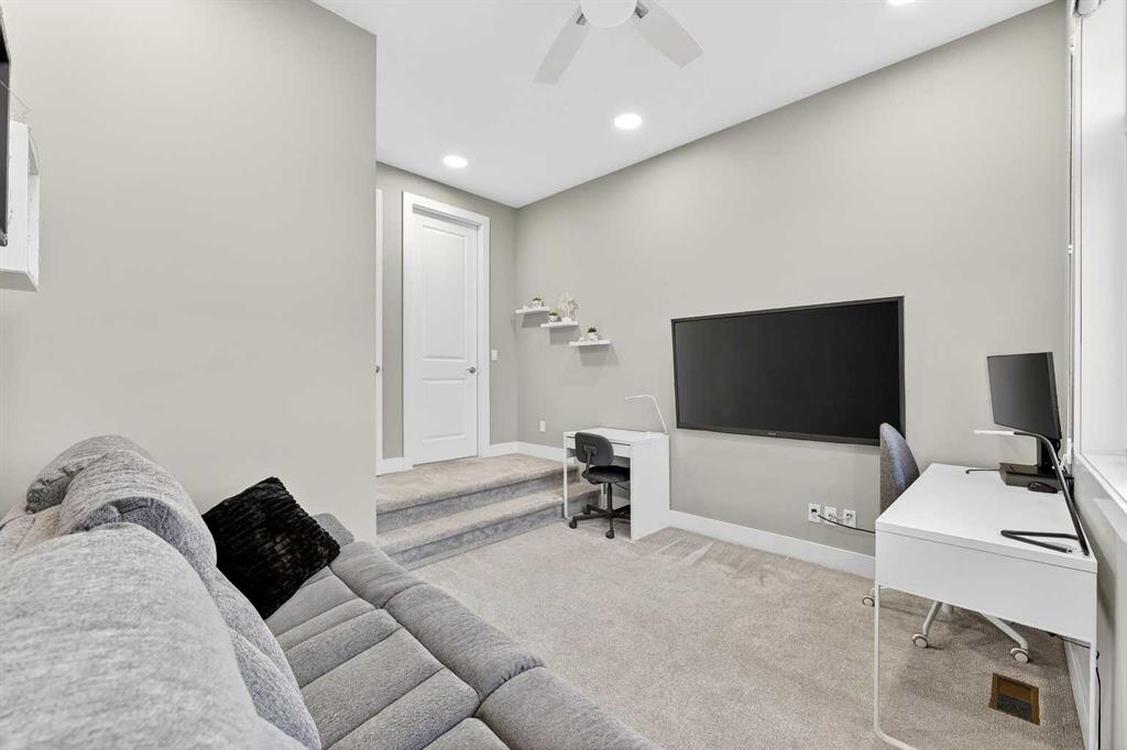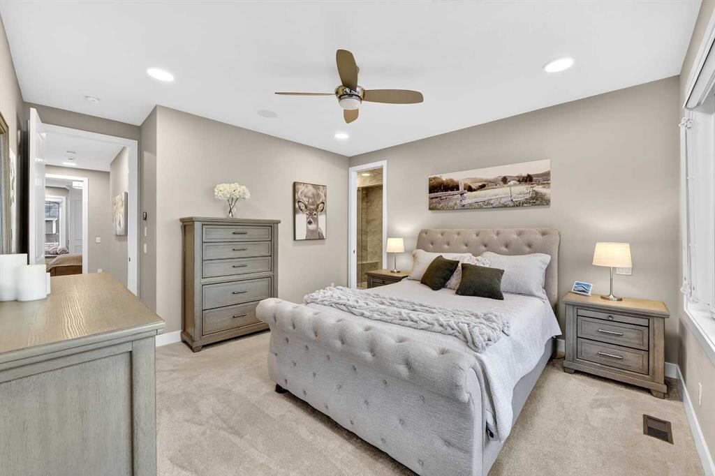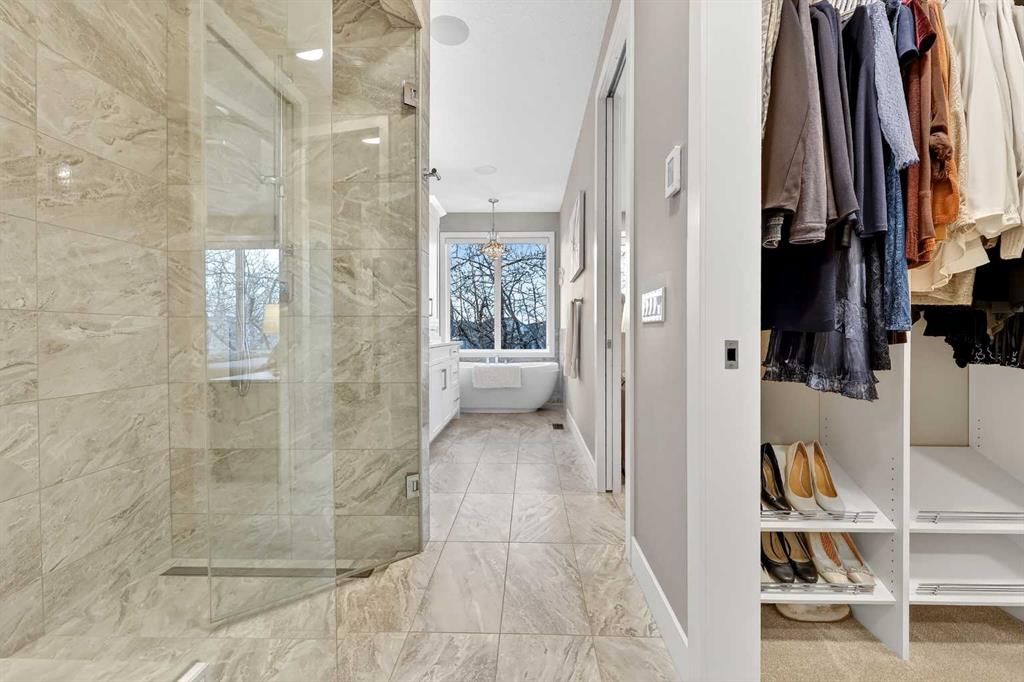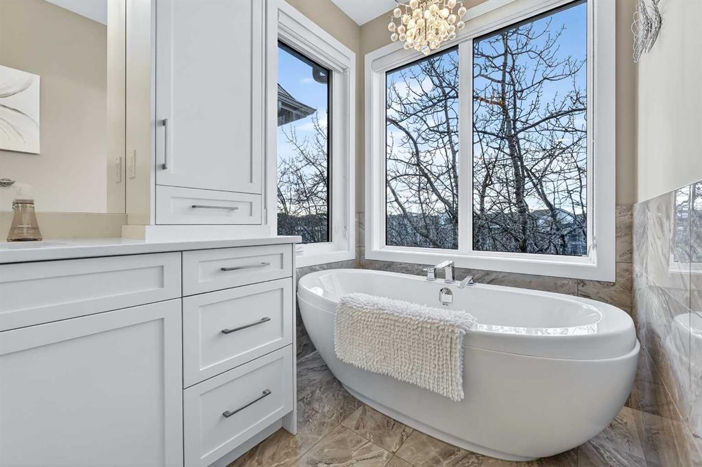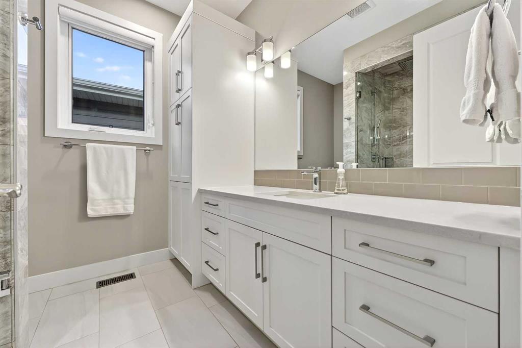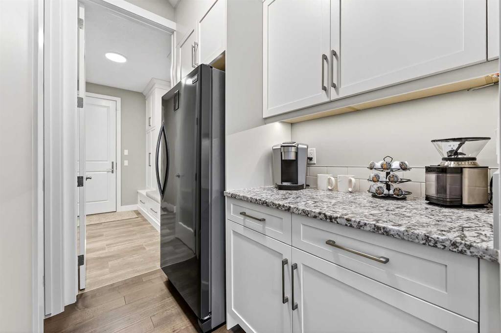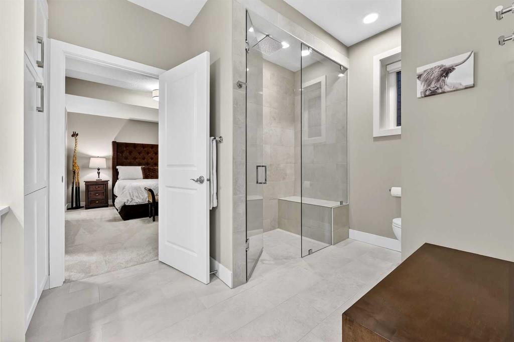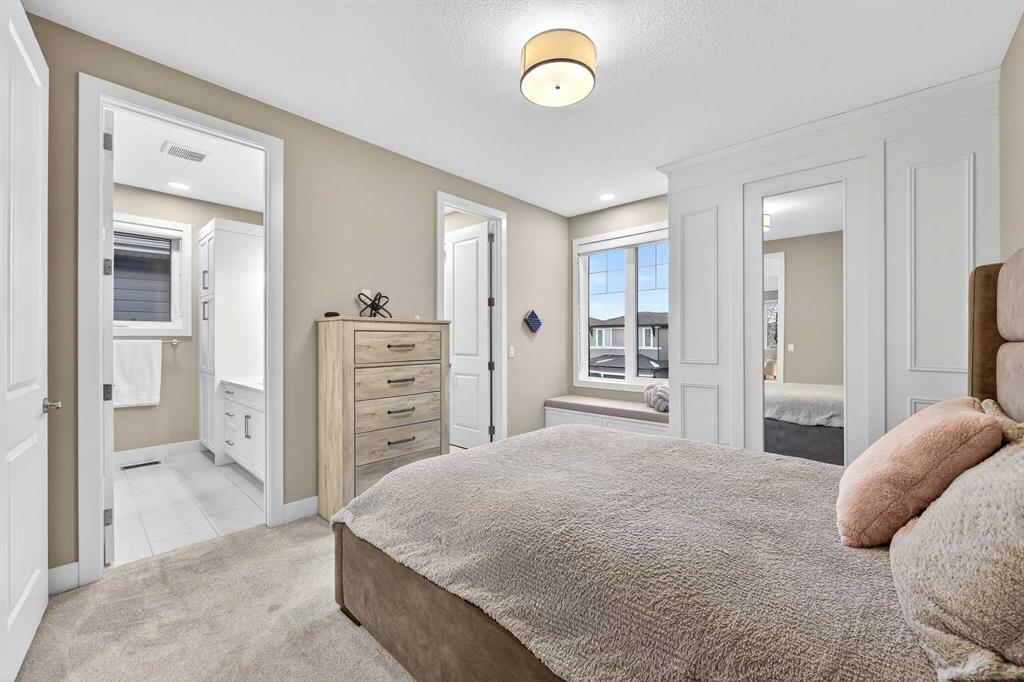Welcome to this exceptional estate home crafted by Lupi Homes, ideally located in the highly sought-after community of Rock Lake Estates. Enveloped by mature trees, this residence offers over 4,000 sq ft of refined living space, where timeless design meets peaceful, nature-filled views and the quiet charm of the nearby lake. Step inside to soaring 9-foot ceilings, expansive windows, and timeless finishes. The main floor unfolds with a bright living room, framed by large picture windows that showcase serene views of the surrounding trees and glimpses of the lake beyond, flowing seamlessly into a spacious dining area ideal for entertaining. The chef’s kitchen impresses granite countertops, a massive central island, and premium appliances—including a built-in KitchenAid induction cooktop, built-in stainless steel hood fan, double wall ovens and microwave, Samsung smart refrigerator and a Frigidaire Gallery upright freezer. Thoughtful storage includes a walk-in and prep pantry, both with custom shelving and a built-in spice rack. Completing the main level are a private office, a 2-piece bath, and a well-designed mudroom with built-in bench and cabinetry. Upstairs, a welcoming family room and bonus area provide space to unwind. The primary suite offers a luxurious retreat with a spa-inspired 5-piece ensuite featuring heated floors, quartz counters, and a curbless tiled shower. Two additional bedrooms each include built-in benches and share access to a charming “secret room” hidden between them— perfect for play, additional bedroom, or nanny space. Both bedrooms have their own ensuite, with one offering dual access from the bedroom and main living area for added convenience. The fully developed lower level continues the elegant feel, offering a spacious recreation area with built-in wet bar and Marvel bar fridge, an exercise room, a fourth bedroom, a 3-piece bath, and abundant storage. A separate entrance leads to the private covered patio and west-facing backyard—an ideal setting for relaxing evenings surrounded by mature trees and natural scenery. Throughout the home, custom built-ins add both beauty and practicality—from vanities and closets to shelving and pantry organization. The garage is roughed for heat and plumbing for a future dog wash, with epoxy flooring for a polished finish. Additional highlights include two furnaces (one with a new motor), Ecobee smart thermostats, a roughed-in speaker and central vacuum system, and a modern security setup. Nestled within Rock Lake Estates in Rocky Ridge, this home offers a perfect balance of natural beauty and urban convenience. Everyday essentials, cafés, and restaurants are just five minutes away at Royal Oak Centre. Families will value the proximity to highly rated schools, including William D. Pratt and Royal Oak School, both under ten minutes from the home. For recreation, the YMCA is only a short drive, featuring a full aquatic centre, fitness facilities, and year-round programs.