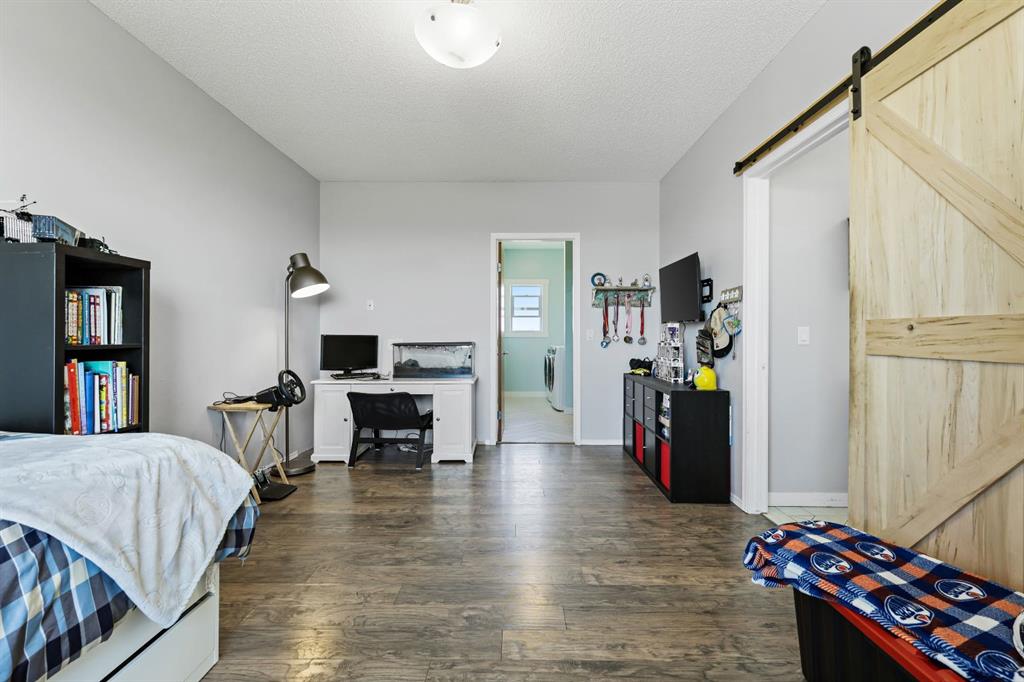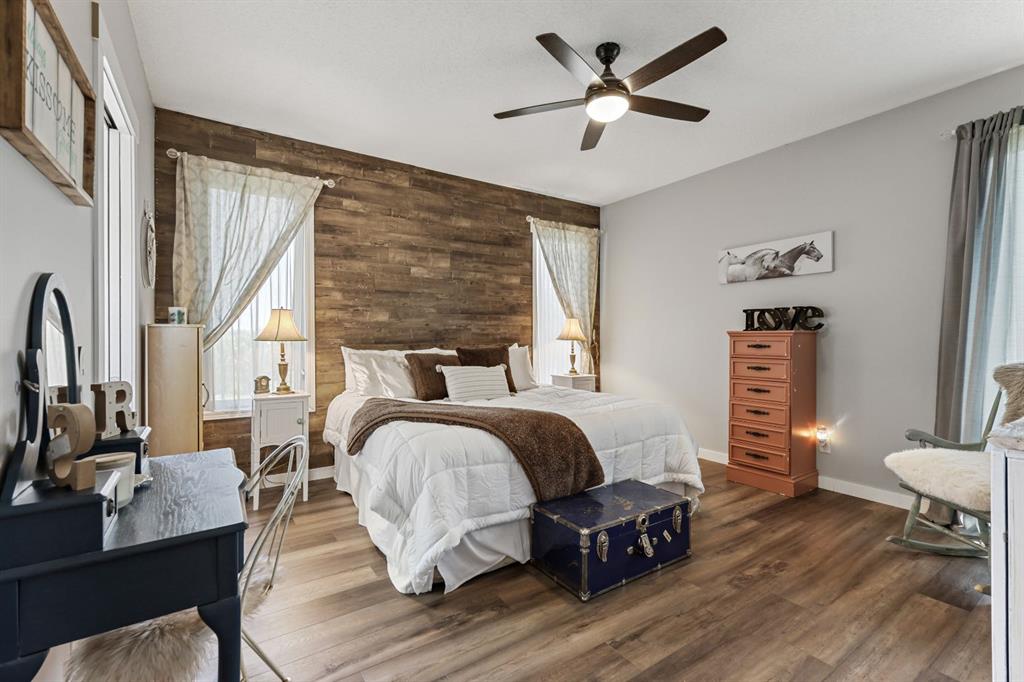 The main residence features a spacious primary bedroom filled with natural light from its south- and east-facing windows. The elegant ensuite includes a walk-in shower, soaker tub, and dual sinks, while the walk-in closet is equipped with built-in shelving and access to a massive 2,000 sq.ft. poured concrete crawl space—perfect for all your storage needs. Two additional bedrooms and a four-piece bathroom are located in the main wing. The open-concept living and dining room is centered around a stunning floor-to-ceiling, double-sided stone fireplace. With vaulted ceilings and a wood-burning insert with gas start, it adds warmth and charm to the space while creating a seamless flow between living and dining areas. The kitchen is bright and welcoming with plenty of cabinetry, a large walk-in pantry, Brazilian granite countertops, DuraCeramic tile flooring, and a breakfast bar. East-facing windows and patio doors lead to a cozy outdoor seating area—perfect for morning coffee, evening BBQs, or relaxed entertaining. Heading down the hallway to the in-law suite, you’ll pass a convenient three-piece bathroom and a den—perfect for a home office or quiet reading nook. The shared laundry room is both functional and stylish, offering a window for natural light, a utility sink, countertop for folding, and beautiful cabinetry for extra storage. The in-law suite was thoughtfully laid out with comfort in mind. The kitchen features a modern-country style with an apron sink overlooking a charming window, a gas stove for the home chef, and an island for additional prep space or casual dining. The open-concept living room is cozy and inviting, and a west-facing window captures breathtaking sunsets. The large bedroom offers a peaceful place to unwind at the end of the day, while the three-piece bathroom includes a walk-in shower, built-in shelving, and a mirrored cabinet for extra storage. Recent upgrades include new shingles and updated front siding, giving the home great curb appeal and long-term value. Outside, a 31'4 x 26'0 barn—including a separate storage room—offers versatile options for a workshop or animal shelter. A tranquil pond is fed by the adjacent canal, and the property is accented with mature deciduous trees and shrubs for added beauty and privacy. For evening enjoyment, gather around the cozy firepit area under the stars—perfect for roasting marshmallows and making lasting memories. This sought-after acreage combines space, privacy, and quick access to city amenities. Whether you're looking to escape the hustle of urban life or find a perfect place for your family to grow, this property is truly one of a kind.