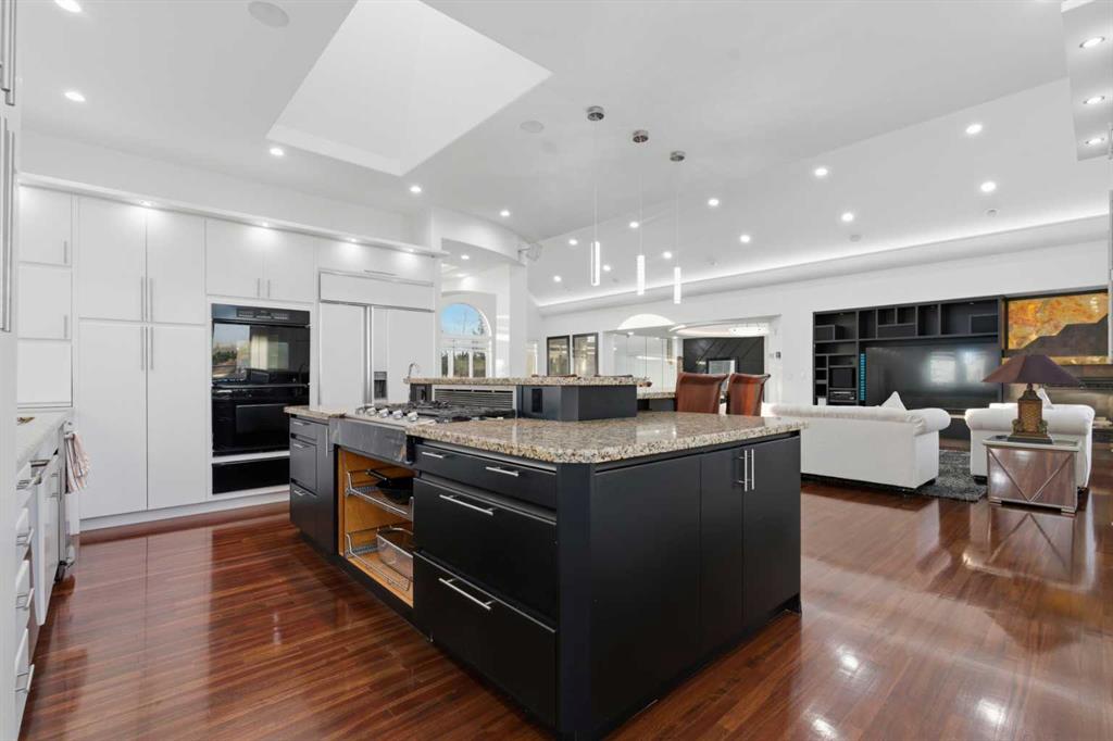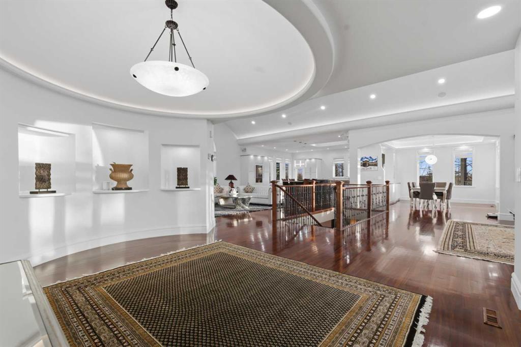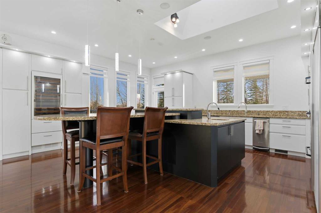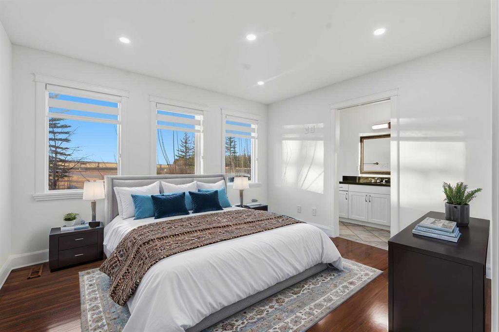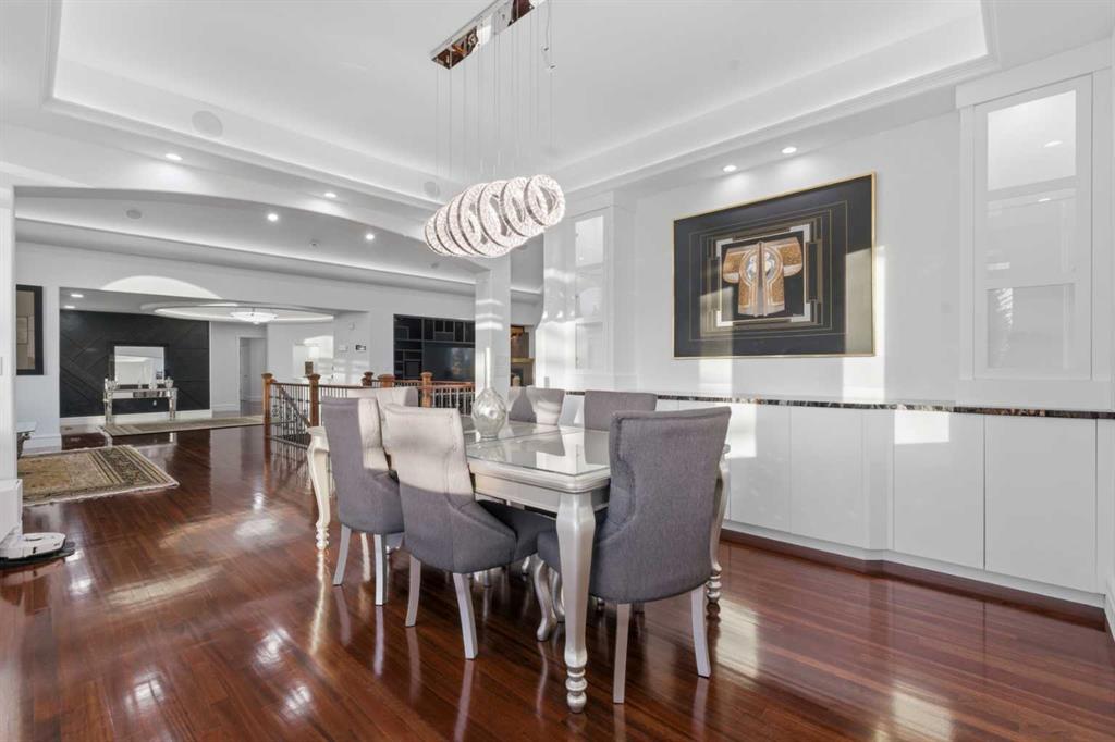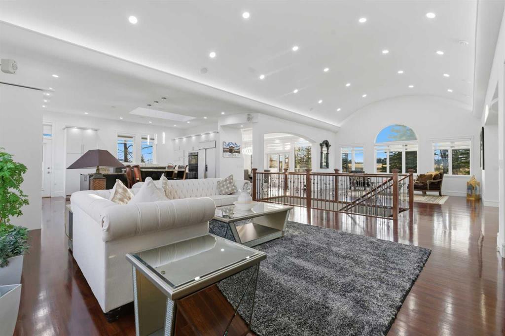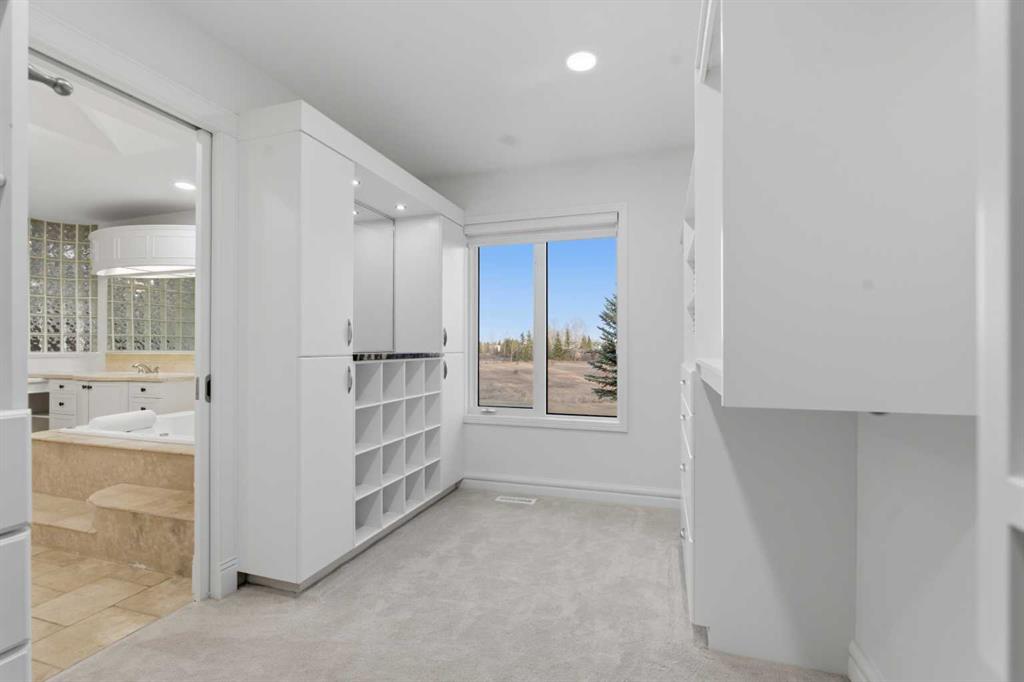 3.62 ACRES | 7 BED & 8 BATHS | OVER 7000 SQFT OF LIVING SPACE | WALKOUT BASEMENT | HEATED QUAD GARAGE + TANDEM 2 CAR GARAGE | ABOVE-GARAGE AREA EASILY SUITABLE WITH COUNTY APPROVAL | Unparalleled luxury defines this Springbank estate set on 3.62 acres, blending timeless elegance with modern comfort in a prestigious location minutes from Calgary. Central A/C, exceptional views & exquisite craftsmanship establish a refined living experience from the start. A sophisticated entry introduces a grand open floor plan with 14’ cove-vaulted ceilings & site-finished Brazilian cherry hardwood that amplifies natural light. Oversized windows in the living room frame serene country scenery, while the dining room provides an elevated backdrop for hosting with designer lighting & corner windows capturing sweeping views. A welcoming family room centres around a gas fireplace & custom media unit to create a warm everyday gathering space. The chef’s kitchen supports large-scale cooking with high-end appliances, custom cabinetry, a spacious island & a built-in table for casual meals. A powder room is conveniently placed for guests. The primary bedroom is a private retreat with a spa-inspired ensuite featuring a deep soaker tub, oversized shower, dual vanities & a massive custom walk-in closet. A second bedroom with its own 3-piece ensuite plus 1 of 3 laundry rooms complete this level. The upper floor includes a bright 4-piece bathroom with skylight, a bedroom with a 3-piece ensuite & walk-in closet, along with 2 additional bedrooms, offering excellent flexibility for families or multigenerational living. Stylish design continues through the bright walkout basement where an entire wall of glass connects indoor living with the outdoors. A generous family room with built-in media center is ideal for movie or games nights, while a wet bar keeps refreshments close at hand. A Cigar room with proper ventilation. A recreation area cab accommodate a pool table or play space. A third laundry room & powder room add everyday convenience. 2 bedrooms sit on opposite sides of a spacious bonus zone to form a natural hangout area, with 1 bedroom featuring a private 4-piece ensuite & walk-in closet. Another 3-piece bathroom, a dedicated gym & ample storage add valuable function. Outdoor living excels with a wraparound lower patio & an upper deck with glass railings that preserve the panoramic views. The property is zoned for 2 horses & allows up to 2040 sqft of outbuildings, creating opportunities for equestrian use, a hobby farm or future development. A heated quadruple garage sits alongside a tandem 2 car garage offering extensive room for vehicles, equipment or workshop needs. Above-garage space is easily suitable with county approval, elevating long-term versatility. This estate delivers luxury, privacy & convenience in one of Springbank’s most sought-after settings mere minutes to the city!