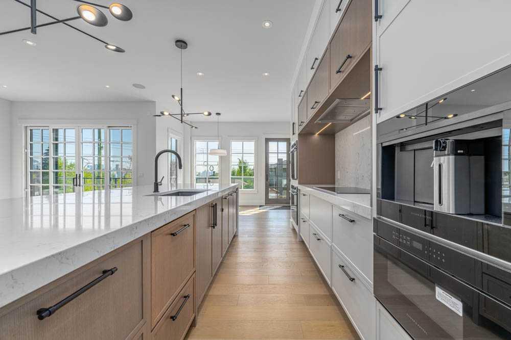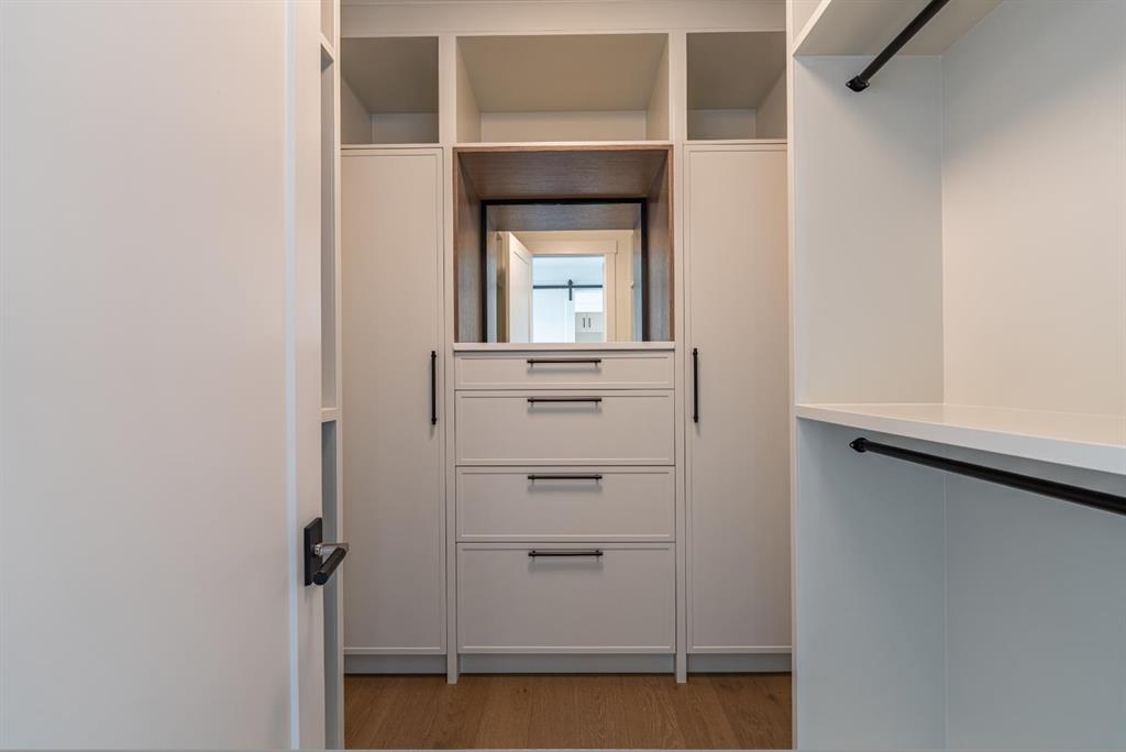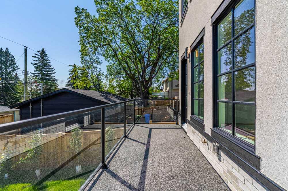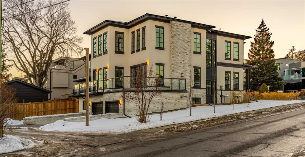 Exquisite Modern Corner Home with Panoramic Downtown Views. This striking luxury contemporary corner home, is perfectly positioned in one of Calgary’s most sought after inner city neighbourhoods. From the moment you arrive, the home’s bold architecture, oversized windows, and meticulously landscaped, low maintenance yard with automatic irrigation, make a lasting impression. Step inside to soaring ceilings and sun drenched spaces that immediately evoke a sense of openness. The formal dining area, surrounded by windows, is ideal for entertaining, while a discreet powder room and custom wine storage add subtle touches of luxury. At the heart of the home, the chef’s kitchen impresses with premium Fisher & Paykel appliances, elegant quartz countertops, statement tile, and a butler’s pantry to keep everything organized. The oversized island is perfect for cooking, gathering, or casual dining, and the cozy breakfast nook opens onto a private terrace, seamlessly connecting indoor and outdoor living. The family room is anchored by a dramatic floor to ceiling stone fireplace and provides direct access to the terrace with sweeping downtown views, perfect for relaxing evenings or weekend entertaining. A striking glass enclosed staircase adds architectural drama while allowing natural light to flow throughout the home. Upstairs, the luxurious primary suite serves as a private retreat. It features dual custom closets, a built-in vanity, and a spa inspired ensuite with heated floors, a deep soaker tub with downtown views, double sinks, a rainfall steam shower, and high-end finishes. Two additional bedrooms offer flexible space for children, guests, or home offices, with a full bathroom that also includes in-floor heating and ample storage. The upstairs laundry room, equipped with high-end washer and dryer and abundant cabinetry, makes daily tasks effortless. The fully developed lower level expands your living space with a spacious recreation room, custom wet bar with wine fridge and integrated dishwasher, perfect for entertaining. Radiant in-floor heat ensures comfort year round. A fourth bedroom and full bathroom provide additional space for guests or teens, while an oversized mudroom with smart storage connects directly to the heated double garage. Additional features include central AC, integrated lighting, and high-end Hunter Douglas remote operated blinds throughout, fully programmable via app for complete convenience and privacy control. This home blends luxury, style, and practical functionality, with a location that puts the best of Calgary’s inner city right at your doorstep. Don’t miss this rare opportunity to own a home that elevates both everyday living and entertaining. Please see 3D tour and video.