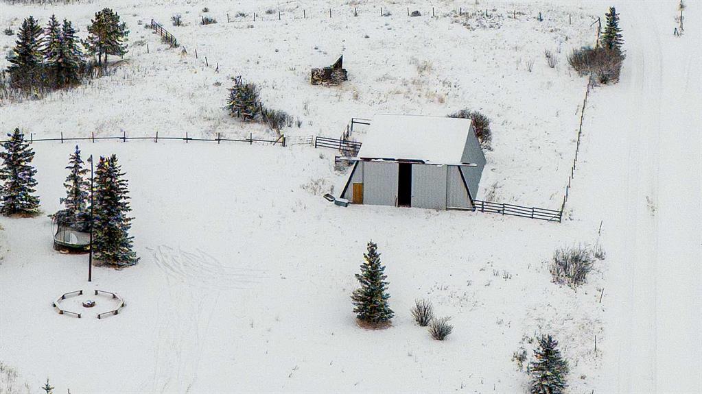 Rare opportunity in sought-after North Springbank! Nearly 4 acres perched on a picturesque knoll with 360° mountain, valley, and city views. This peaceful, private acreage offers gently rolling, fenced land—ideal for families, hobbyists, anyone seeking space, or the perfect lot to build your dream home—all just minutes from the upcoming Bingham Crossing Mall, new Costco, top schools, Springbank Airport, and Springbank Links Golf Course. This reversed walkout, lofted hillside bungalow features a bright open layout, a sunken living room with brick fireplace, formal dining room, spacious kitchen with island, large family room with second fireplace, and 3 bedrooms on the main level. A unique upper office loft accessed by a circular staircase adds extra versatility. Enjoy the massive partially covered west-facing deck plus an additional east deck and balcony. A 3-car heated attached garage with covered carports provides ample parking, along with room for RVs and equipment. The 40’x47’ metal Quonset, offers excellent workshop, storage, or hobby use. This is a prime Springbank location offering quiet country living with outstanding convenience and exceptional long-term potential.
