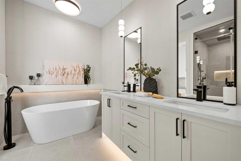 LEGAL SUITE ON MAIN • SINGLE ATTACHED GARAGE W/DRIVEWAY • 4 BEDROOM HOME — Experience luxurious inner-city living in Bankview with this newly custom-built (2025), three-story detached home that seamlessly blends architectural sophistication, quality craftsmanship, and modern comfort. Designed for open-concept living, this residence features designer oak hardwood flooring throughout, timeless white shaker cabinetry with under-cabinet lighting, and a stunning 12-foot dual waterfall quartz island that serves as the centerpiece of the kitchen—ideal for entertaining family and friends. Every detail has been thoughtfully curated, including LED-lit hardwood stairs, 9-foot ceilings, a pot filler in the kitchen, an in-wall oven, a 42” professional fridge, triple-pane windows, a 36" gas cooktop, vaulted ceilings on the third floor, a steam shower in the primary ensuite, and heated tile floors.