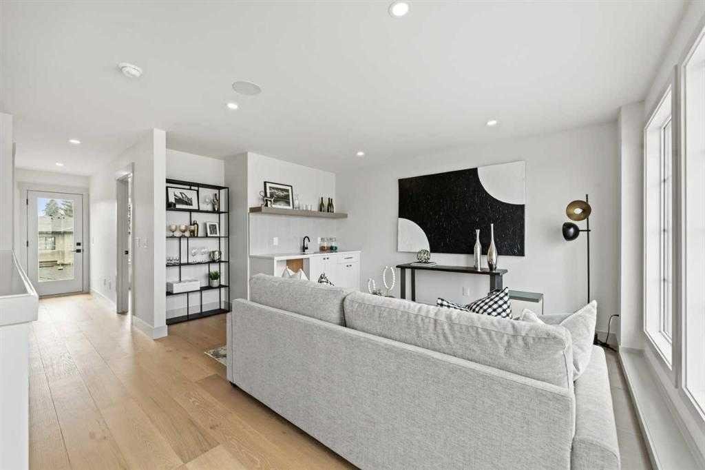 Set on a quiet cul-de-sac in WEST HILLHURST, this GORGEOUS NEW BUILD 3 STOREY DUPLEX delivers modern design, functional living and thoughtful detail in one of Calgary’s most established inner-city communities. A SOUTH BACKYARD enhances natural light and outdoor enjoyment. The main floor is designed for everyday ease and entertaining, with an open layout that flows naturally between the living room, dining area and kitchen. A FIREPLACE anchors the living space, creating warmth and visual interest, while HARDWOOD FLOORING provides durability and timeless appeal. The kitchen is thoughtfully planned with generous prep space, modern cabinetry and a layout that supports both daily routines and hosting. On the second level, well-proportioned bedrooms are complemented by a primary bedroom featuring a PRIVATE ENSUITE with a DOUBLE VANITY, offering comfort, functionality and a sense of retreat. The THIRD STOREY is a standout feature, offering a flexible retreat ideal for entertaining, working or hosting guests. This level includes a PRIVATE BEDROOM well suited for overnight visitors or a quiet HOME OFFICE, enhanced by separation from the main sleeping areas below. A WET BAR supports relaxed evenings and casual gatherings, while access to TWO DECKS with both NORTH AND SOUTH EXPOSURE allows for sunlight throughout the day, outdoor breaks between meetings or private lounging above the surrounding streetscape. The basement is developed to extend living space, offering flexibility for a media room, home gym or guest area, with finishes consistent with the quality found throughout the home. The EXTERIOR showcases a striking combination of BRICK and COMPOSIT ELEMENTS, delivering a modern aesthetic with lasting durability. LANDSCAPING is planned per the approved site design, with concrete walkways and defined outdoor spaces in place. Parking is accommodated by a DOUBLE DETACHED GARAGE accessed from the rear lane, providing secure, weather-protected parking and additional storage. WEST HILLHURST is prized for its walkability, mature tree-lined streets and strong community feel, with easy access to river pathways, parks, local shops and everyday amenities. Proximity to downtown, major routes and nearby neighbourhood favourites makes this location especially appealing for those seeking inner-city living without sacrificing comfort, privacy or connection to green space.