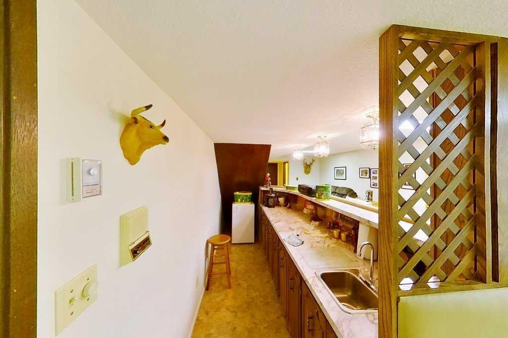 ?Proudly offered by the original owners, this rare and remarkable 2-acre private acreage in the prestigious Lake Ere Estates of Chestermere truly stands in a class of its own. This property offers the perfect blend of peaceful country living while being just minutes from Chestermere Lake, schools, shops, golf courses, and an easy commute into Calgary. From the moment you begin the drive up your secluded, paved driveway, the stunning mature landscaping, towering trees, and pristine attention to detail set the tone for what’s to come. The home’s iconic red-brick exterior, stately peaks, and beautifully designed front courtyard create jaw-dropping curb appeal. An oversized, heated double attached garage with upgraded exterior finishes ensures longevity and function. Step inside to discover an expansive, light-filled open-concept bungalow ideal for families of all sizes. The kitchen is the heart of the home, featuring extensive counterspace, ample cabinetry, and room to prepare meals with ingredients harvested from your very own garden. The dining area flows seamlessly into a warm and inviting living room, highlighted by custom curved architectural details and a floor-to-ceiling red-brick wood-burning fireplace, the perfect focal point for cozy evenings. Patio doors open to your private rear deck and outdoor oasis, where you can enjoy sunrise coffees, sunset dinners, and the peaceful tranquility only acreage living can offer. The main level continues with a dedicated office, a second family room, a formal dining room, a huge boot room, large laundry area, and a convenient half bath. The primary suite is truly a retreat—massive in size and offering a walk-in closet and a luxurious ensuite with an air-jet tub. Two additional bedrooms and a full bathroom complete the main floor layout. The fully developed basement provides exceptional additional living space, featuring an impressive recreation room, wet bar, home gym, two additional craft/den rooms, wine cellar storage, and ample storage throughout. Step outside and you’ll find multiple decks and patios, a fire pit area, horseshoe pit, garden beds, and beautiful open green space—perfect for family gatherings, summer evenings, and entertaining. The property is on city water (municipal co-op) and includes A/C, central vacuum, storage sheds (one powered), and impressive outbuildings including a 35’ x 23’ heated detached shop with 220 power & air compressor, plus a 45’ x 33’ Quonset for additional equipment, vehicles, or hobby needs. Upgrades include a newer septic system, newer shingles, and meticulous care throughout. This is more than a home—it’s a lifestyle. Enjoy unparalleled privacy, tranquility, and convenience, all within walking distance to Chestermere Lake and just minutes to every amenity. Homes like this rarely become available—PRIDE OF OWNERSHIP is evident from corner to corner. Book your private viewing today… this showstopper will not last!