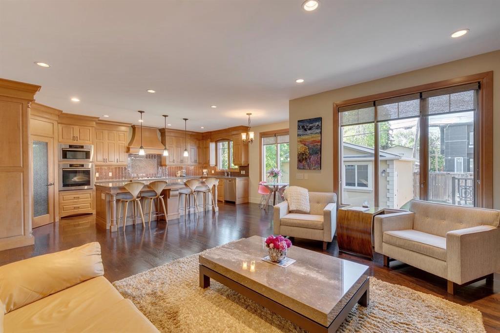 Canopy trees line this family friendly street in coveted West Hillhurst. Boasting over 4,460 sq.ft. of developed living space with fine European finishes, this stunning executive home showcases a gracious 24ft vaulted foyer, and oak hardwood floors. The low maintenance front yard offers underground sprinklers and lush easy to maintain perennials. A front porch is ideal to relax on and welcomes you as you make your way inside to a spacious foyer and large office separate from the main living areas for the utmost privacy. A spacious formal dining room is highlighted by coffered ceilings, while an inviting living room is anchored by custom built-ins and a gorgeous gas fireplace. Culinary enthusiasts will love the gourmet kitchen with solid maple custom cabinets, high-end appliances (Miele and Subzero), and walk-through pantry with access to a large mudroom. The extensive centre island features granite counters and ensures room for entertaining as everyone gathers around. A dramatic curved staircase leads up to a full bathroom and three generous bedrooms, all with walk-in closets. The tranquil primary presents downtown views from the sitting area and features a 2-way fireplace that leads to the lavish 6pc ensuite complete with in-floor heat, jetted soaker tub and separate shower. A convenient upstairs laundry room includes storage, sink, and wraps around to a gorgeous balcony that overlooks the front street. The fully developed lower embraces heated floors, an extensive rec room with custom media built-in and wet bar. Two generous bedrooms, one ideally functioning as a home gym, along with a full bath complete the level. Extend your outdoor living in the south exposed backyard. Dinners on the outside deck extend your space for entertaining or you can relax and unwind after a long day on the lower patio or practice your putts on the mini green. Located within steps to the Karl Baker off-leash dog park, Helicopter Park, the Bow River Pathways system, the Foothills Hospital, and mere minutes to great restaurants, trendy Kensington, and the Downtown Core. This real estate gem is a masterpiece of quality workmanship and ready for you to call "home."