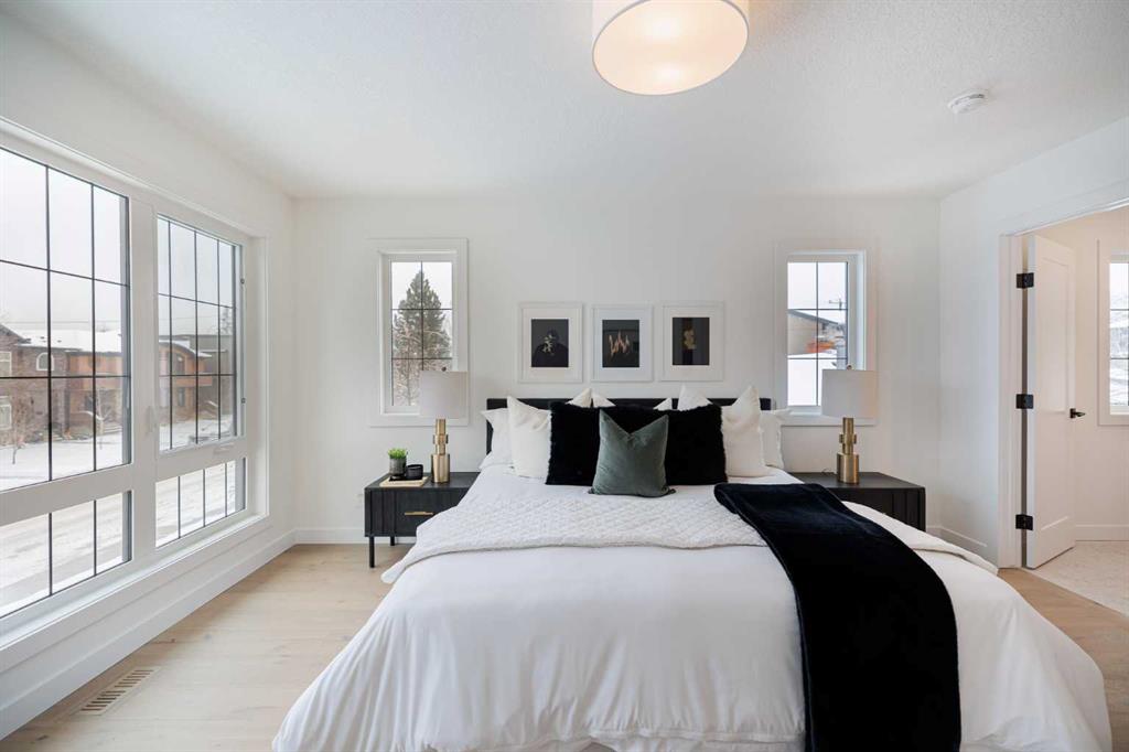 The main dwelling offers exceptional family comfort with five spacious bedrooms. The second floor presents a versatile layout, including a secondary primary bedroom with a 4-piece ensuite, ideal for extended family or guests, alongside two additional bedrooms perfect for home offices or quiet study. Ascend to the third-floor sanctuary: a luxurious primary suite complete with a spa-inspired ensuite and a private patio offering captivating downtown skyline views.