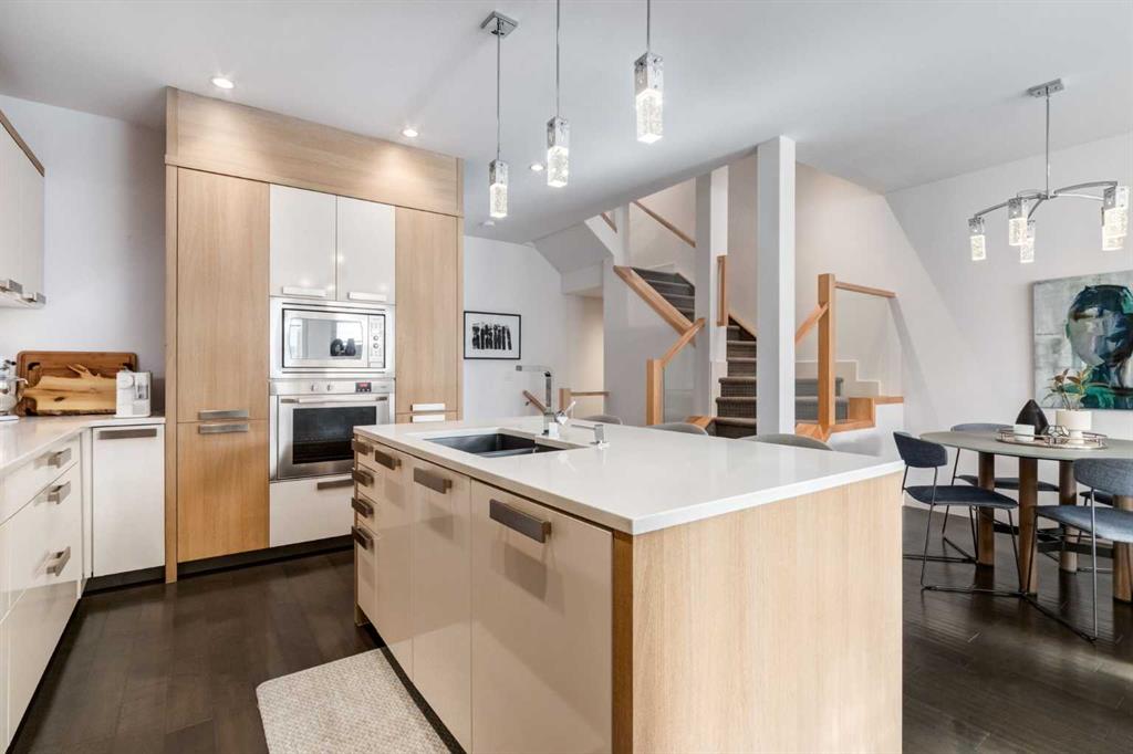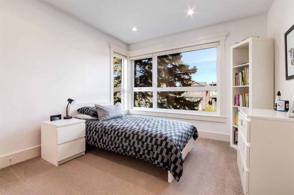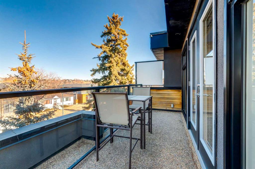 Modern living in the heart of West Hillhurst. Welcome to a home that blends refined design with effortless livability in one of Calgary’s most sought after inner-city neighborhoods. Perfectly positioned on a quiet street, this fully developed residence offers over 3,296 SF of thoughtfully curated space with 3+1 bedrooms and 5 bathrooms, designed for both everyday comfort and elevated entertaining. From the moment you step inside, the attention to detail is evident with rich hardwood and tile floors throughout the main floor, a Chef's kitchen with designer dual tone cabinetry, quartz surfaces, high-end stainless steel appliances and center island with eating bar flowing beautifully to the living room with cozy fireplace and access to the sunny South facing backyard. A formal dining room and powder room complete this space. The upper levels provide a luxurious primary suite with walk-in closet and a spa like 5 piece ensuite and 2 additional spacious bedrooms which share a 4 piece bathroom. The upstairs also features a conveniently located laundry room and a sun filled loft retreat with a second fireplace, 2 piece bathroom and a private balcony. The fully finished basement adds versatility with a large family room, 4th bedroom and a 4 piece bathroom making this an ideal space for guests or a growing family. Outside, the property truly shines where summer hosting becomes a highlight in the outdoor kitchen amongst the low maintenance backyard offering a private and functional escape without the upkeep. A double detached garage, central AC, updated furnace (1 year ago) completes the total package. Just steps from parks, Bow River pathways, schools and an array of amenities, this location delivers the ultimate inner-city lifestyle. Quiet residential charm with everything you need just minutes away.