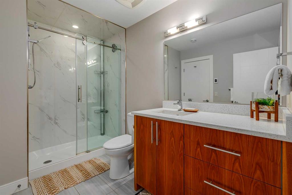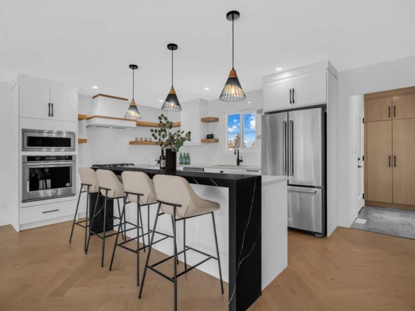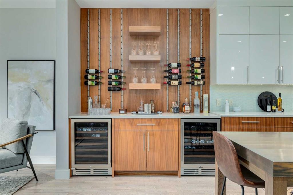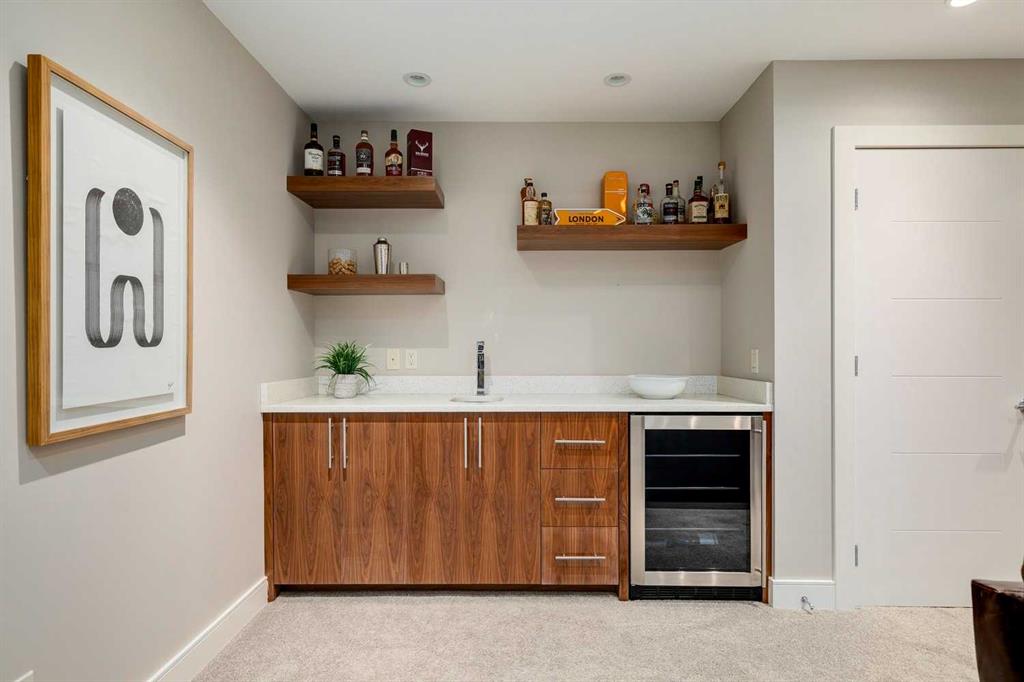 This stunning three-story detached home offers nearly 3,500 sq ft of beautifully finished living space in the heart of Richmond. Every detail reflects thoughtful design, quality craftsmanship + numerous luxury upgrades throughout. Soaring 9-foot ceilings on all levels + large windows fill the home with natural light + hardwood floors throughout. The main floor is ideal for both entertaining + everyday life. The spacious dining room is at the front of the house with lovely street views; Chefs kitchen is efficiently designed, galley style with huge island, upgraded KitchenAid appliances, Caesarstone + quartz counters, walnut cabinetry, under-cabinet lighting, floating shelves, a built-in wine wall + a movable custom island table. Comfy family room with ribbon gas fireplace overlooks backyard. Patio doors lead into the sunny, south-facing backyard—fully finished in maintenance-free concrete with gas hookups for a BBQ + fire table, outdoor speakers + a double detached garage complete with slat wall + ceiling storage. A floating oak staircase leads to the second level, which includes two generous bedrooms, a mezzanine office, a five-piece bathroom with heated floors + a full laundry room. The top-floor primary, is a private retreat, offering a massive walk-in closet with custom shoe racks + storage, a spa-inspired five-piece ensuite with a standalone tub, floor-to-ceiling tiled shower with LED lighting + heated floors. From here, access your large private rooftop patio. The fully finished basement offers a cozy living area with wet bar, an additional bedroom, three-piece bathroom, second laundry set + storage. Additional features include: Smart home system with built-in speakers + full sound/security wiring, four wine coolers, two furnaces, each with humidifiers, dual A/C units for climate control, oversized 80-gallon hot water tank, mudroom with heated floors + custom built-ins, Gemstone exterior lighting + low-maintenance turf front yard. Located on a quiet street just a short walk to Marda Loop, 17th Avenue, Richmond School (K–6) + nearby shops + restaurants.