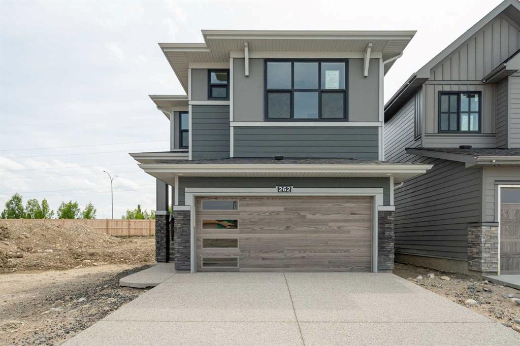 Welcome to 262 West Grove Lane, where elegance meets everyday functionality in a home designed to impress from the very first step inside. Say hello to “The Nanton”, one of Cedarglen Homes’ newest models—an inspired blend of architectural drama and thoughtful comfort. The heart of the home is the soaring open-to-below living room, where natural light cascades down two stories of the fully tiled sleek electric fireplace, creating a breathtaking focal point that radiates warmth and sophistication. The main floor features a flex space tucked behind barn doors offering the perfect space to focus or create. The gourmet kitchen is a seamless extension of the open-concept layout, anchored by a spacious walk-in pantry. You'll receive an appliance allowance of $8,954 to be used at the builder’s preferred supplier, giving you the freedom to tailor your kitchen with style and substance. The dining nook is bright and beautiful–flowing effortlessly onto a finished deck complete with a BBQ gas line. The outdoor space is ideal for hosting summer evenings with family and friends. Upstairs, retreat to a fully enclosed bonus room—your private media lounge, home office, or sanctuary away from the hustle. Three generous bedrooms await, including a primary suite designed to indulge: a luxurious 5-piece ensuite with soaker tub, glass-encased custom shower, dual vanities, and a walk-in closet built to handle all seasons of style. An upstairs laundry room ensures life’s routines are handled with ease and convenience. The curb appeal is just as strong, thanks to the durability and timeless beauty of James Hardie fiber cement siding. A double attached garage adds daily convenience, while the side entrance to the unfinished basement (with 3-piece rough-in) opens the door to endless customization—future suite (subject to approval and permitting by the city/municipality), home gym, or games room—the choice is yours. Plus, the builder is offering up to $5,000 towards landscaping—yours to use within the first year of possession to make the yard your own personal retreat. Set in the sought-after Encore II community of West Grove, this home pairs modern design with a location that keeps you close to the city’s best schools, parks, and west-end amenities. Move-in ready, your new chapter begins here. This brand new property isn’t just a home—it’s a launchpad for the lifestyle you’ve been waiting for. Book your showing today. *Some photos are virtually staged*